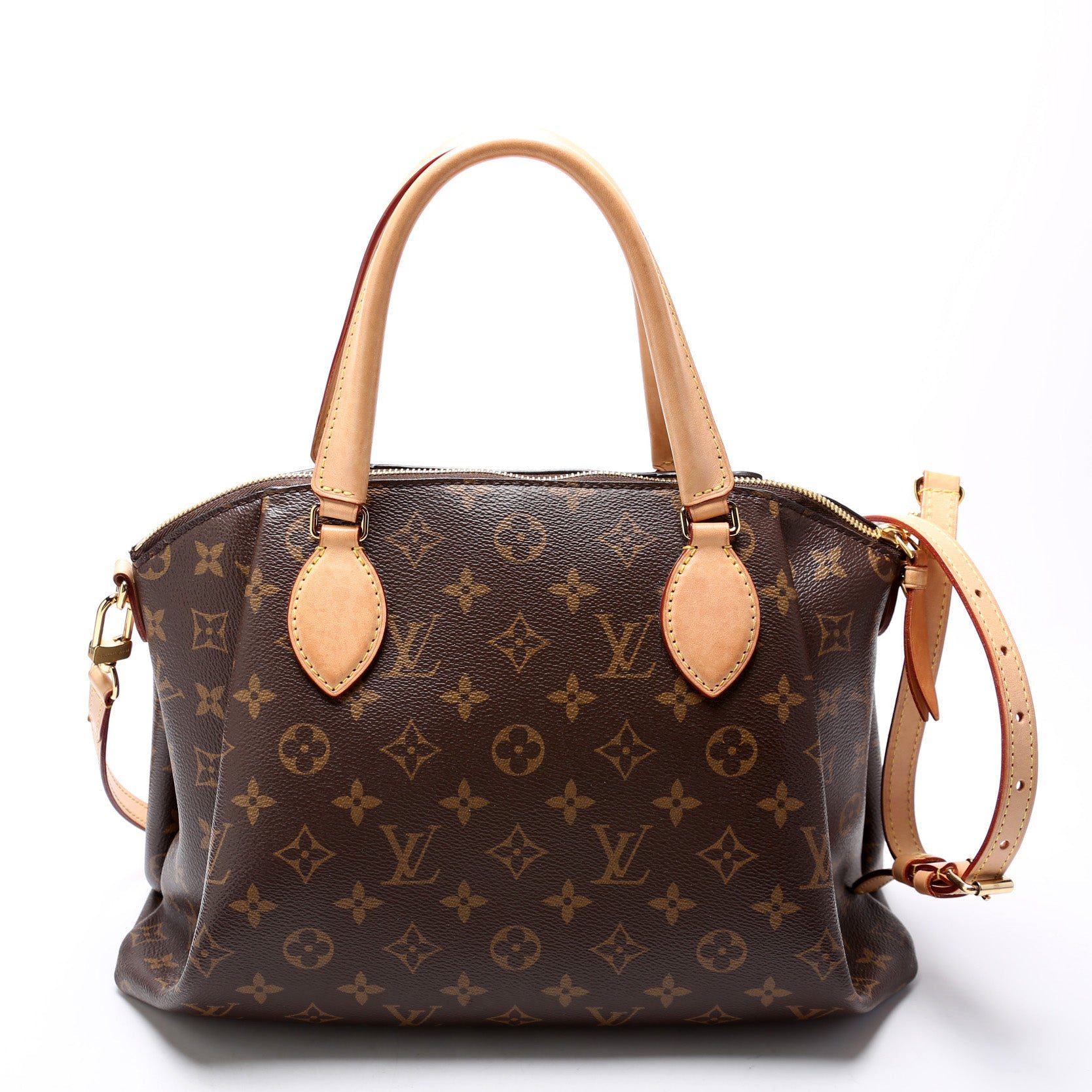 Louis Vuitton Turenne MM. The exterior is in the classic Louis Vuitton Monogram coated canvas.