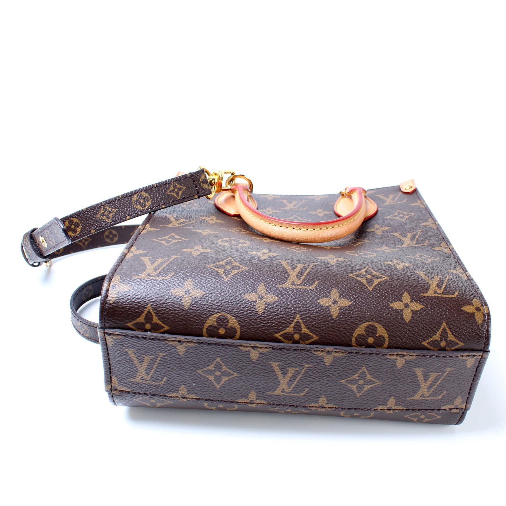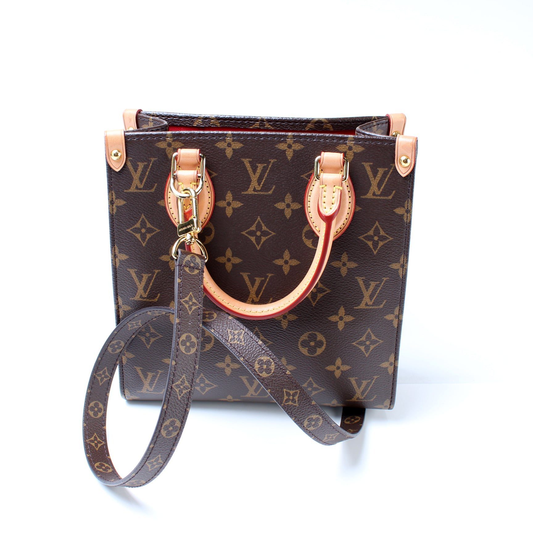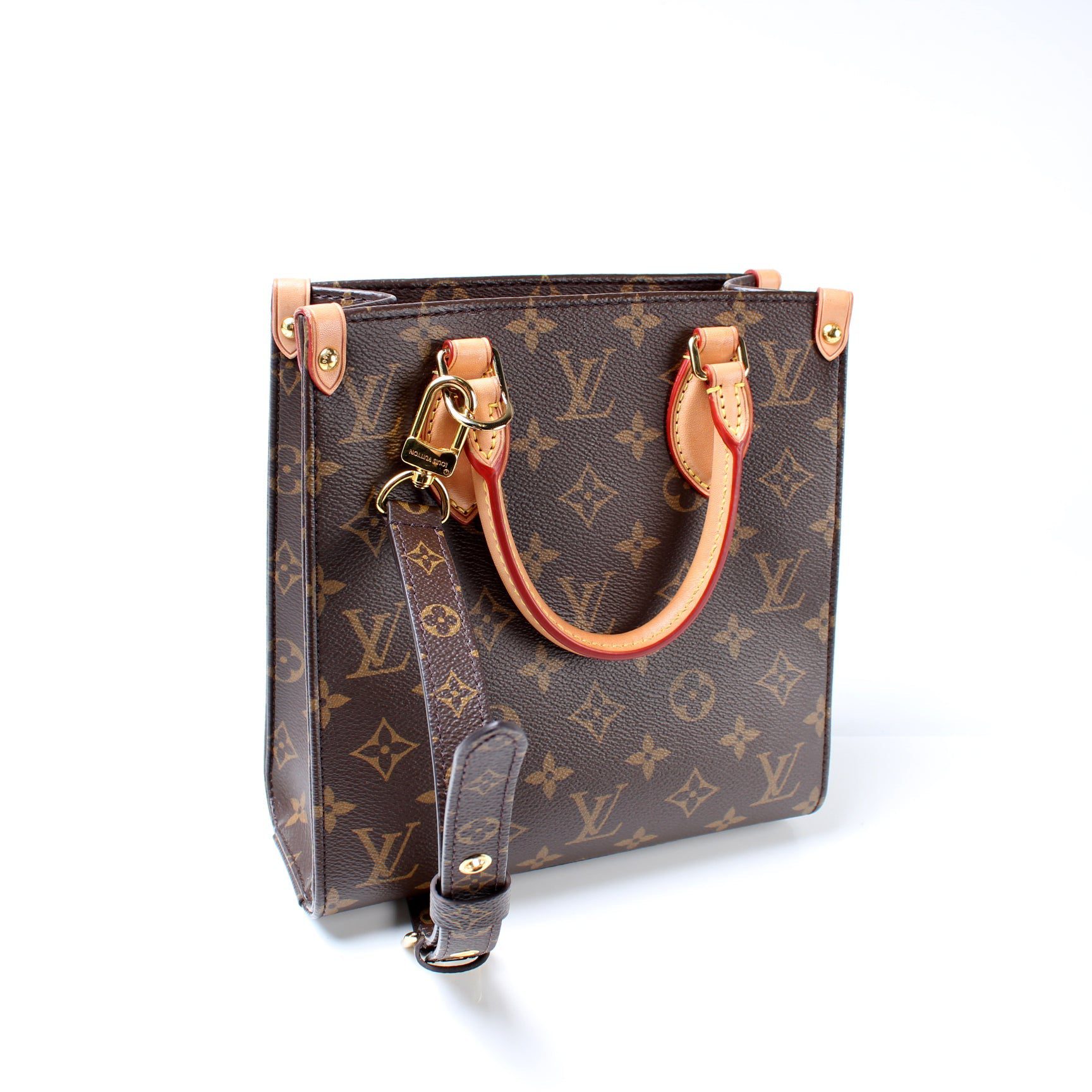 Louis Vuitton Sac Plat BB. The exterior is in the classic Louis Vuitton Monogram coated canvas.Â