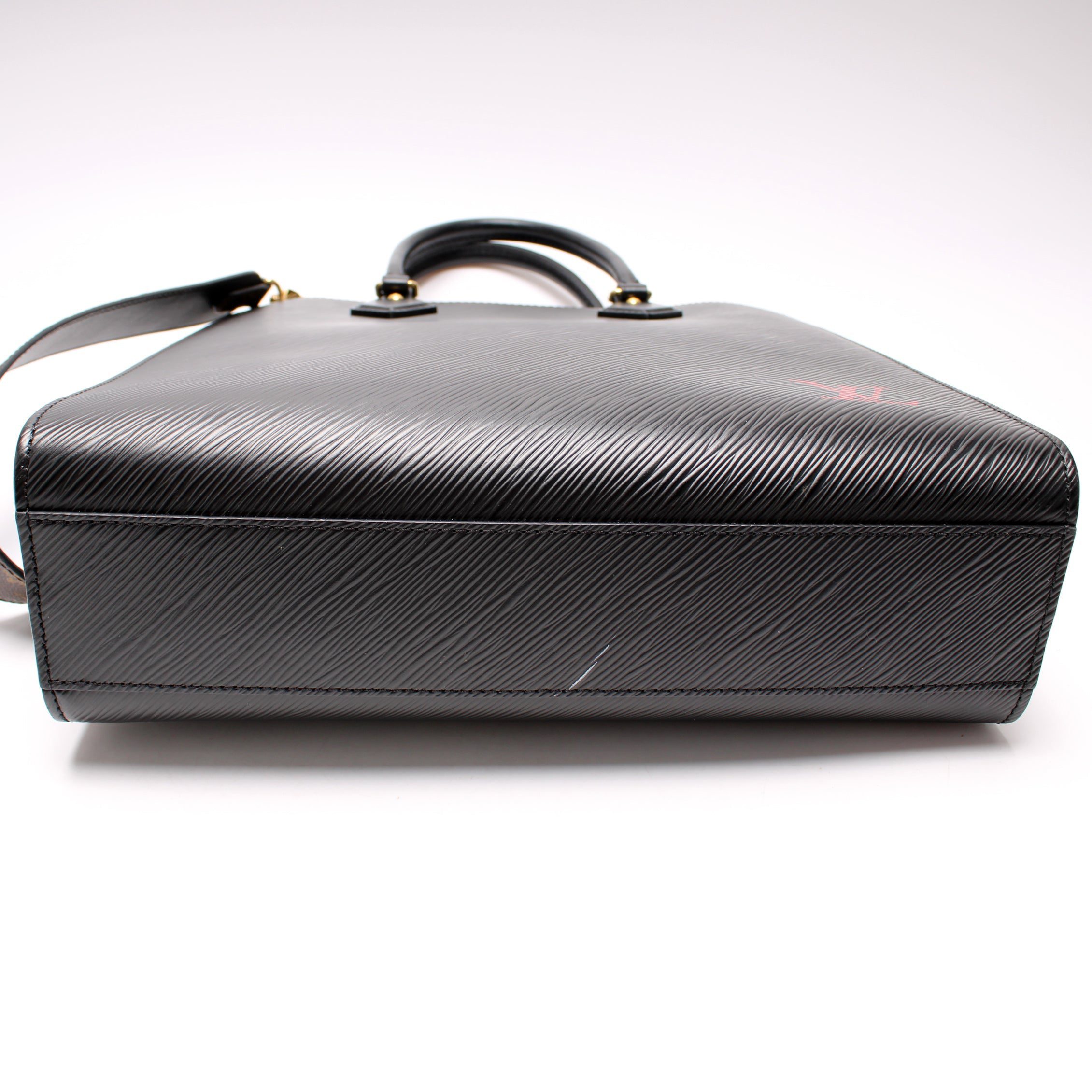 Louis Vuitton Sac Plat NM PM. The exterior is in the classic Louis Vuitton Epi leather.Â