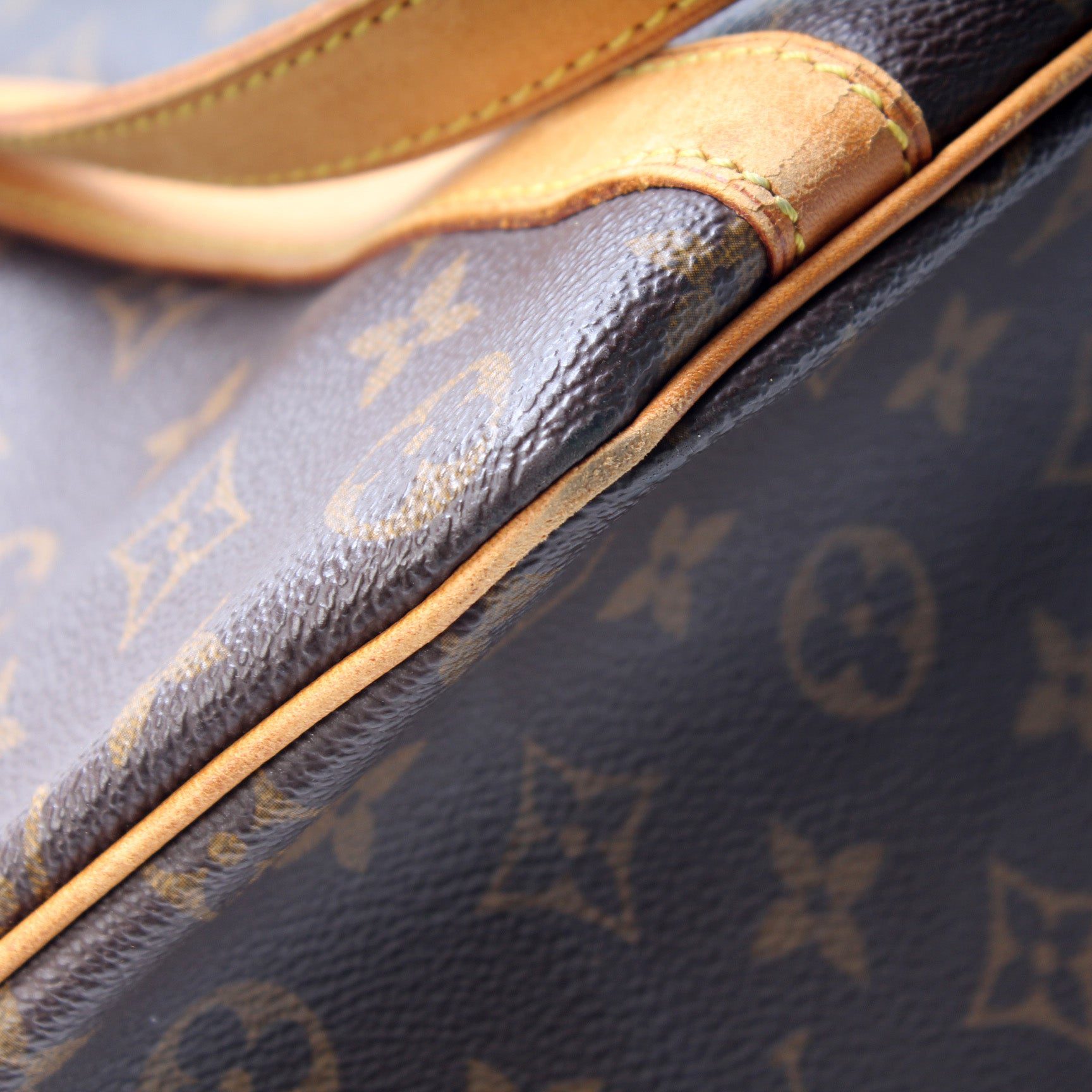 Exterior: The exterior Monogram coated canvas is free of any rips or cracks. The corners show minor signs of wear as pictured.Â
