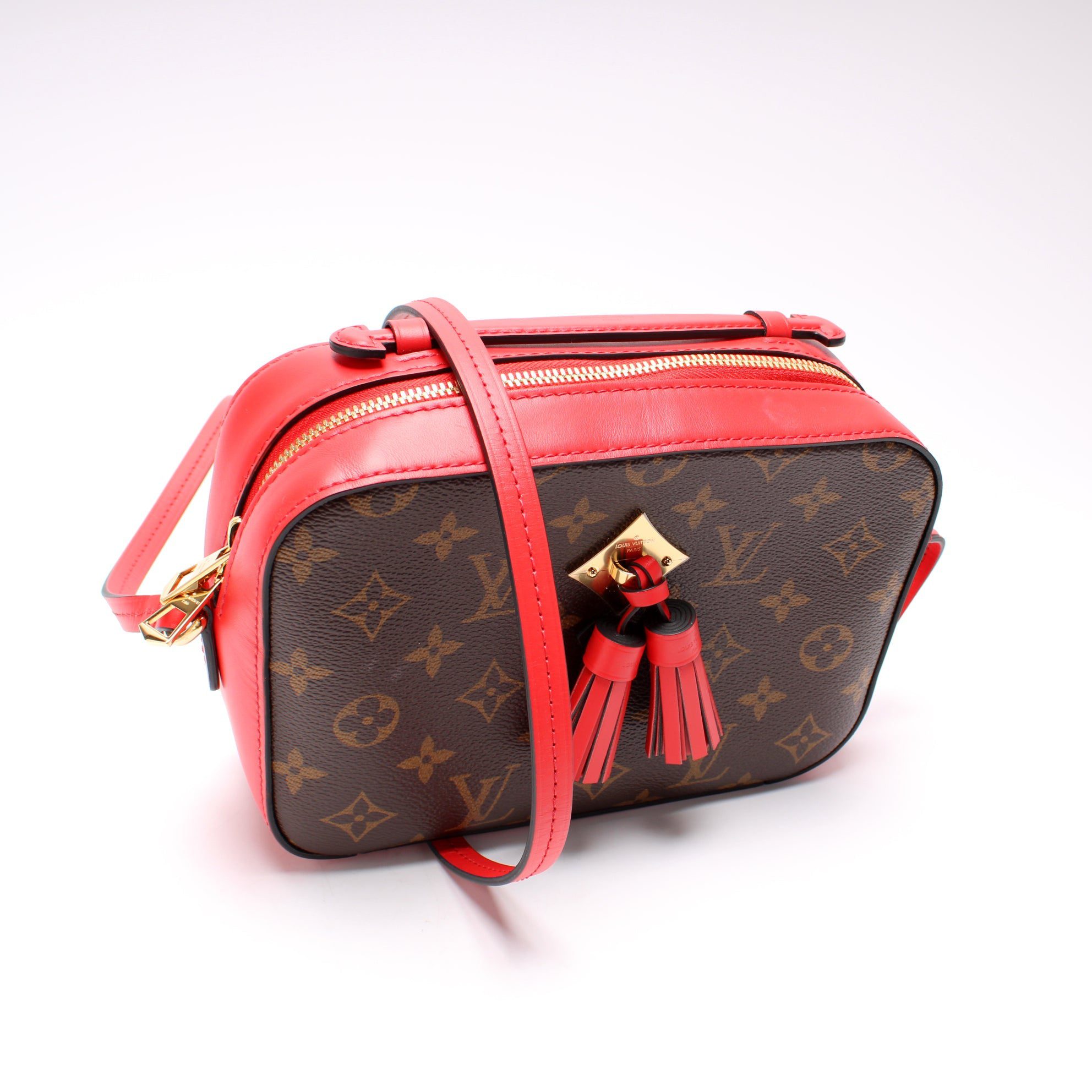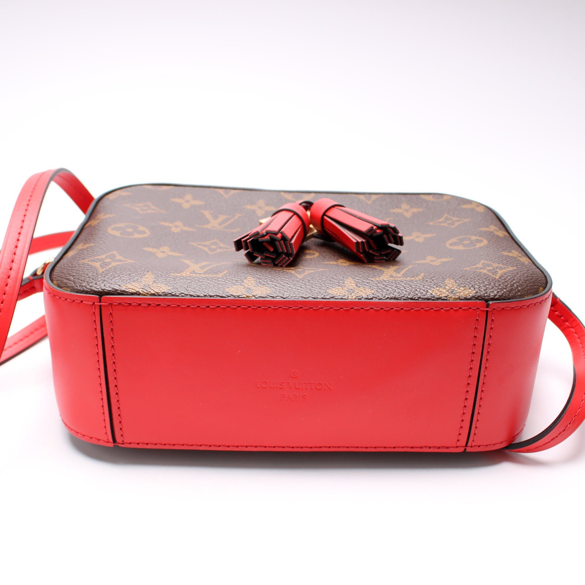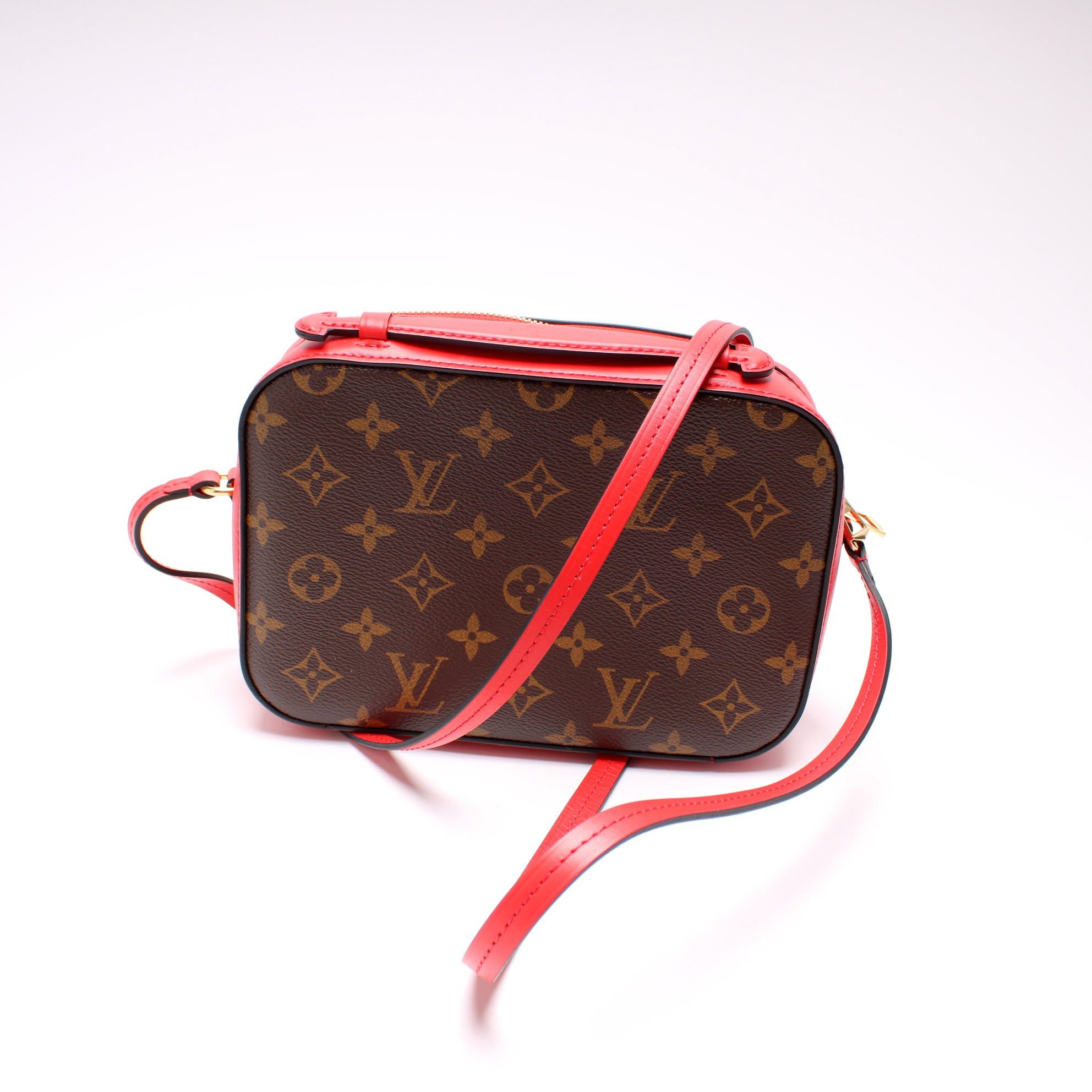 Louis Vuitton Saintonge. The exterior is in the classic Louis Vuitton Monogram coated canvas.Â