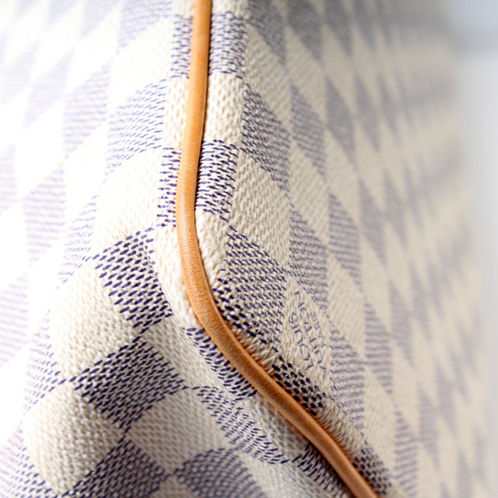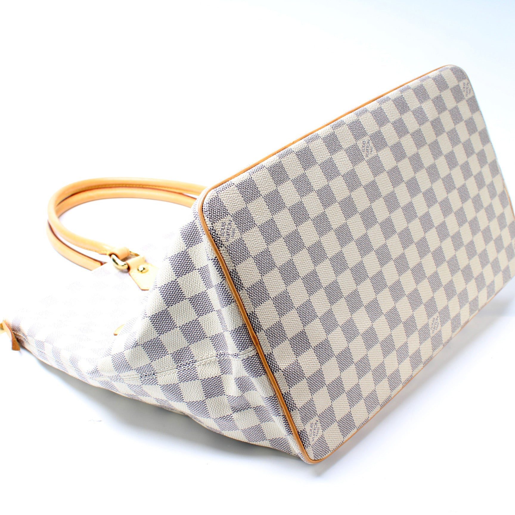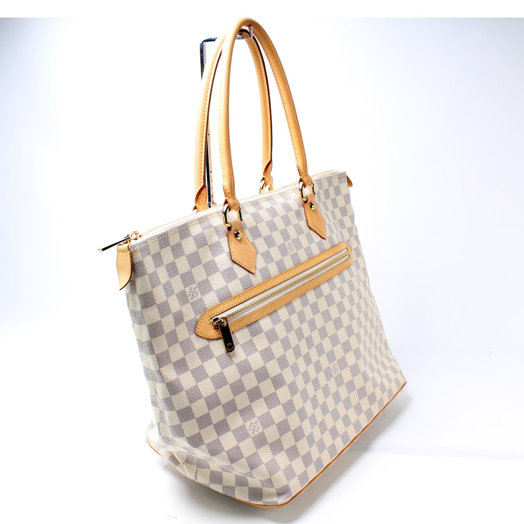 Louis Vuitton Saleya GM. The exterior is in the classic damier azur coated canvas.