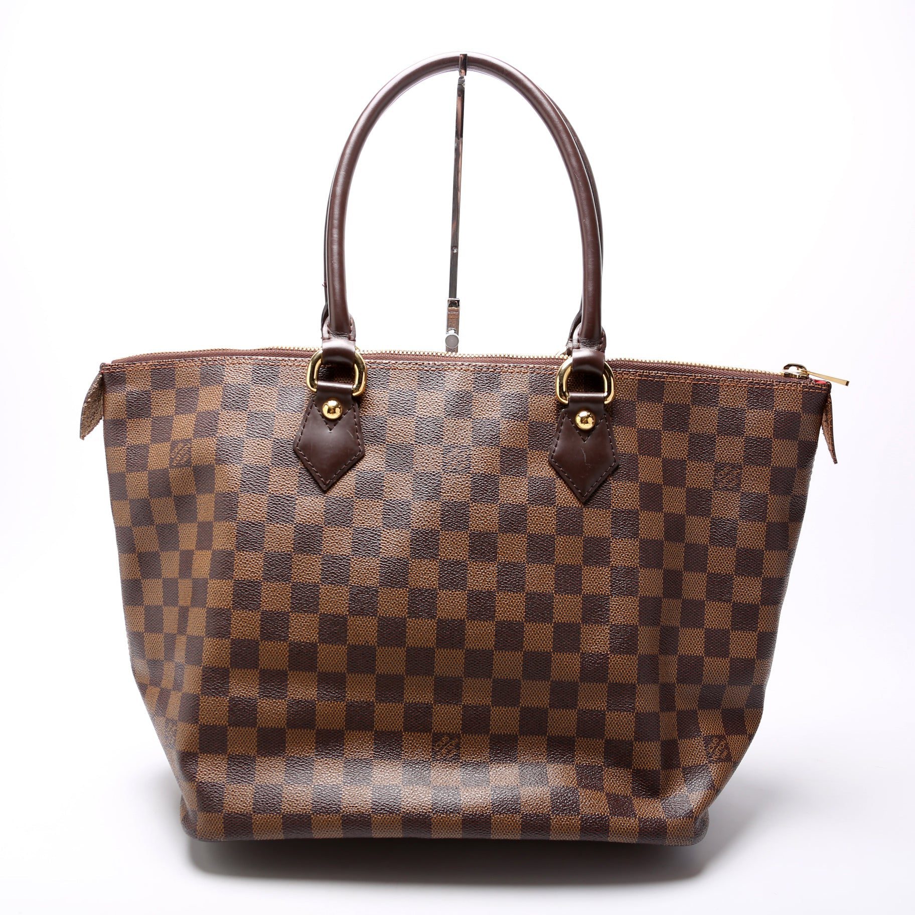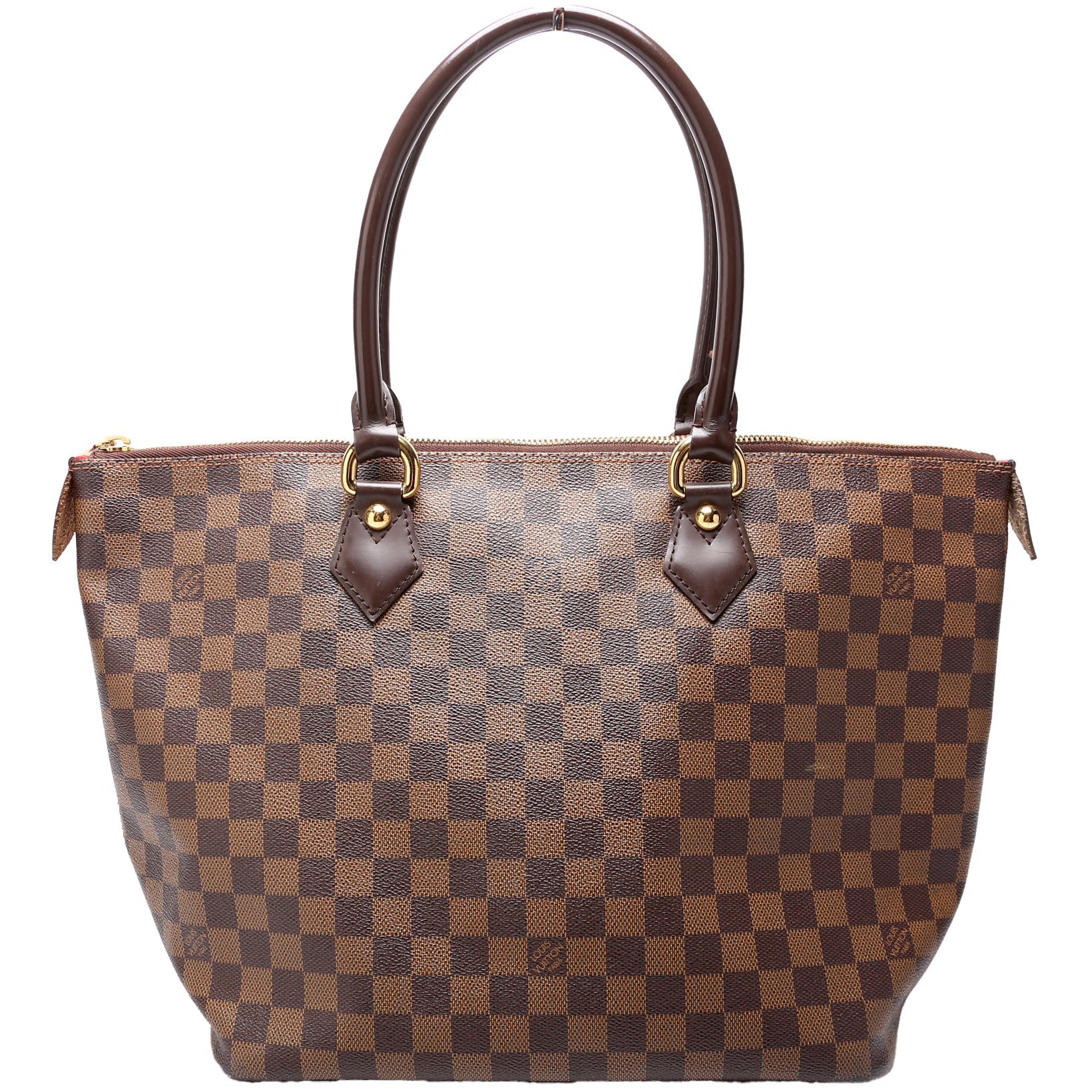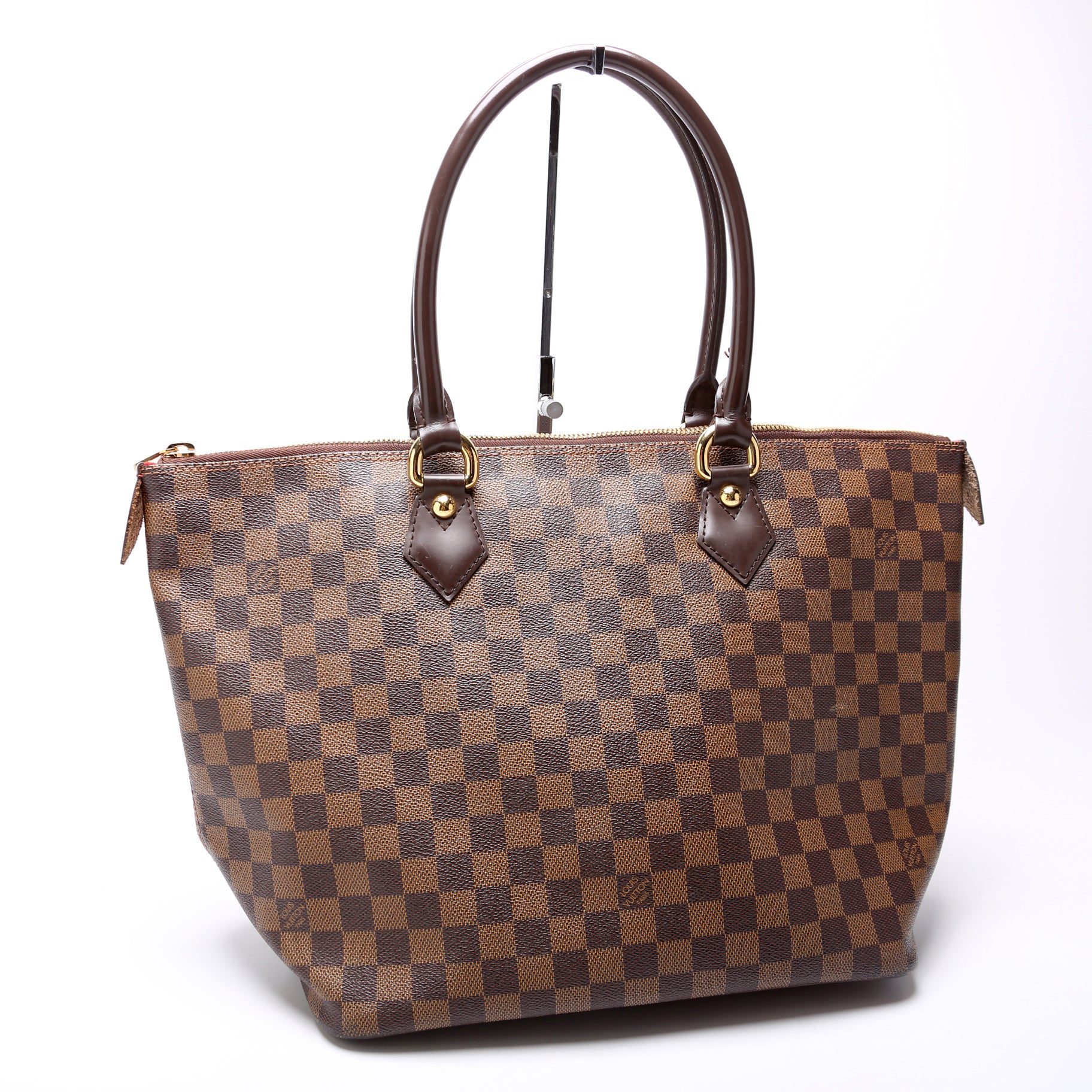Louis Vuitton Saleya MM. The exterior is in the classic Louis Vuitton Damier Ebene coated canvas.