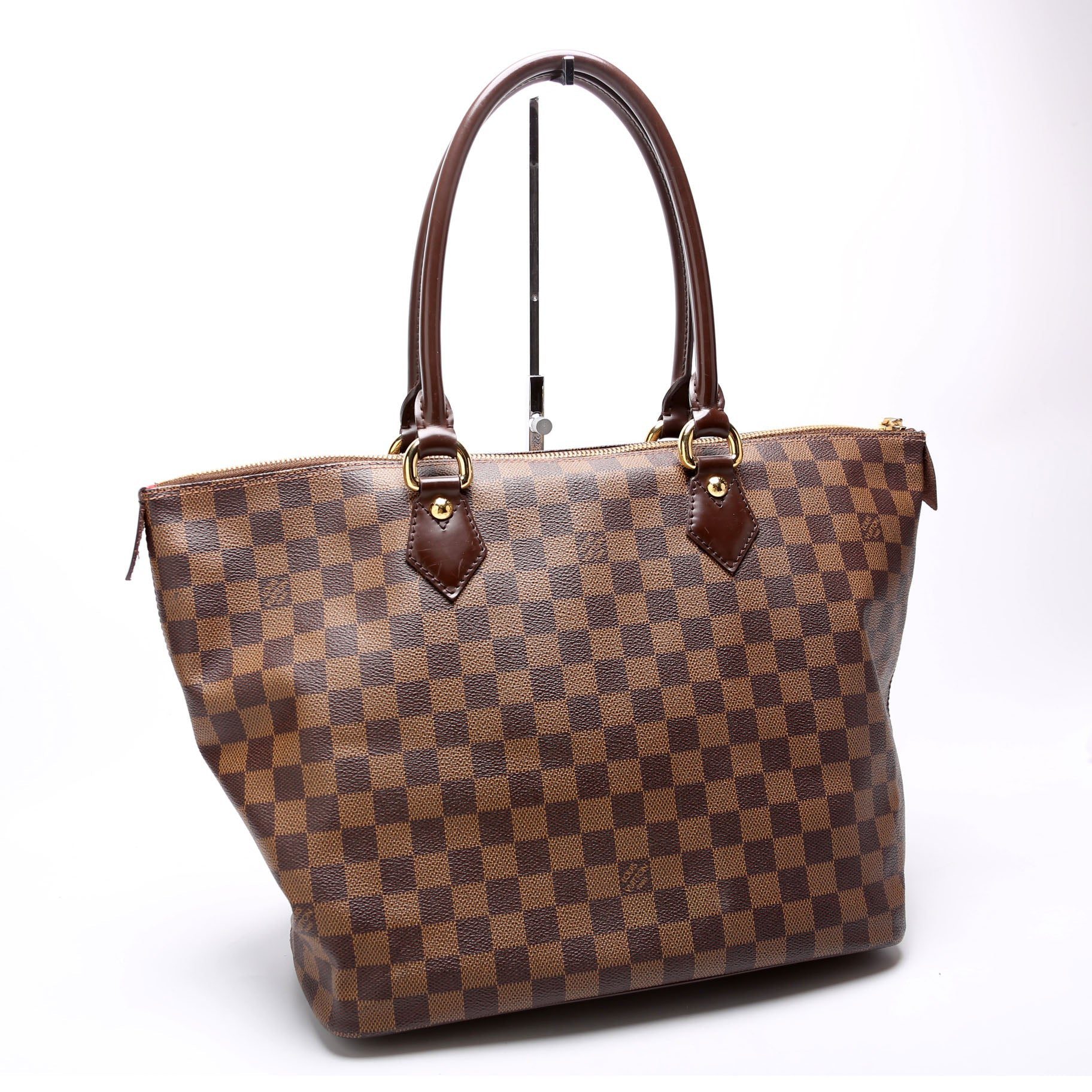 Louis Vuitton Saleya MM . The exterior is in the classic Louis Vuitton Damier Ebene coated canvas.Â