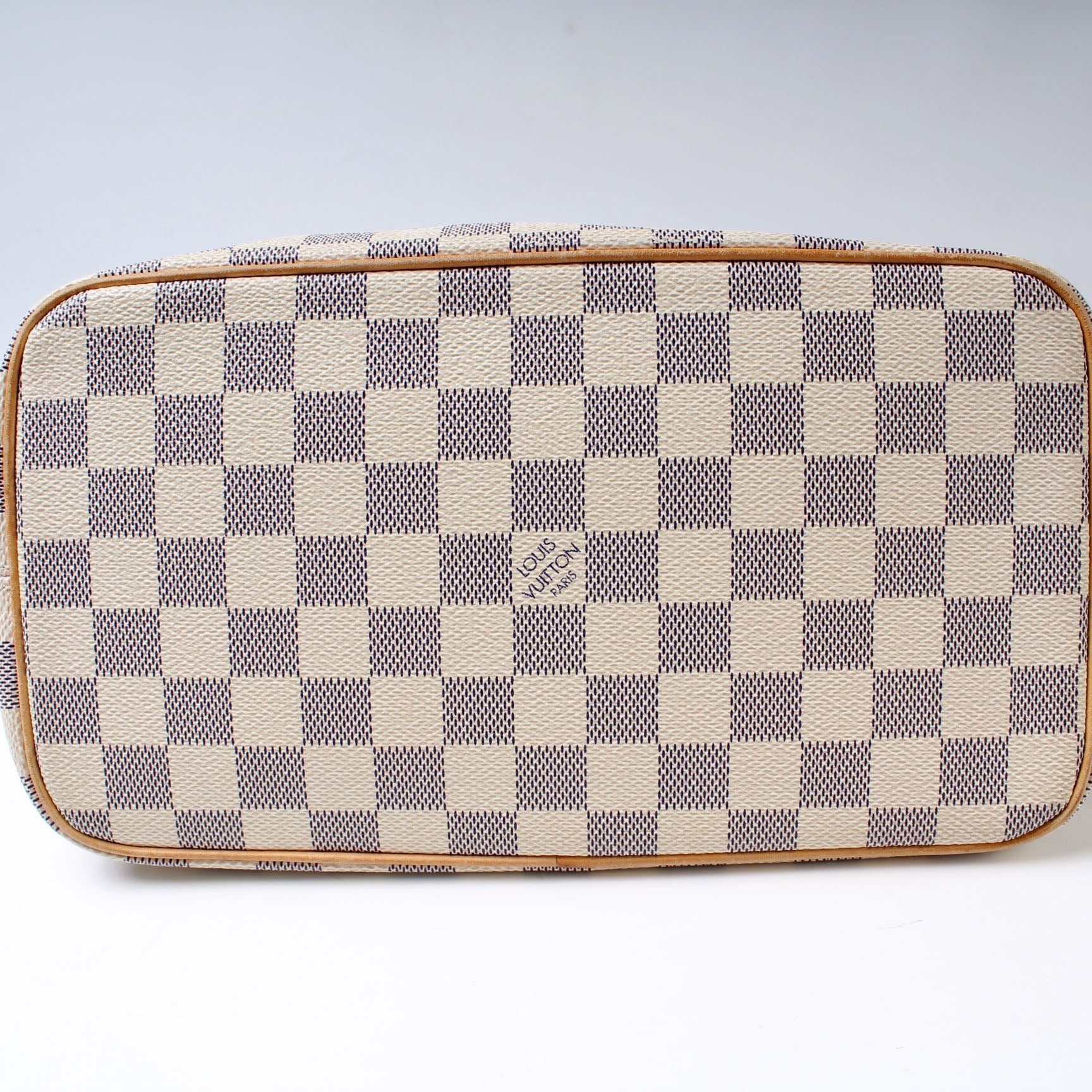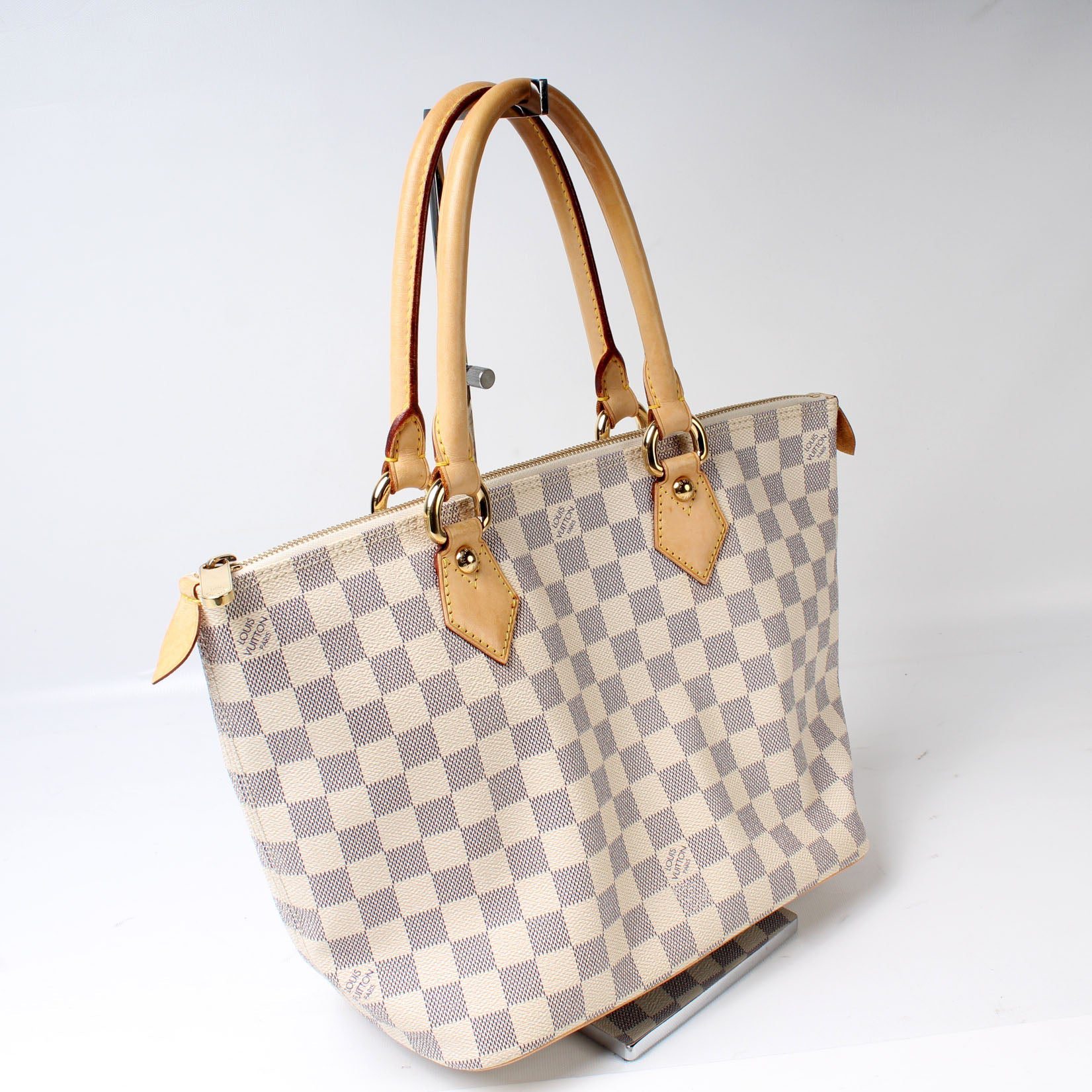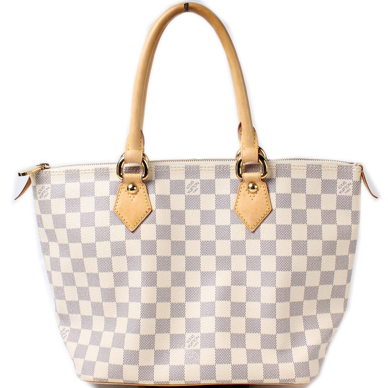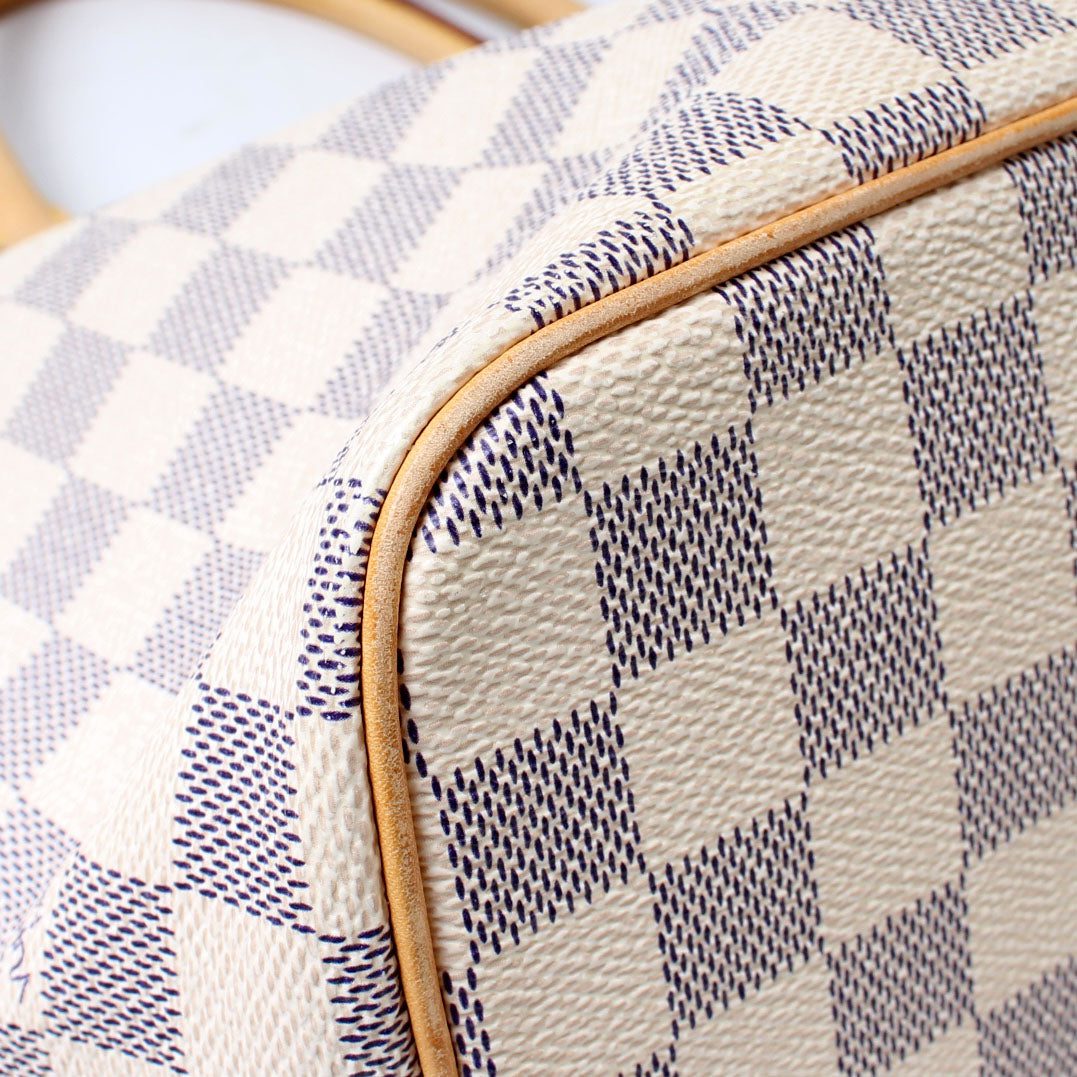 Louis Vuitton Saleya PM. The exterior is in the classic Louis Vuitton Damier Ebene coated canvas.Â