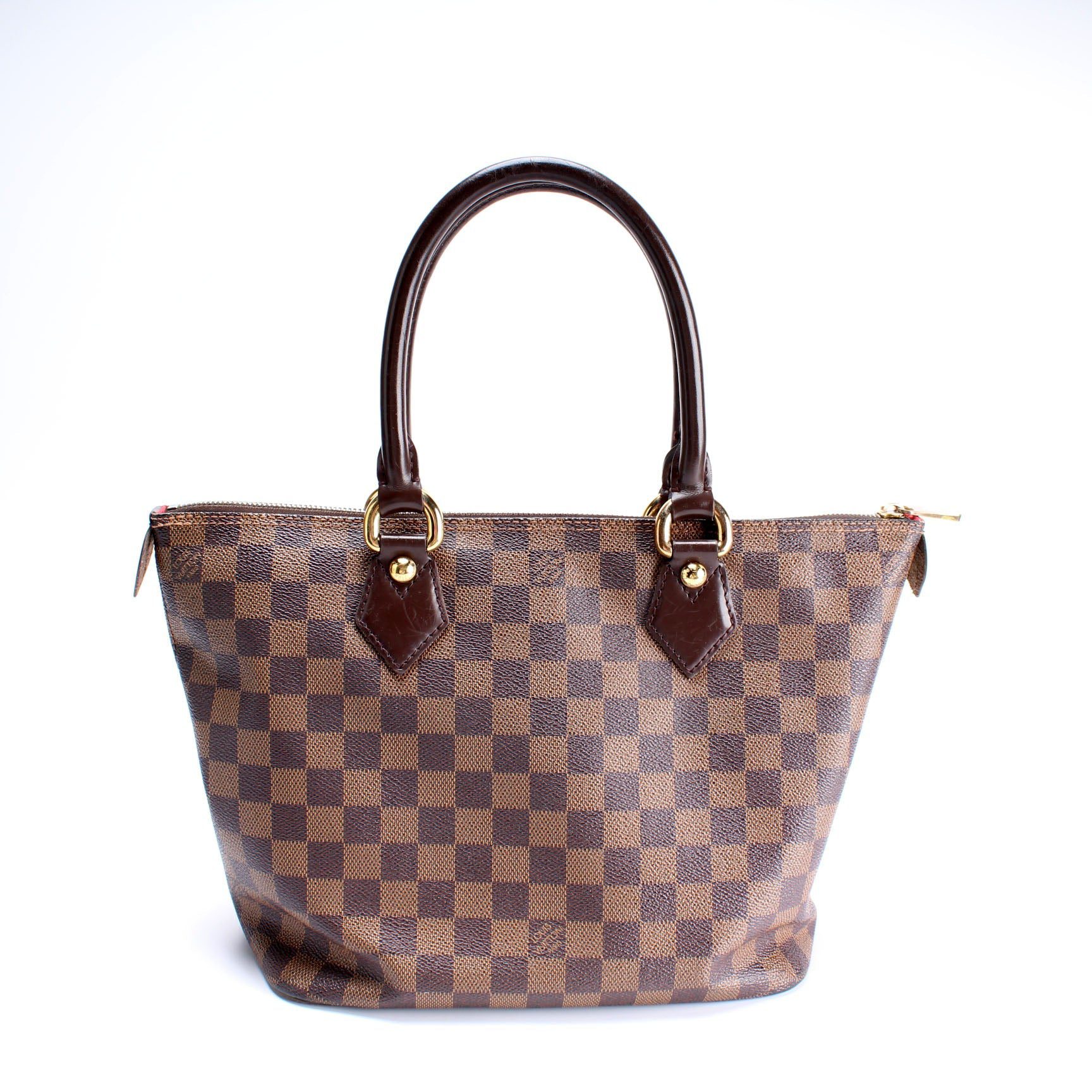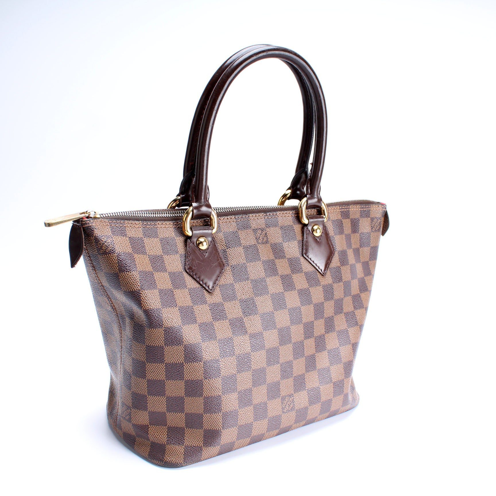 Louis Vuitton Saleya PM. The exterior is in the classic Louis Vuitton Damier Ebene coated canvas.Â