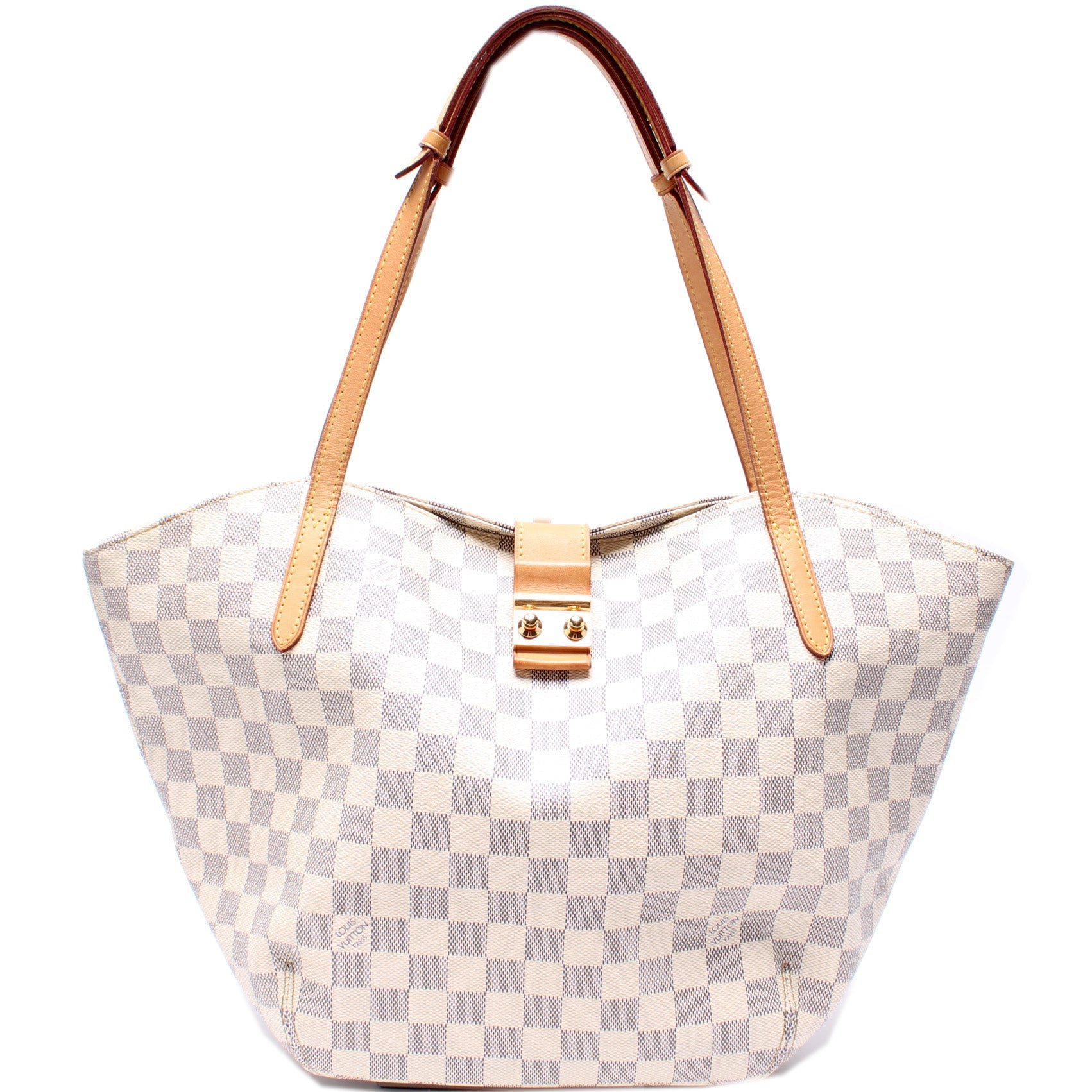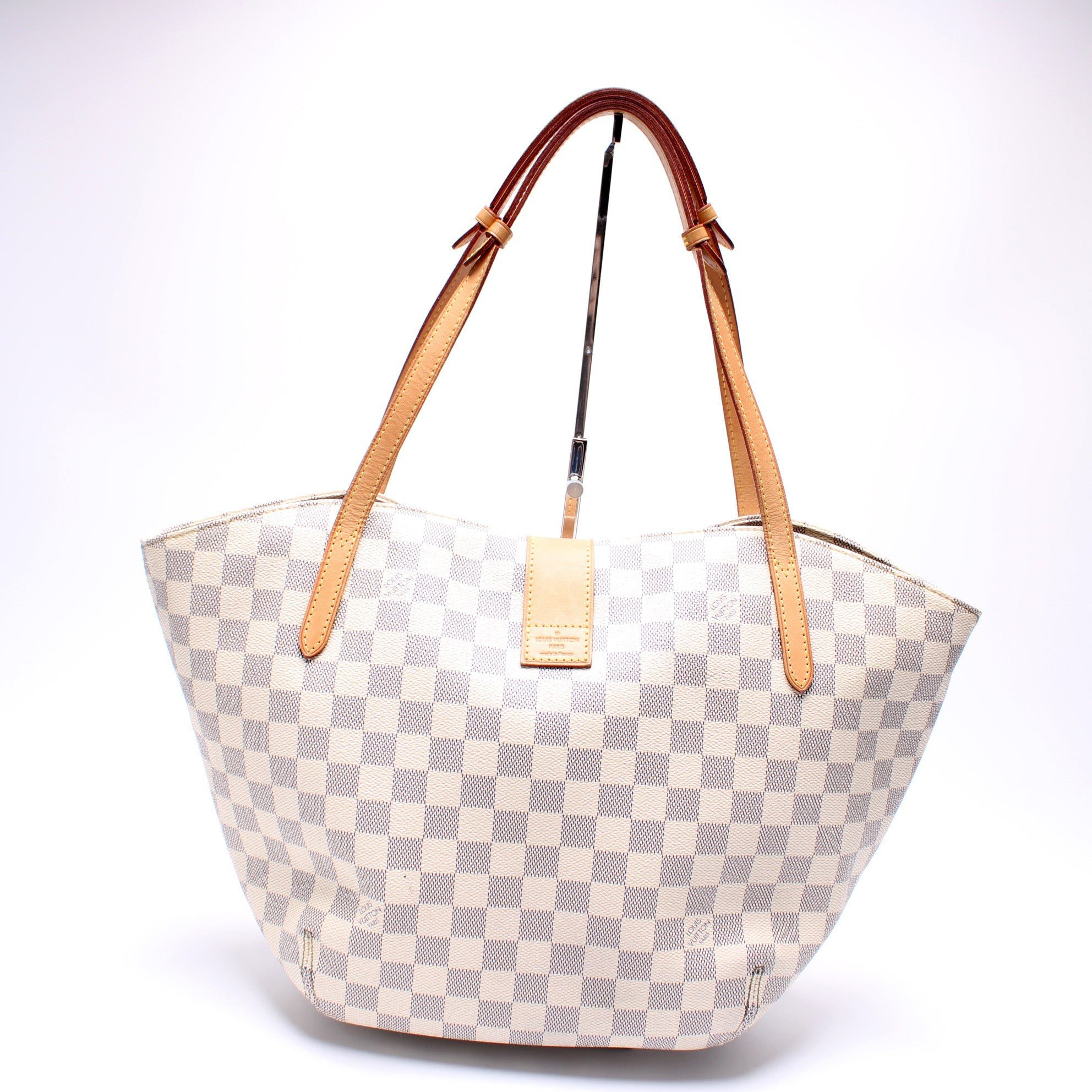 Louis Vuitton Salina PM. The exterior is in the classic Louis Vuitton Damier Azur coated canvas.Â