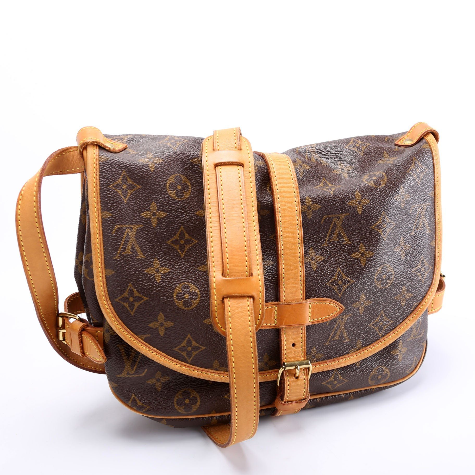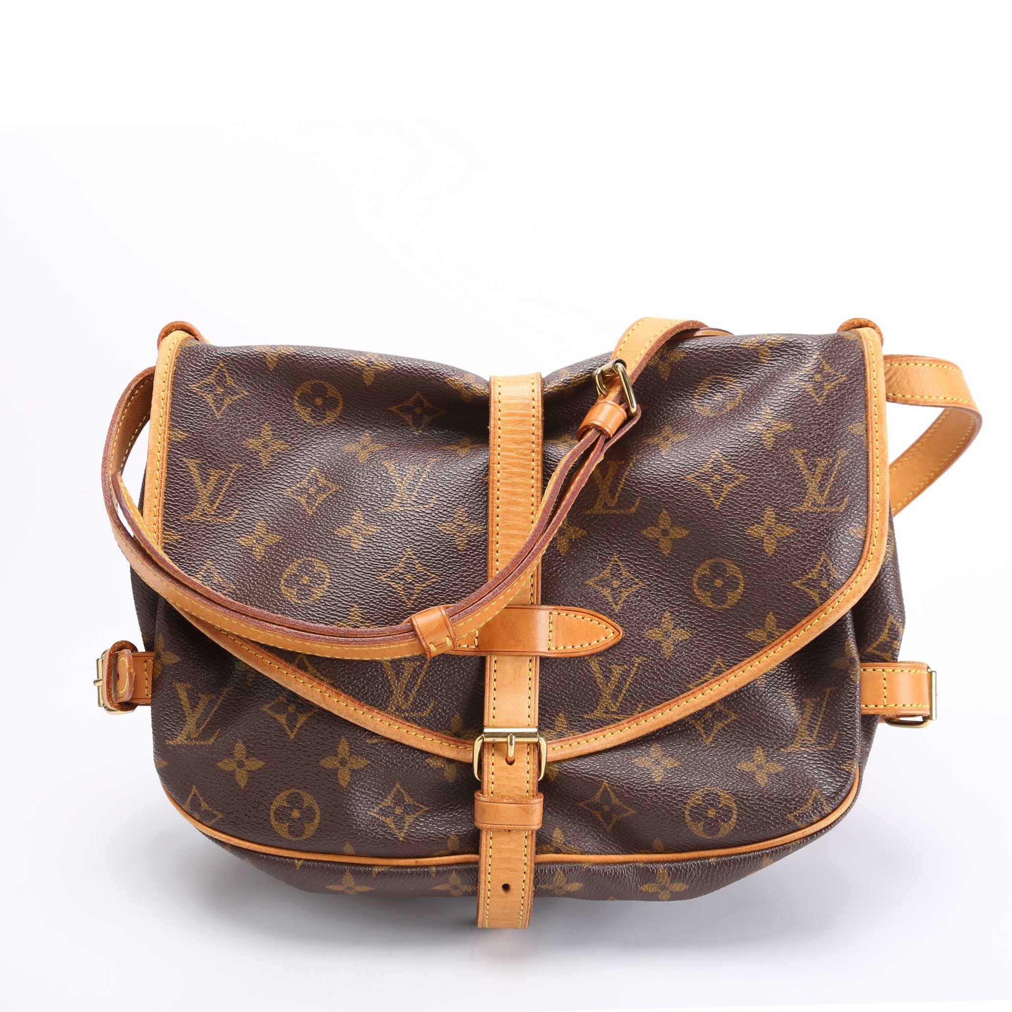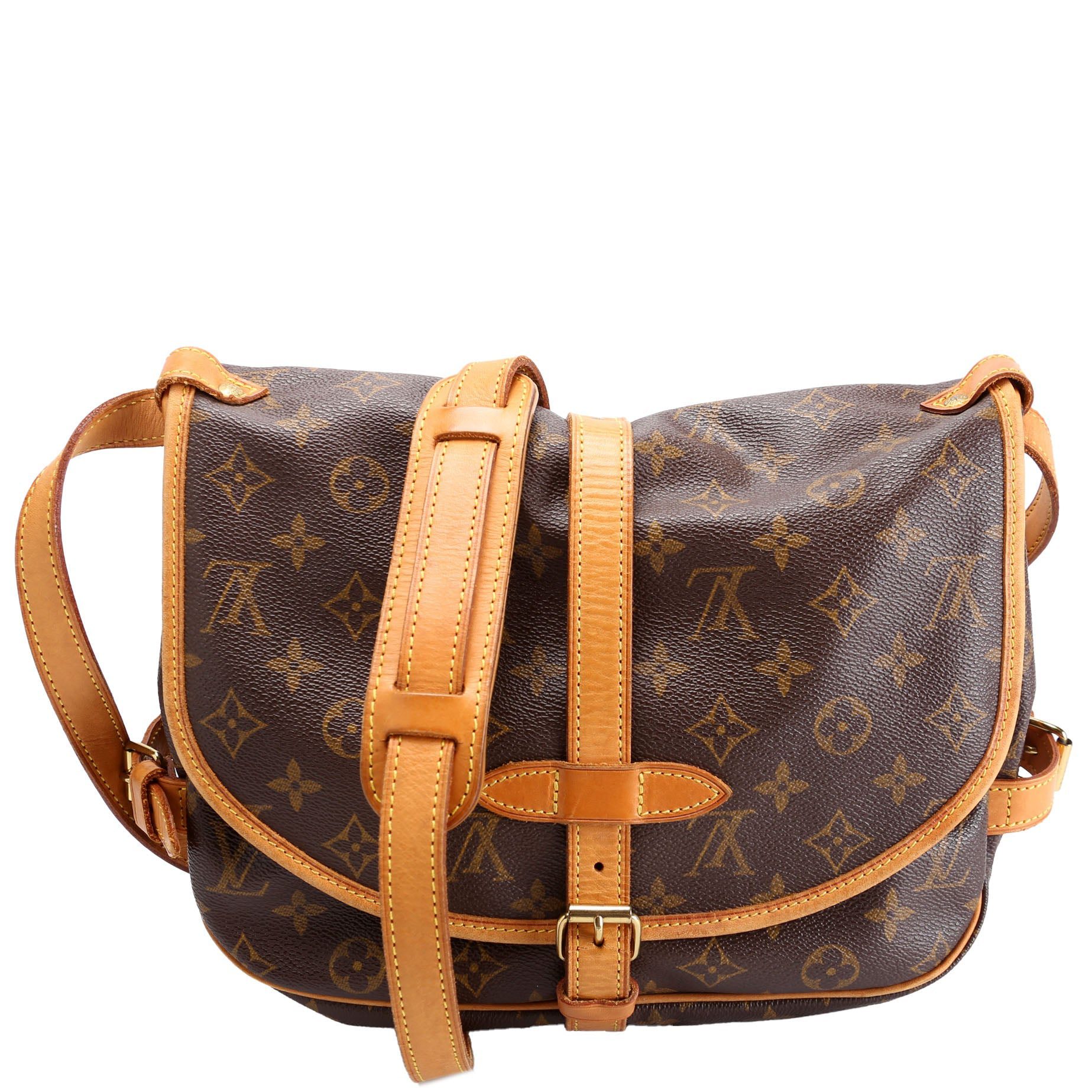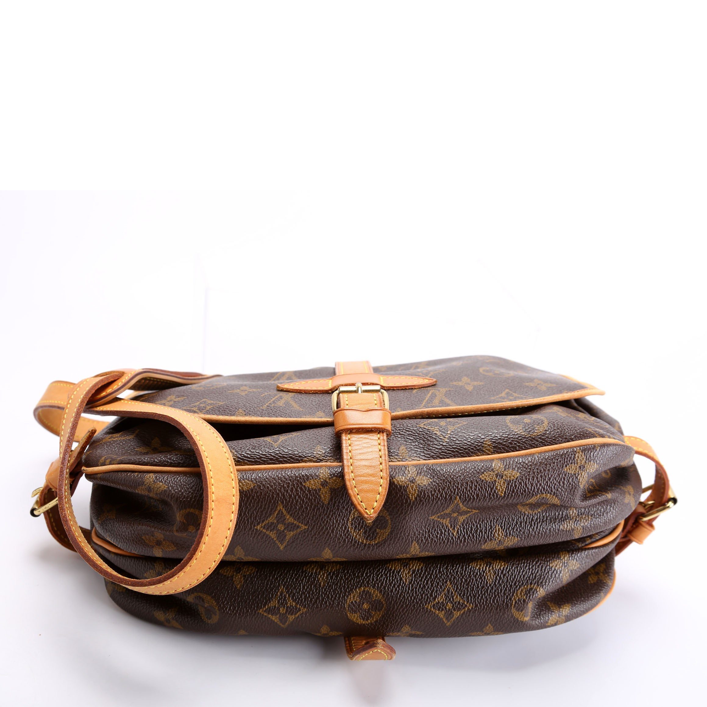 Louis Vuitton Saumur 30 . The exterior is in the classic Louis Vuitton Monogram coated canvas.Â