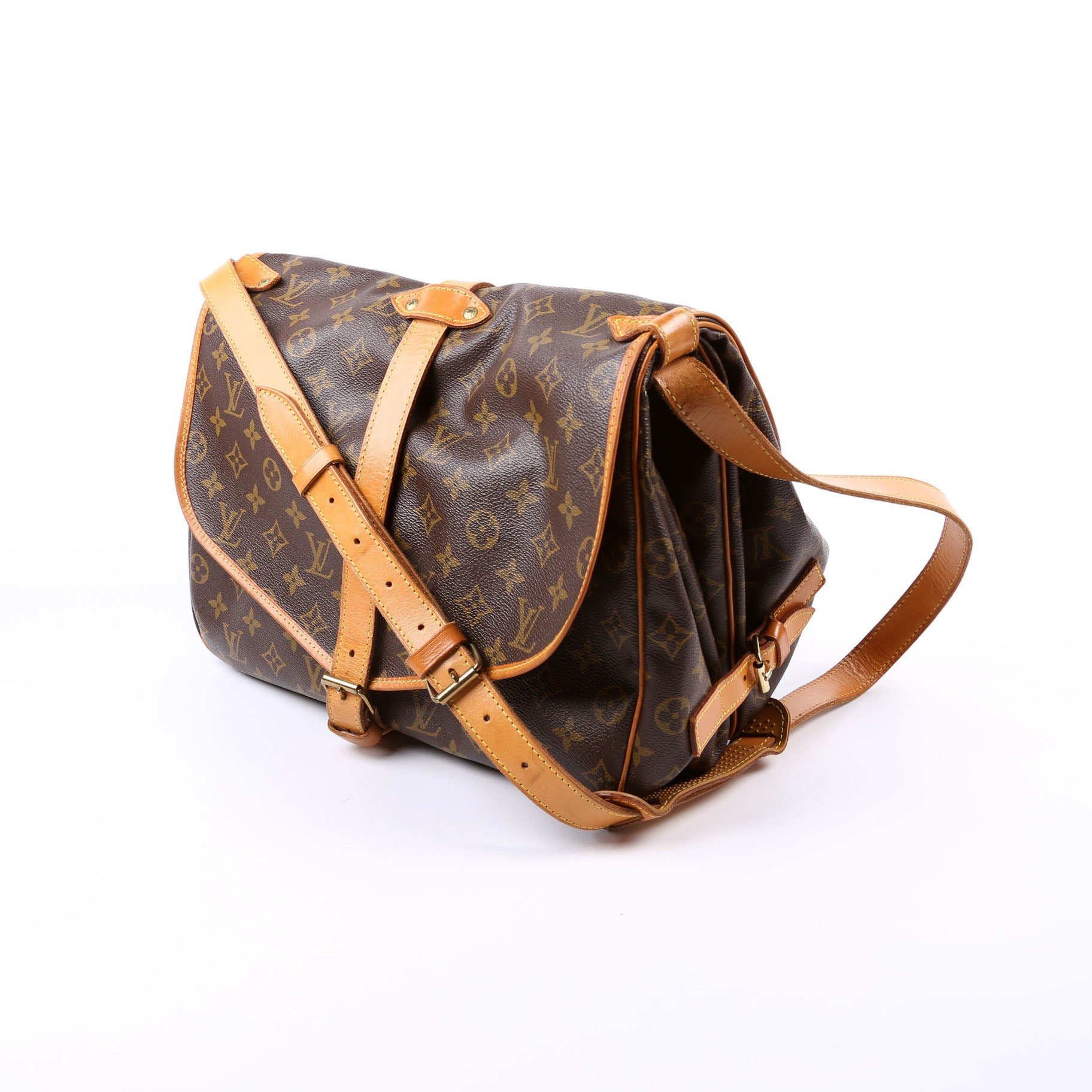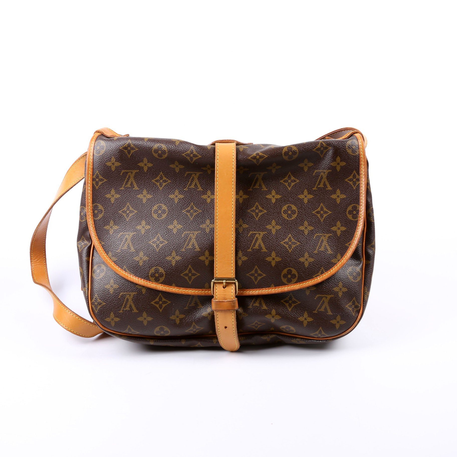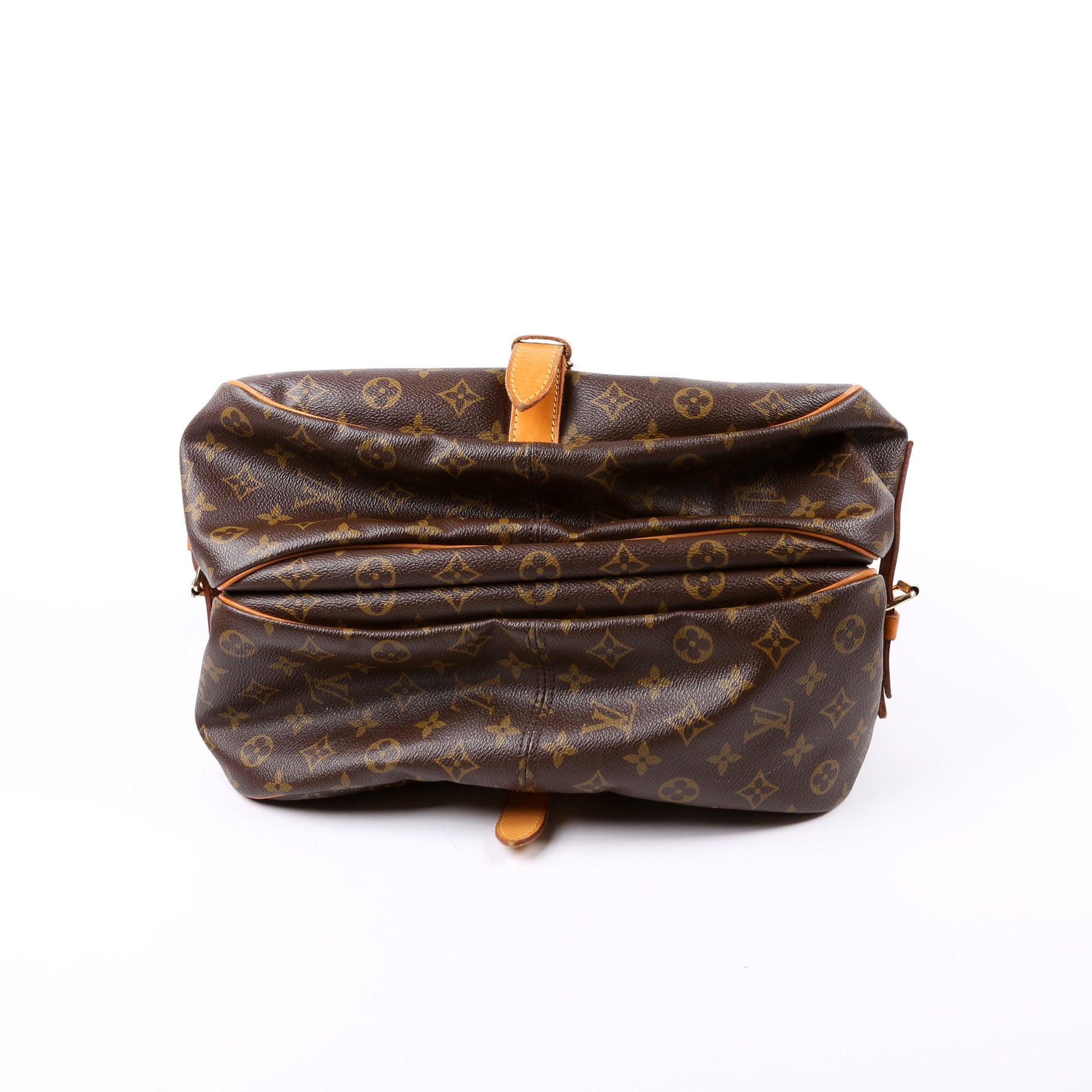 Louis Vuitton Saumur 35 . The exterior is in the classic Louis Vuitton Monogram coated canvas.Â