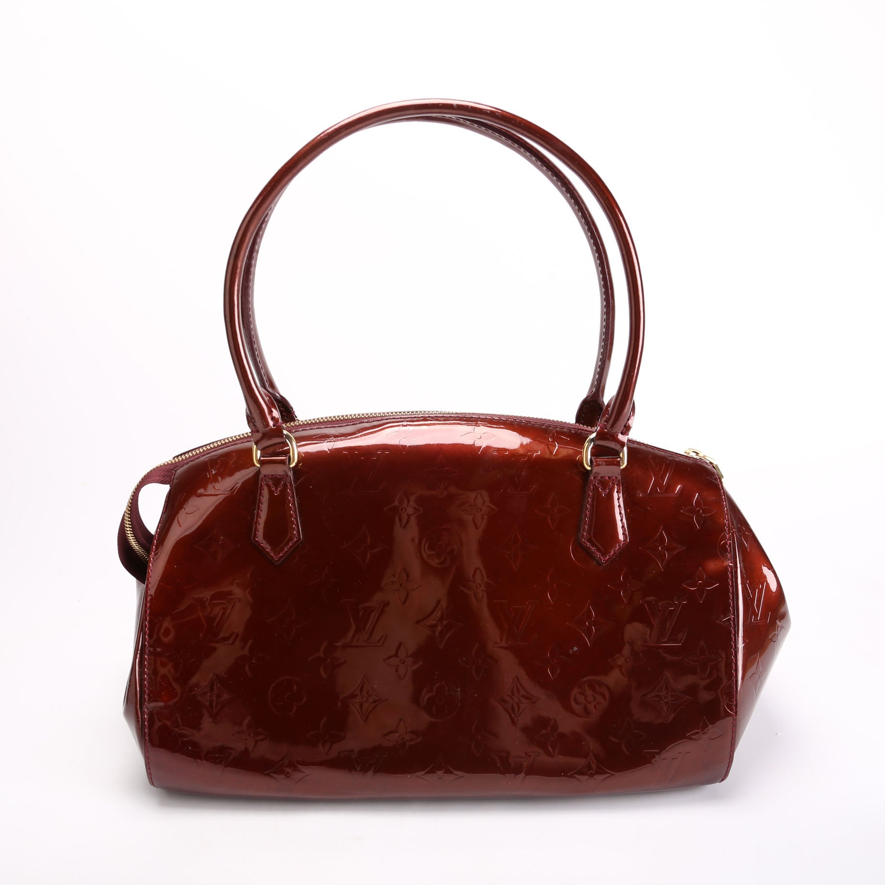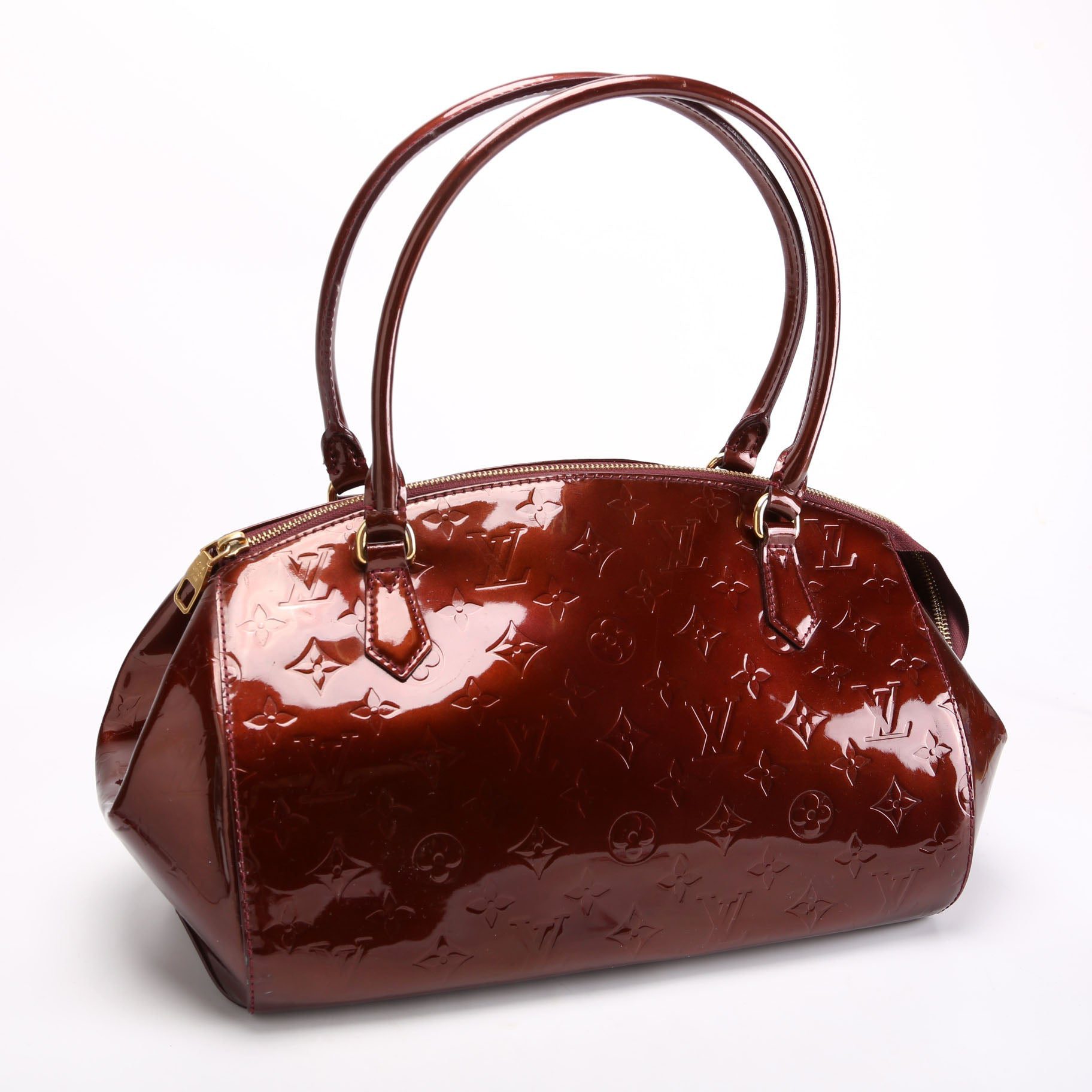 Louis Vuitton Sherwood GM . The exterior is in the classic Amarante Monogram Vernis leather. Â