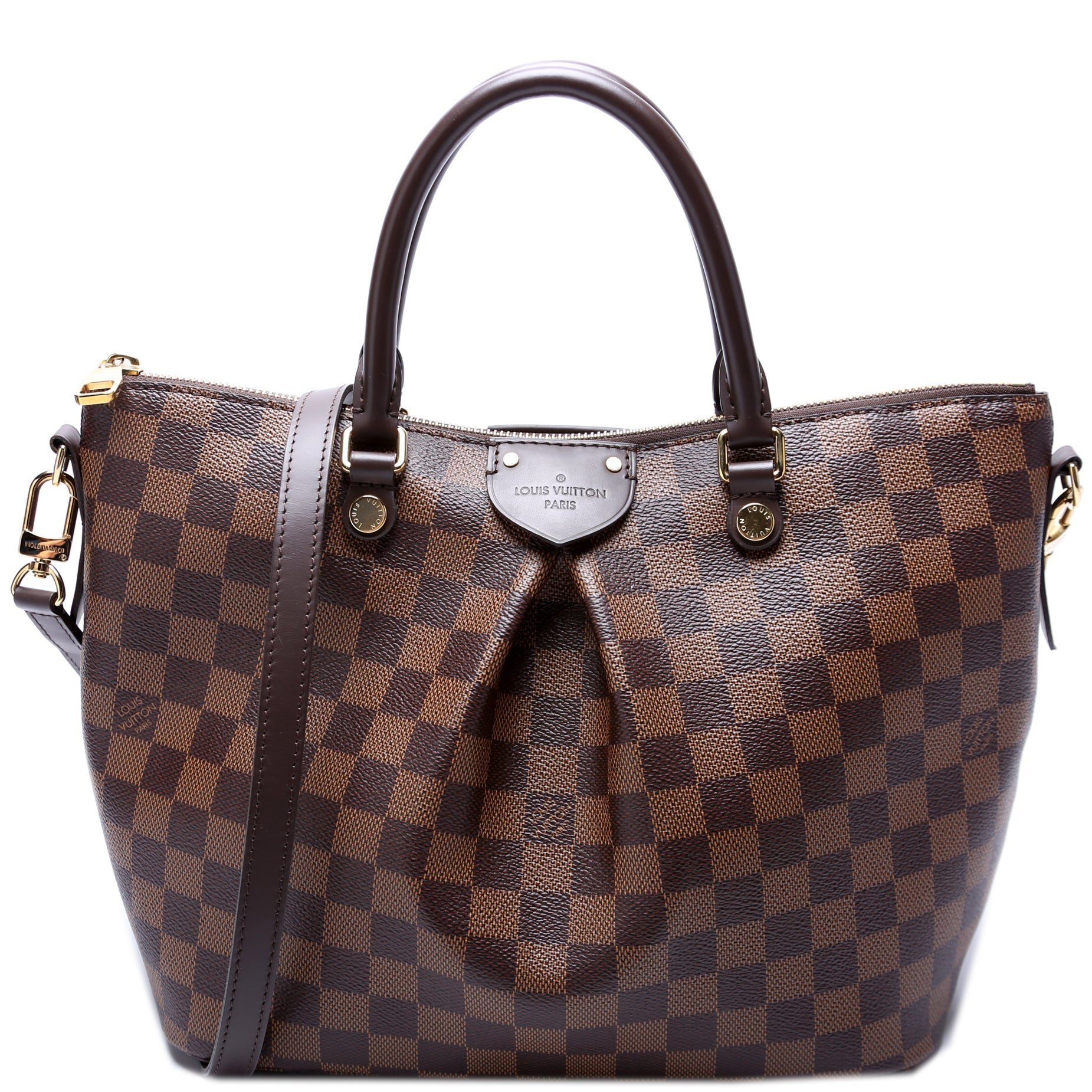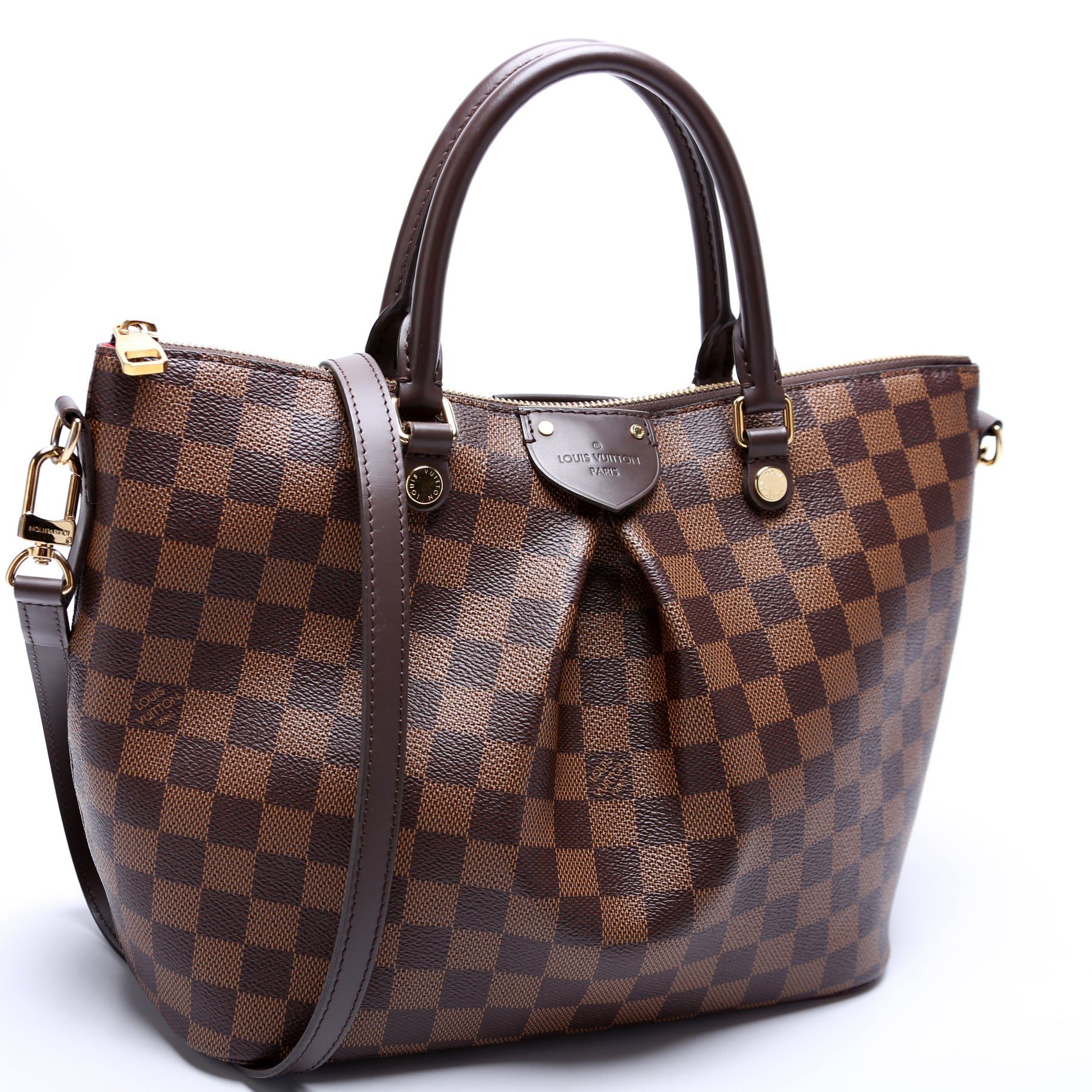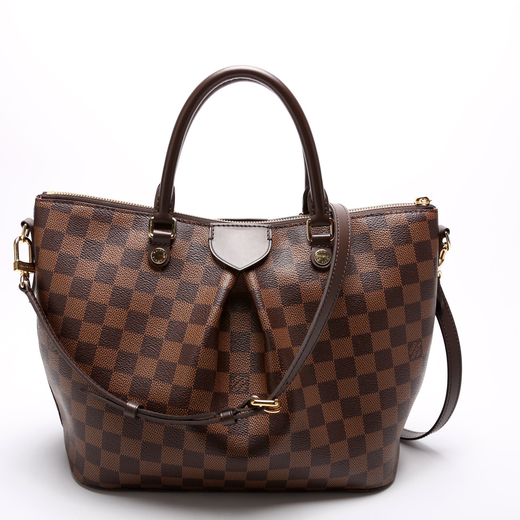 Louis Vuitton Siena MM. The exterior is in the classic Louis Vuitton Damier Ebene coated canvas.