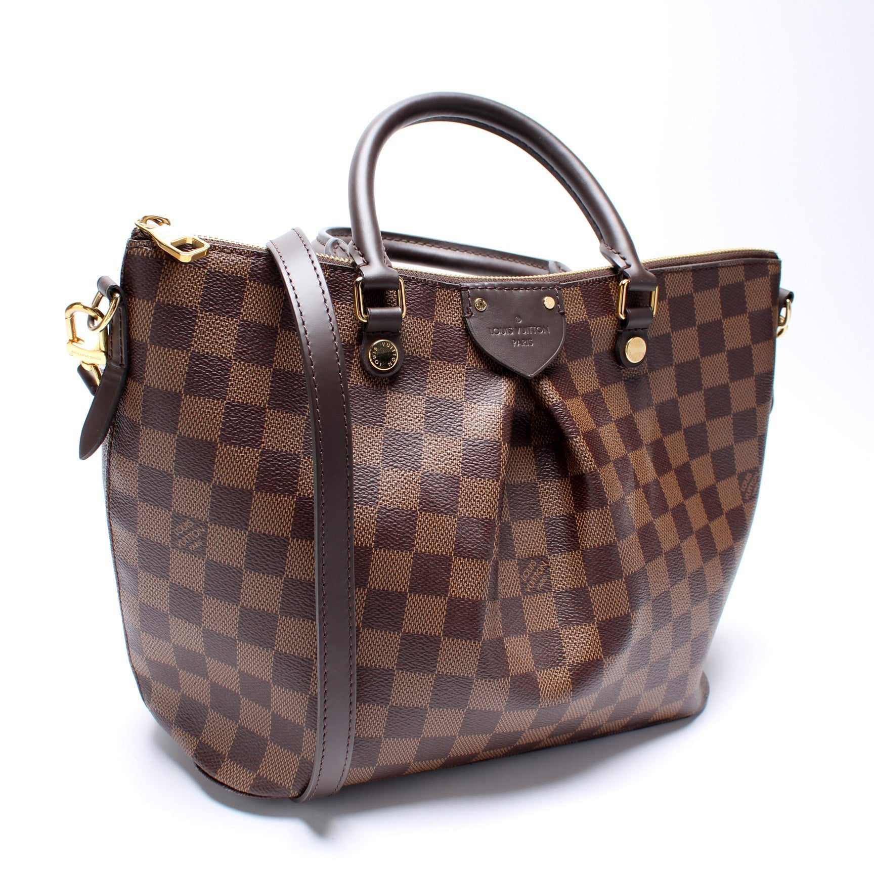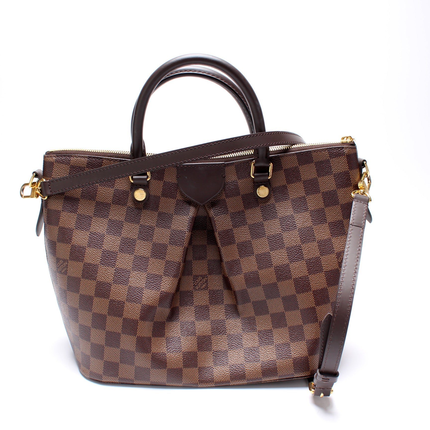 Louis Vuitton Siena MM. The exterior is in the classic Damier Ebene coated canvas.