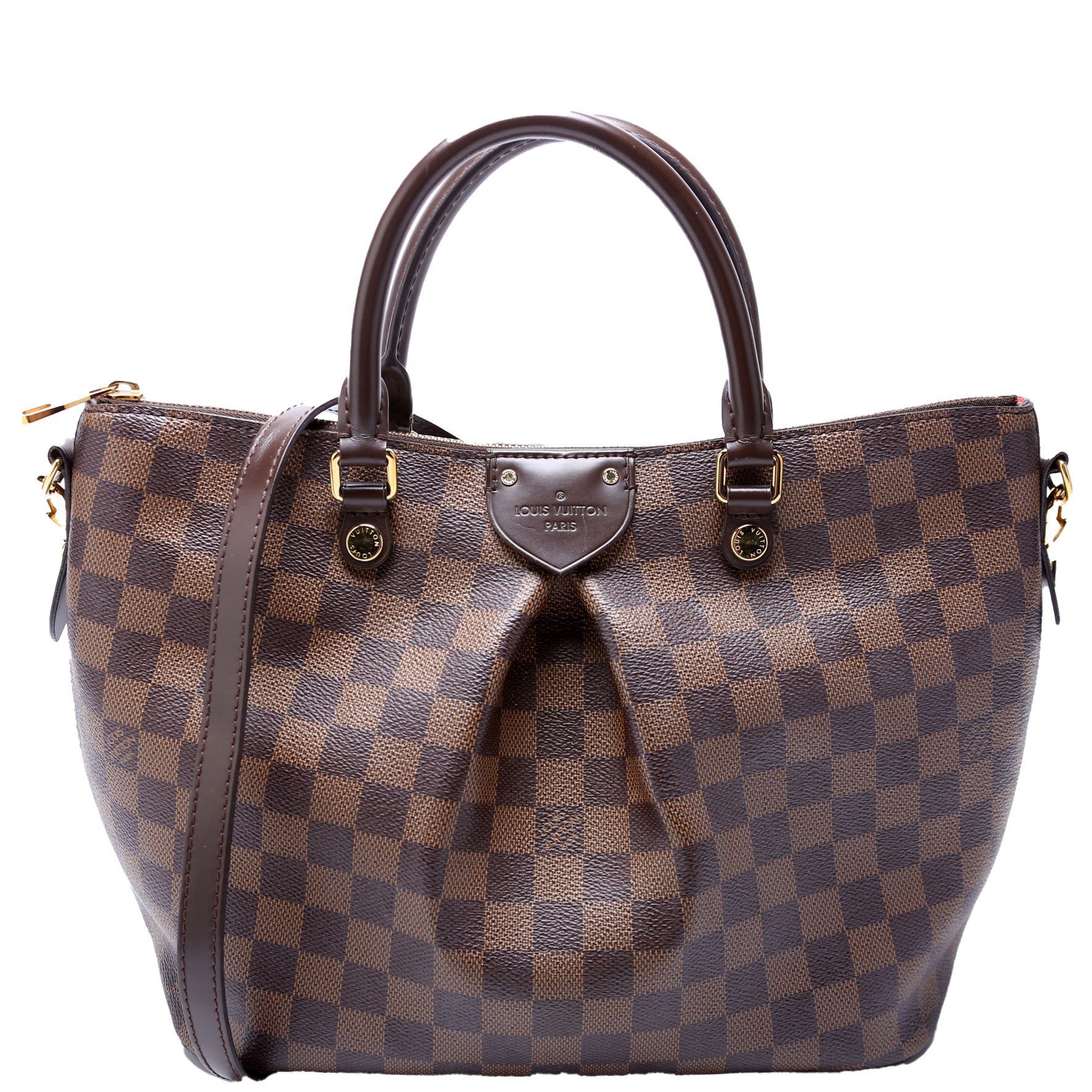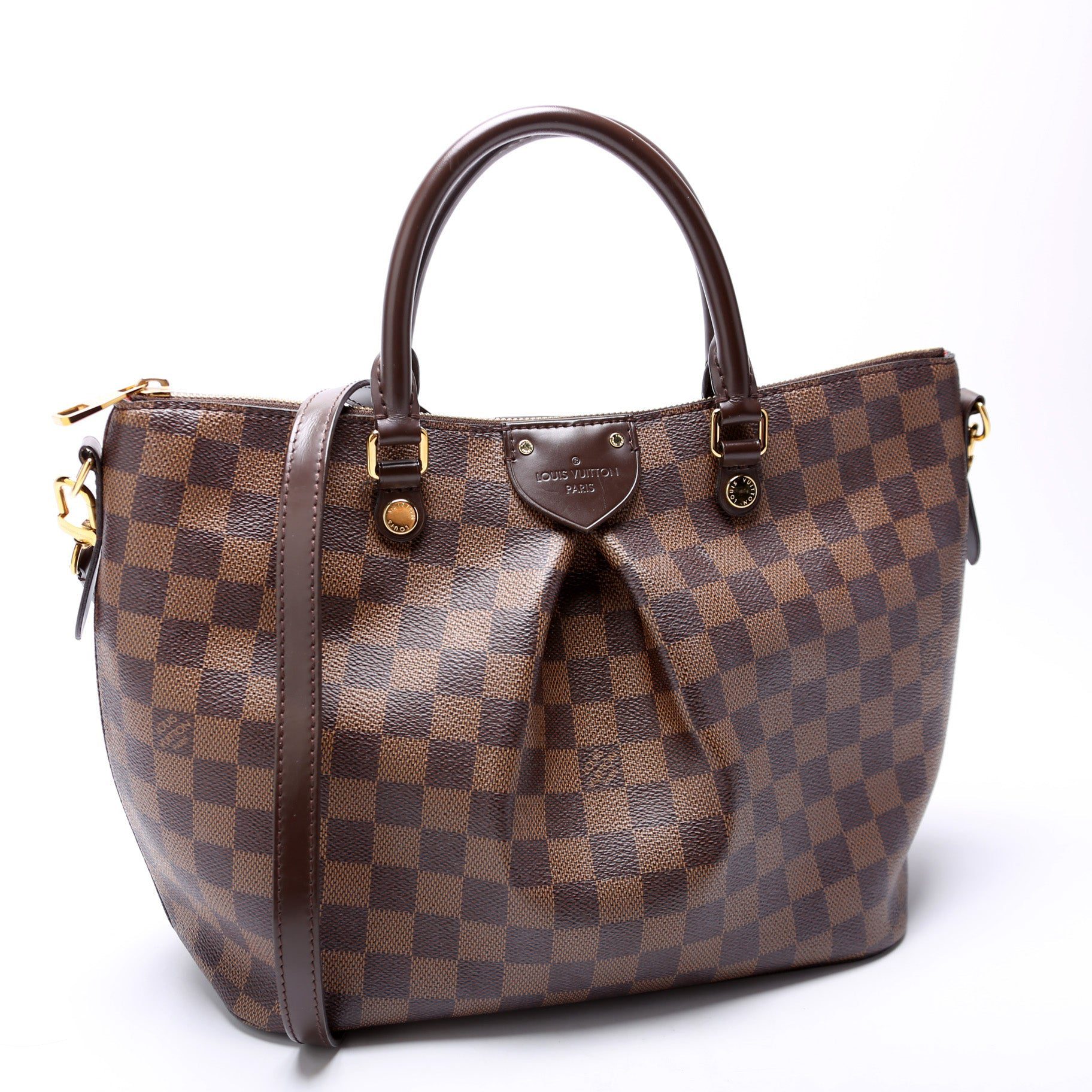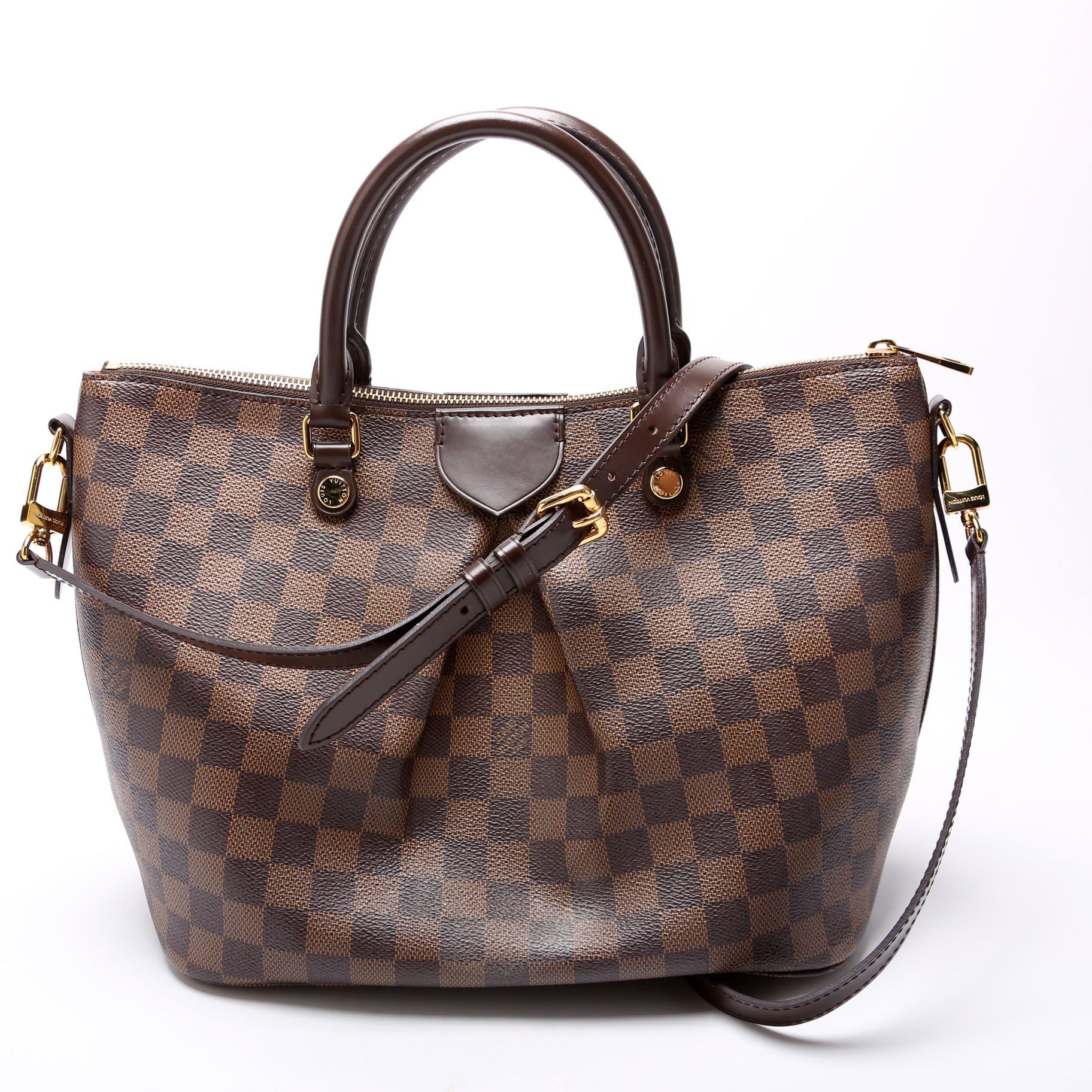Louis Vuitton Siena MM . The exterior is in the classic Louis Vuitton Damier Ebene coated canvas.