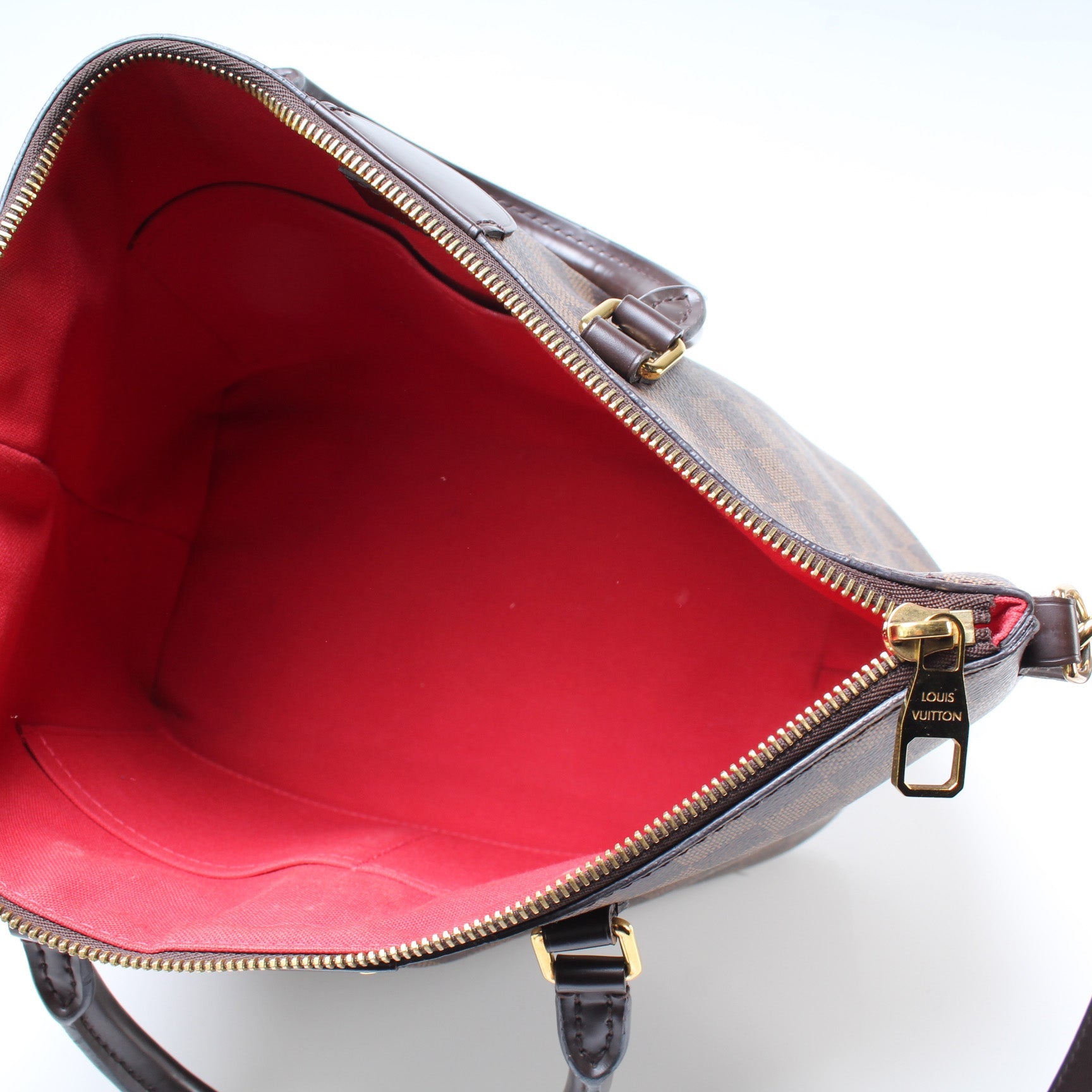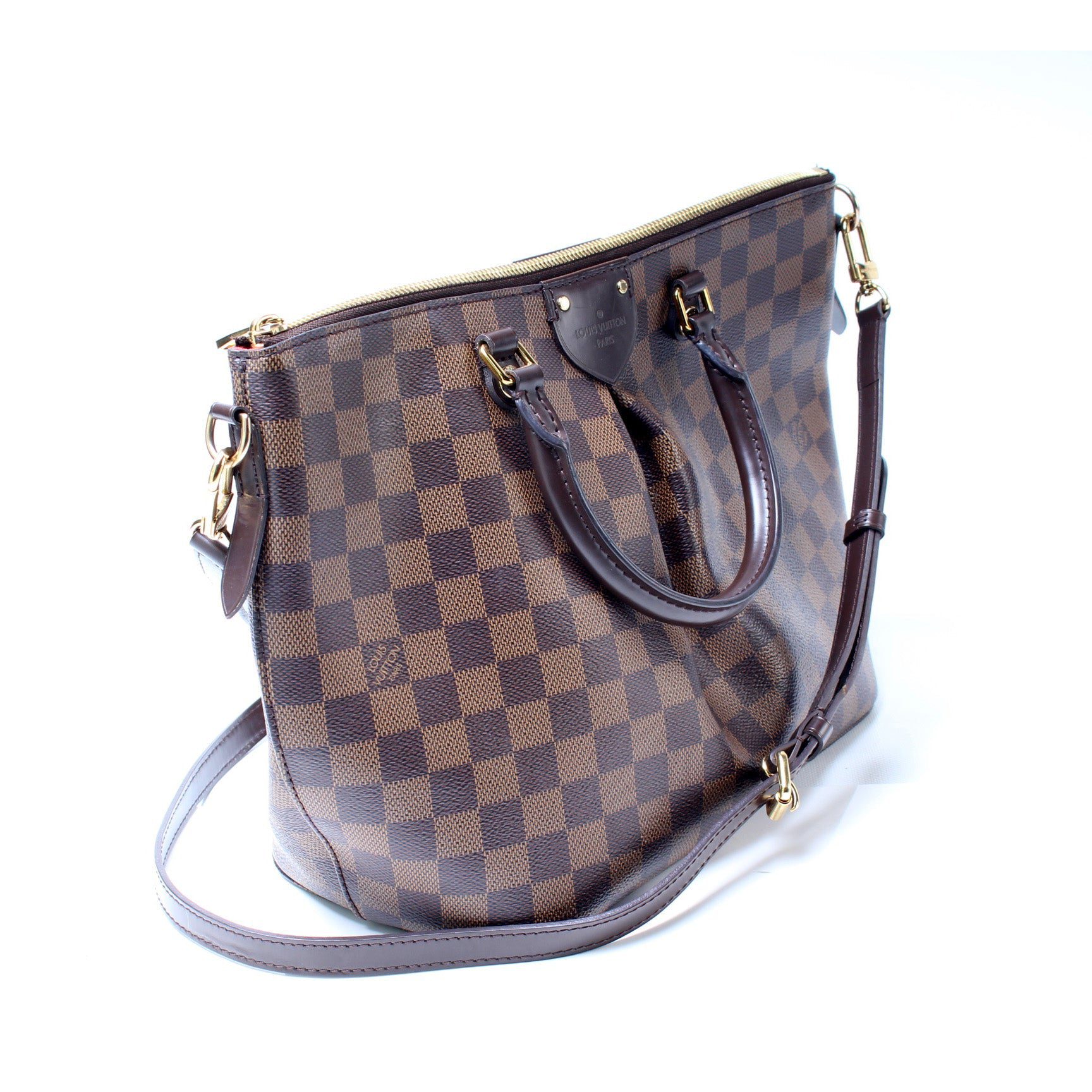 Louis Vuitton Siena MM. The exterior is in the classic damier ebene coated canvas.
