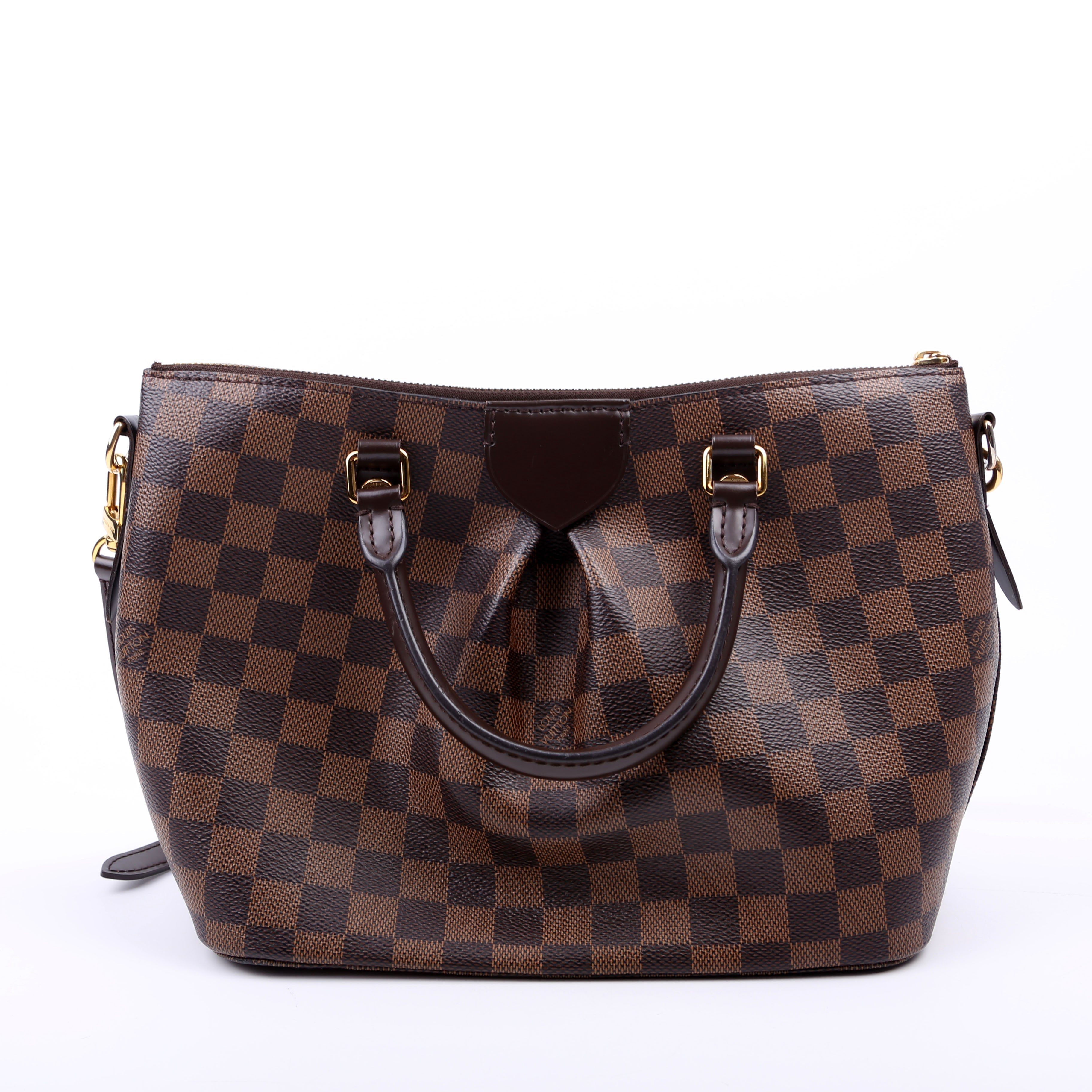 Louis Vuitton Siena PM . The exterior is in the classic Damier Ebene coated canvas.