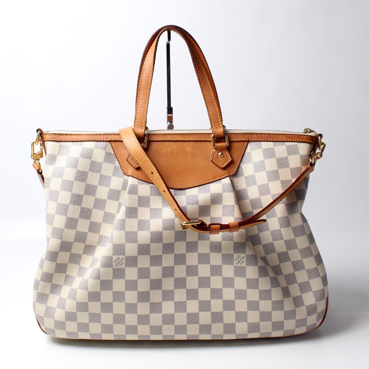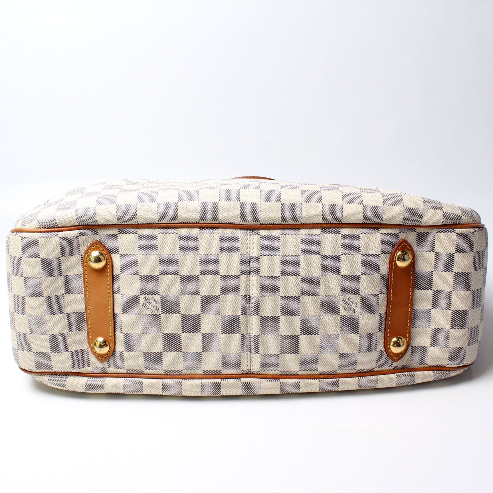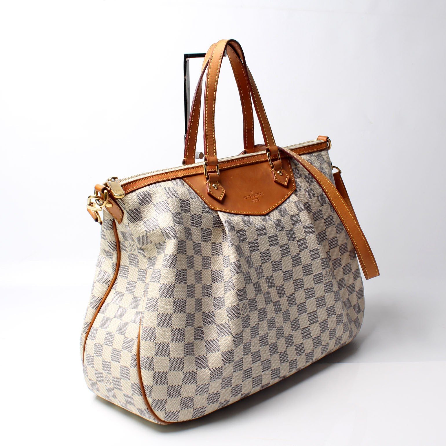 Louis Vuitton Siracusa GM. The exterior is in the classic Louis Vuitton Damier Azur coated canvas.Â