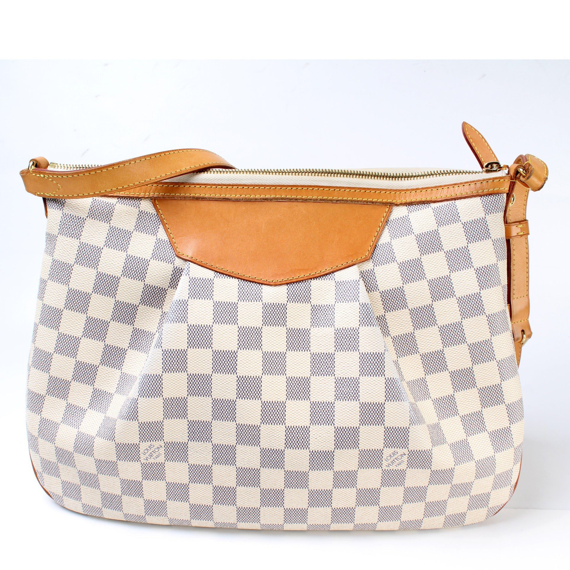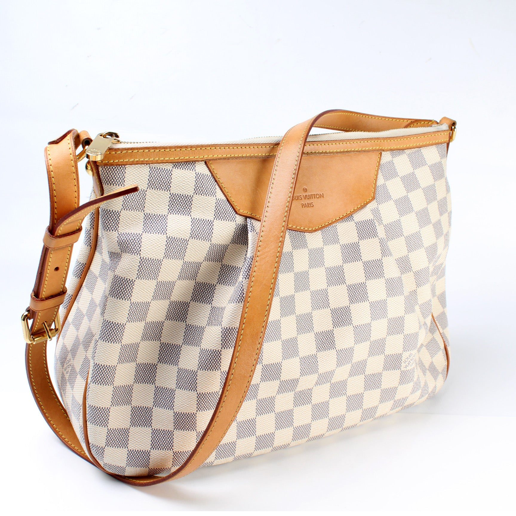 Louis Vuitton Siracusa MM�. The exterior is in the classic Louis Vuitton Damier Azur coated canvas.