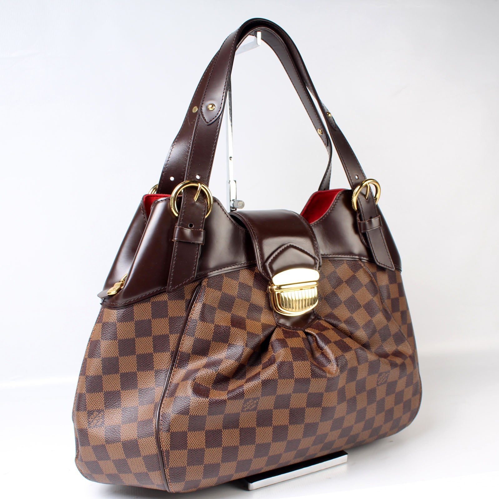 Louis Vuitton Sistina GM. The exterior is in the classic Louis Vuitton Damier Ebene coated canvas.Â