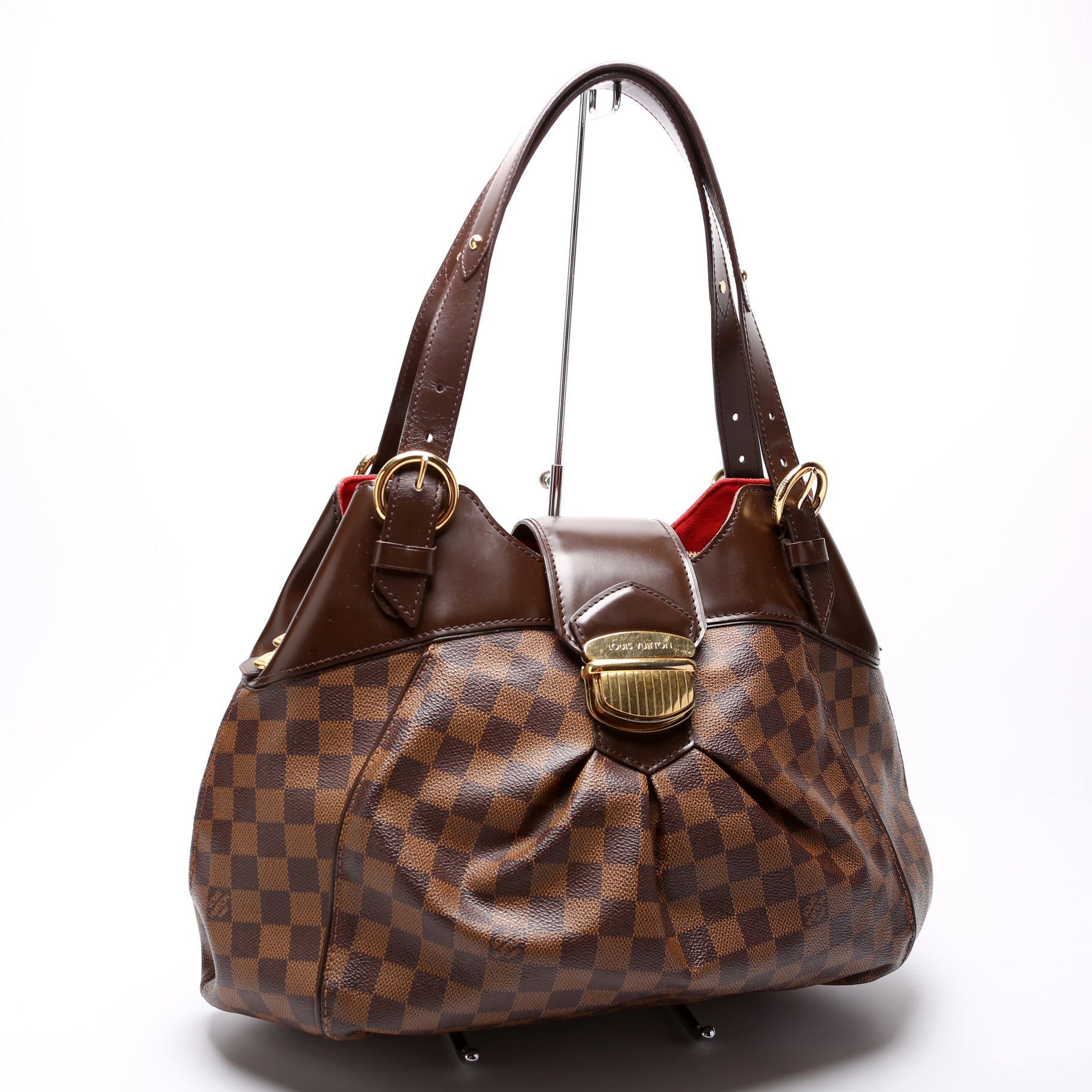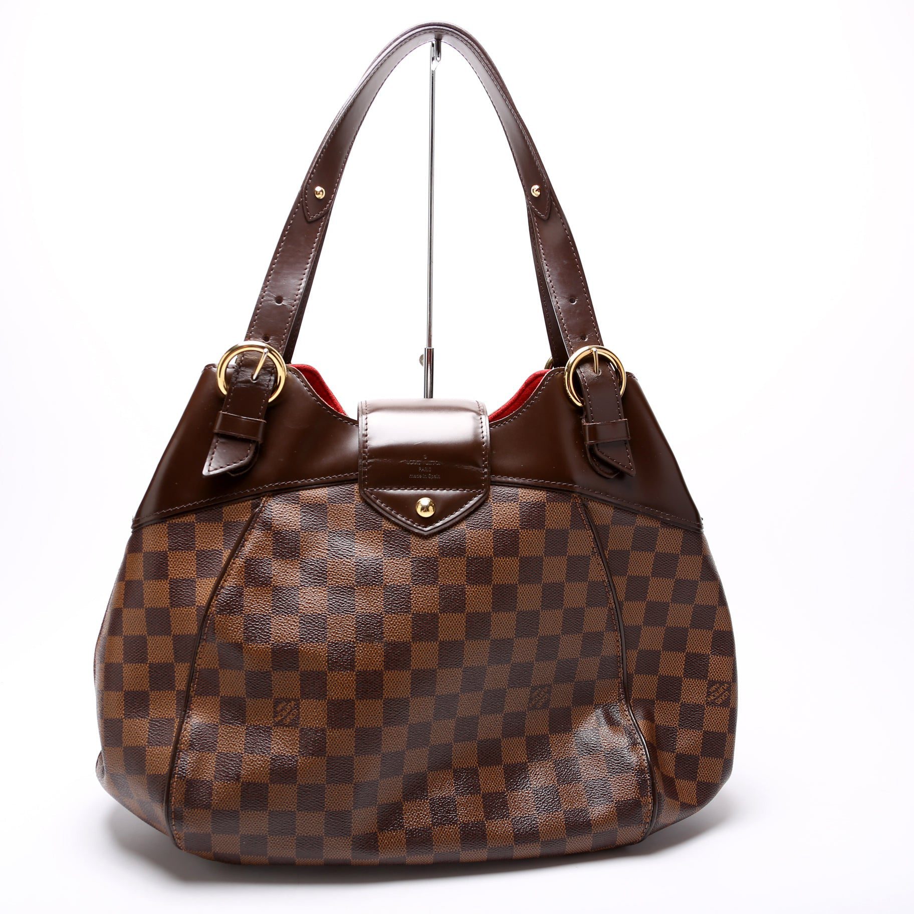 Louis Vuitton Sistina GM. The exterior is in the classic Louis Vuitton Damier Ebene coated canvas.Â