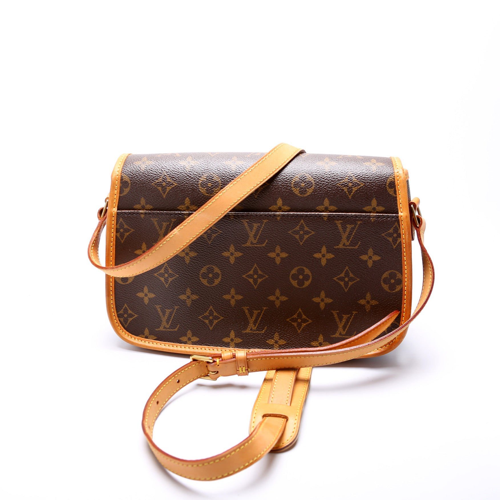 Louis Vuitton Sologne. The exterior is in the classic Louis Vuitton Monogram coated canvas.Â