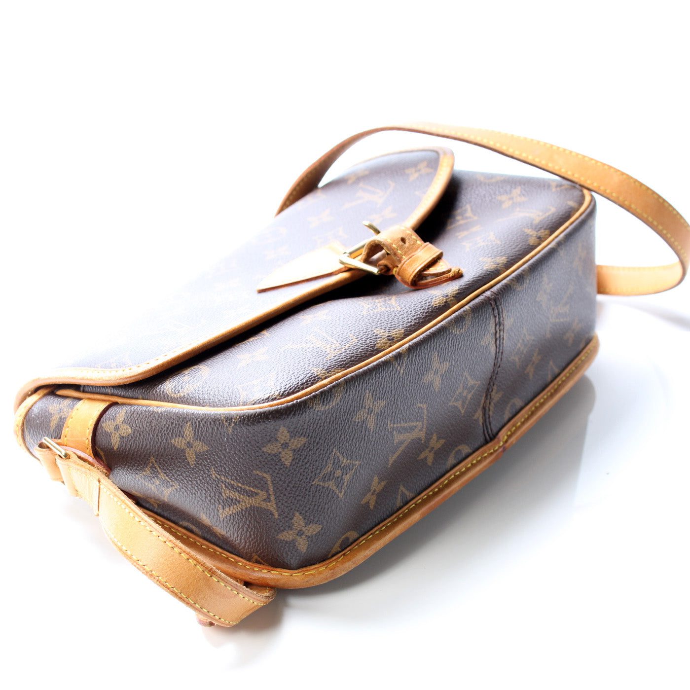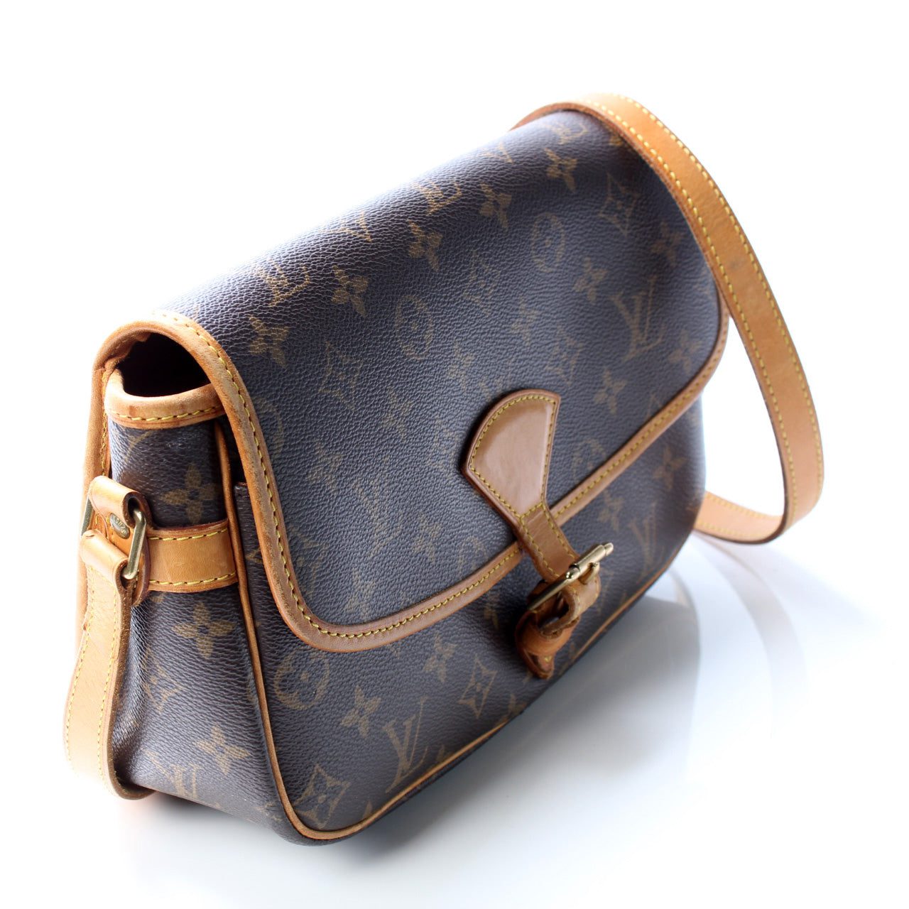 Louis Vuitton Sologne. The exterior is in the classic Louis Vuitton Monogram coated canvas.Â