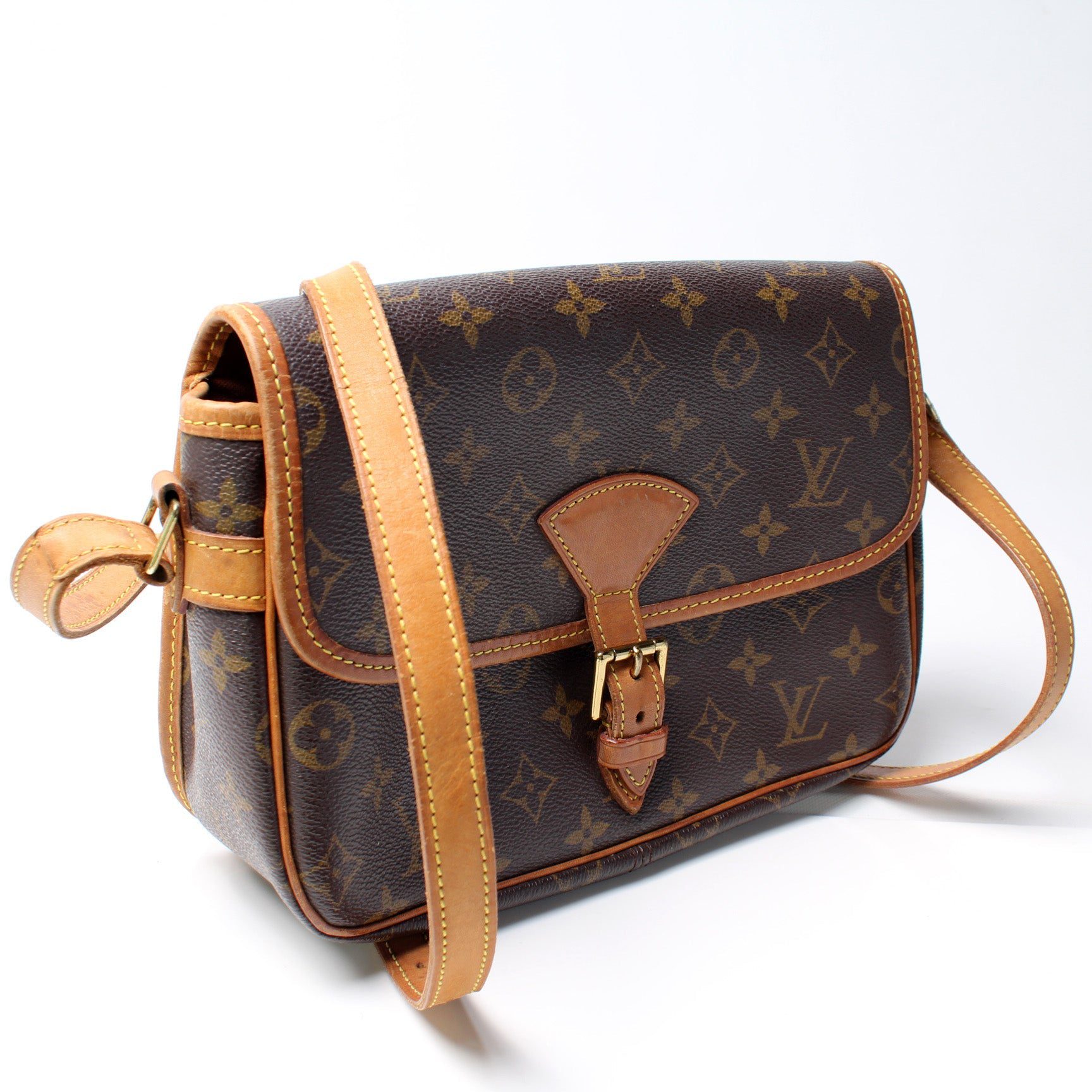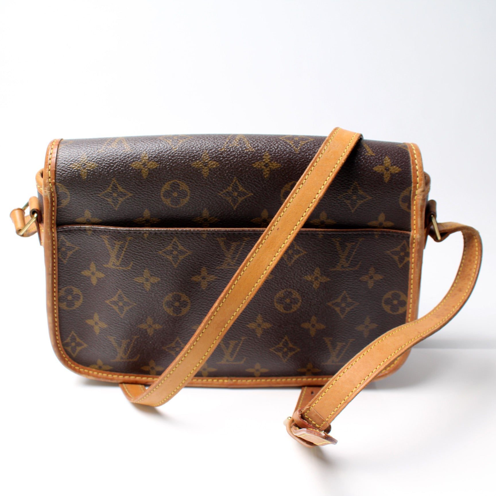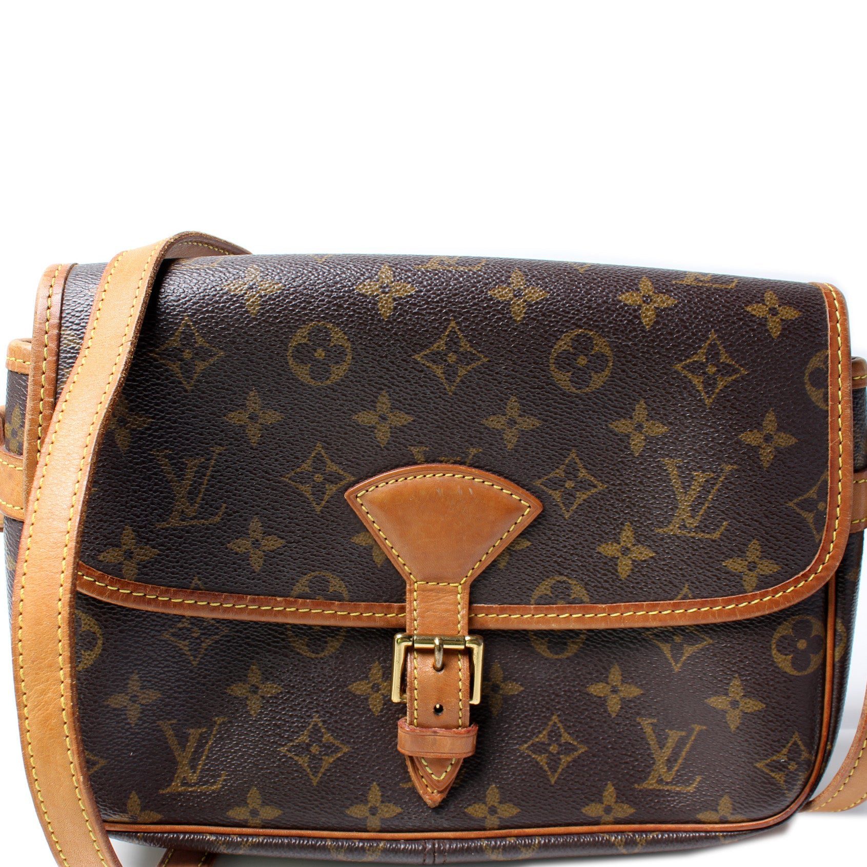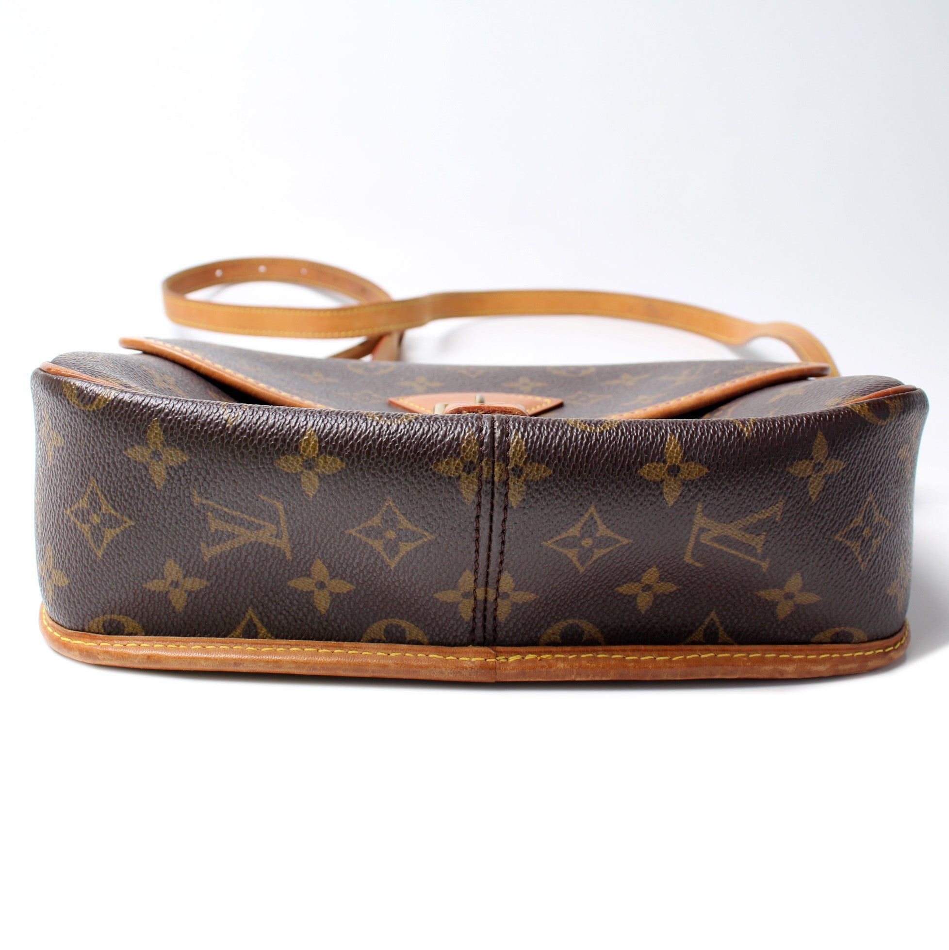 Louis Vuitton Sologne. The exterior is in the classic Louis Vuitton Monogram coated canvas.Â