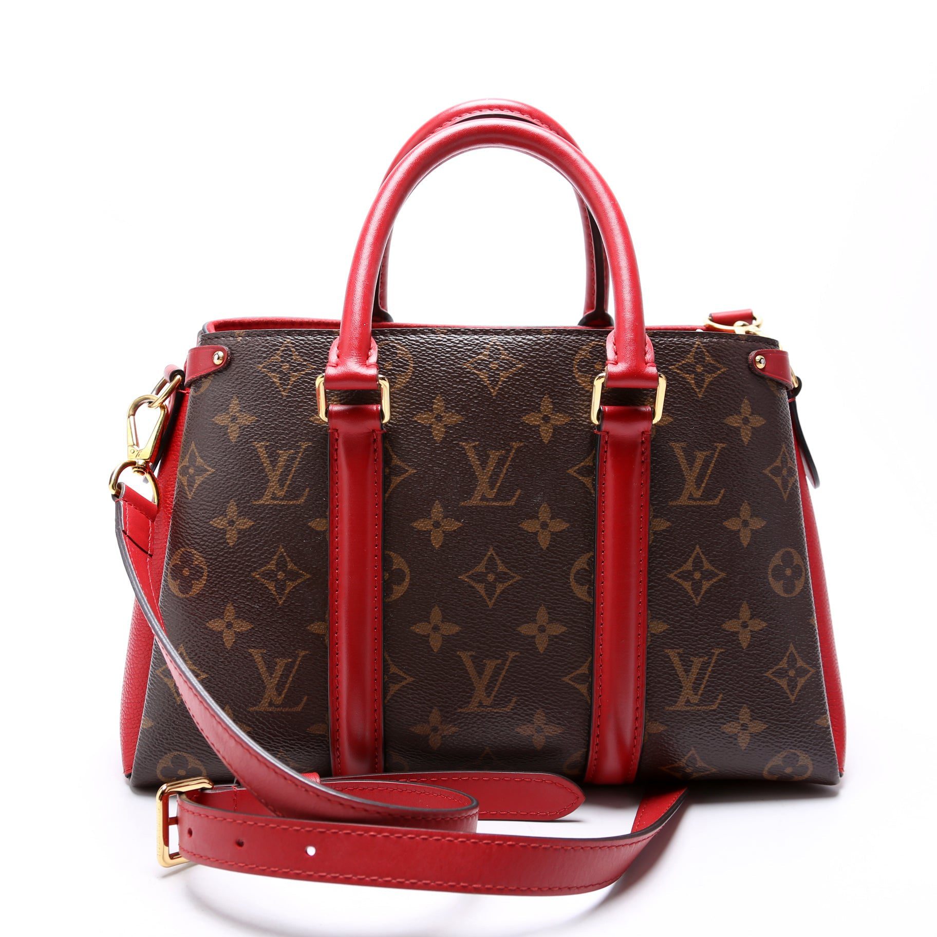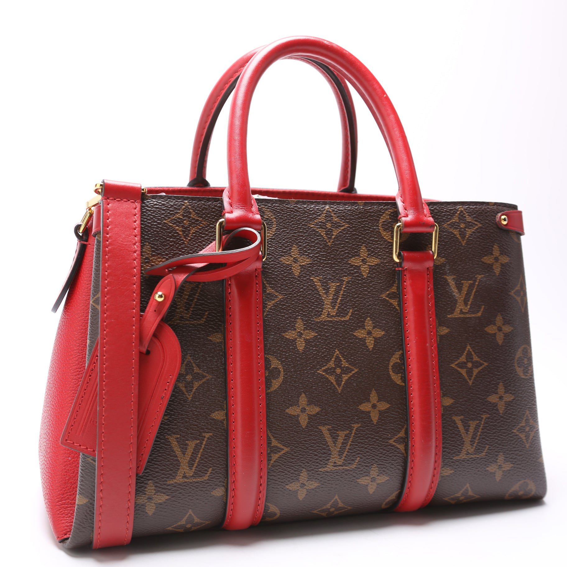 Louis Vuitton Soufflot BB. The exterior is in the classic Louis Vuitton Monogram coated canvas.