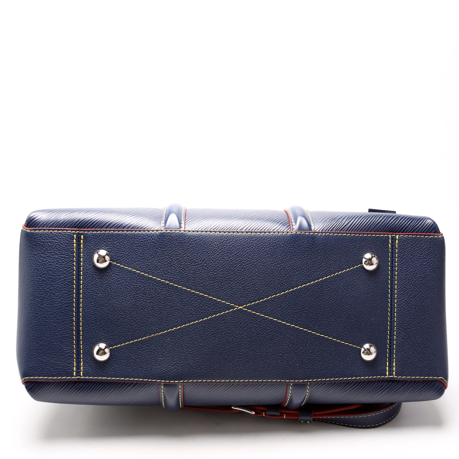 Louis Vuitton Soufflot MM . The exterior is in the classic Louis Vuitton Epi leather.