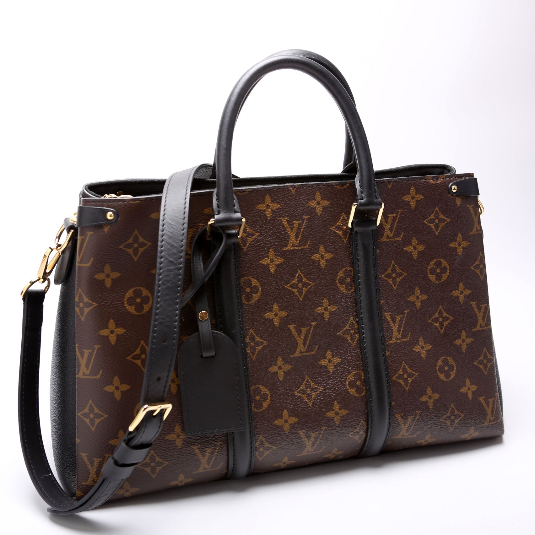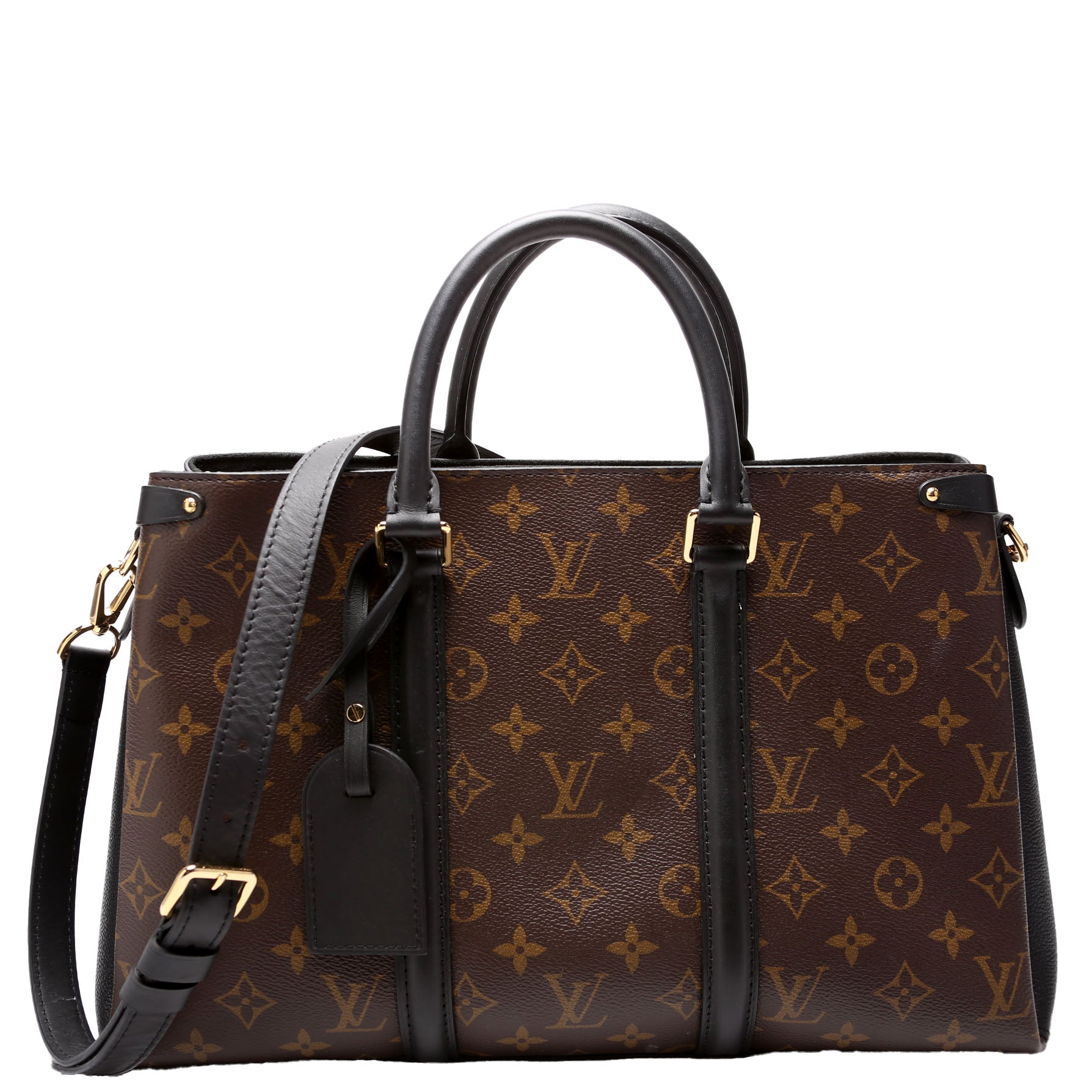 Louis Vuitton Soufflot MM . The exterior is in the classic Louis Vuitton Monogram coated canvas.