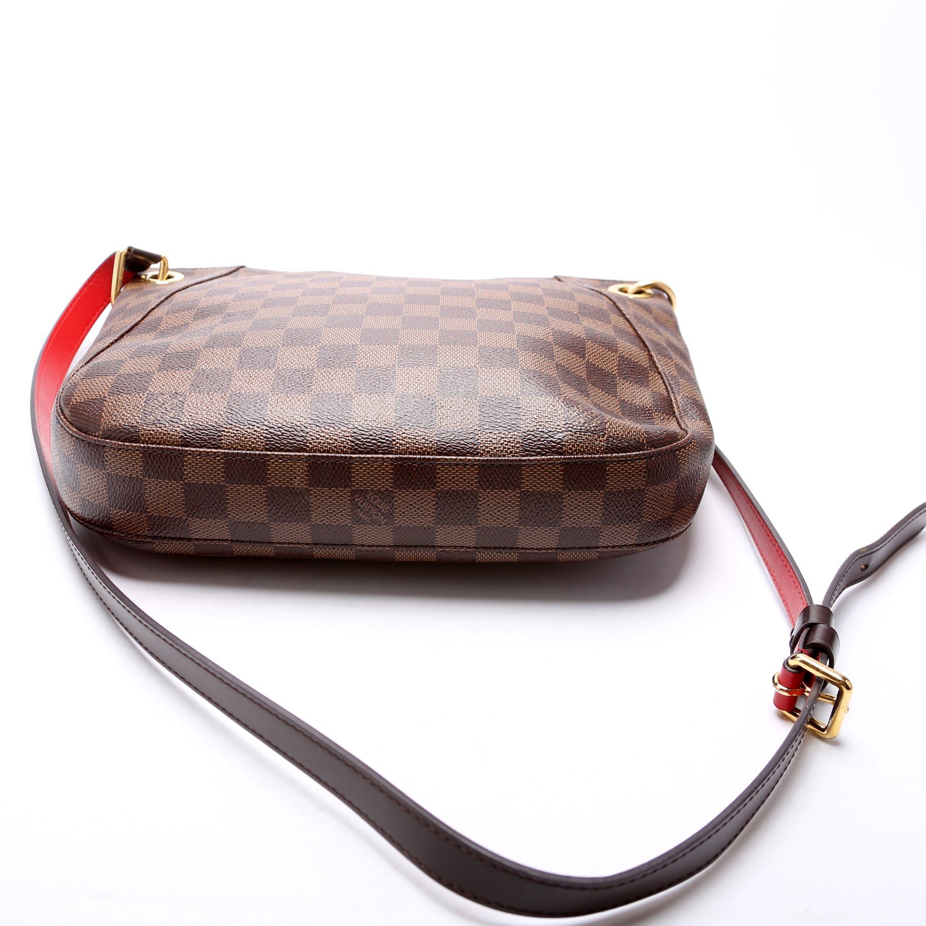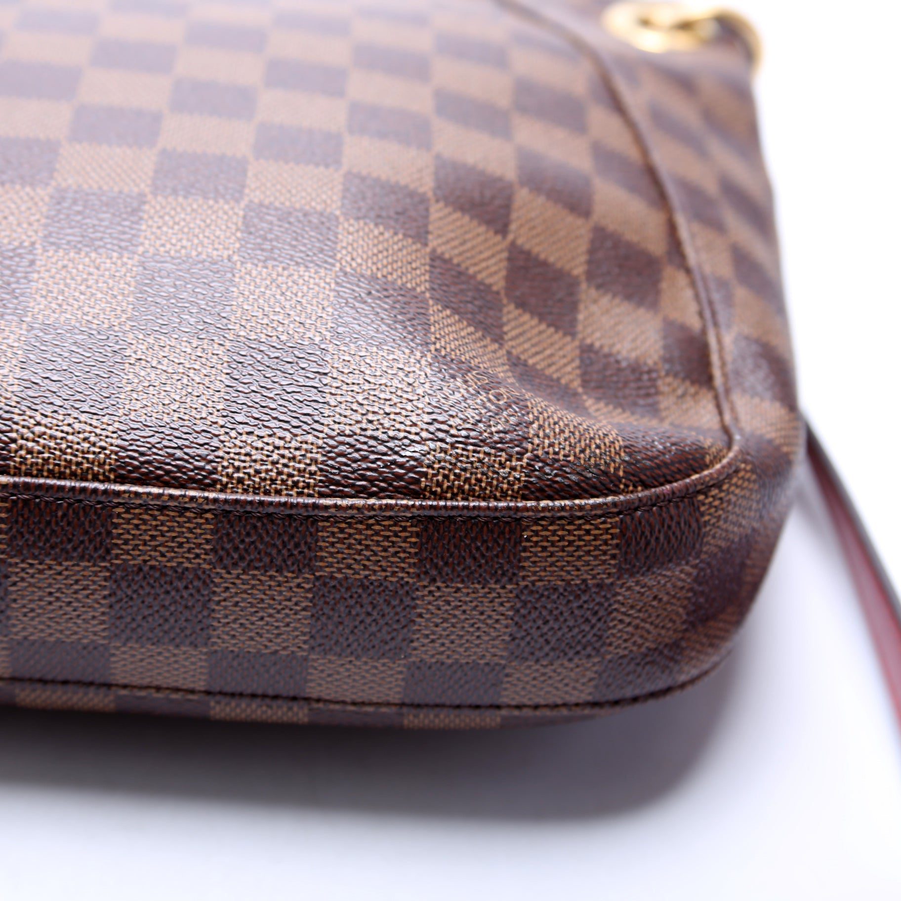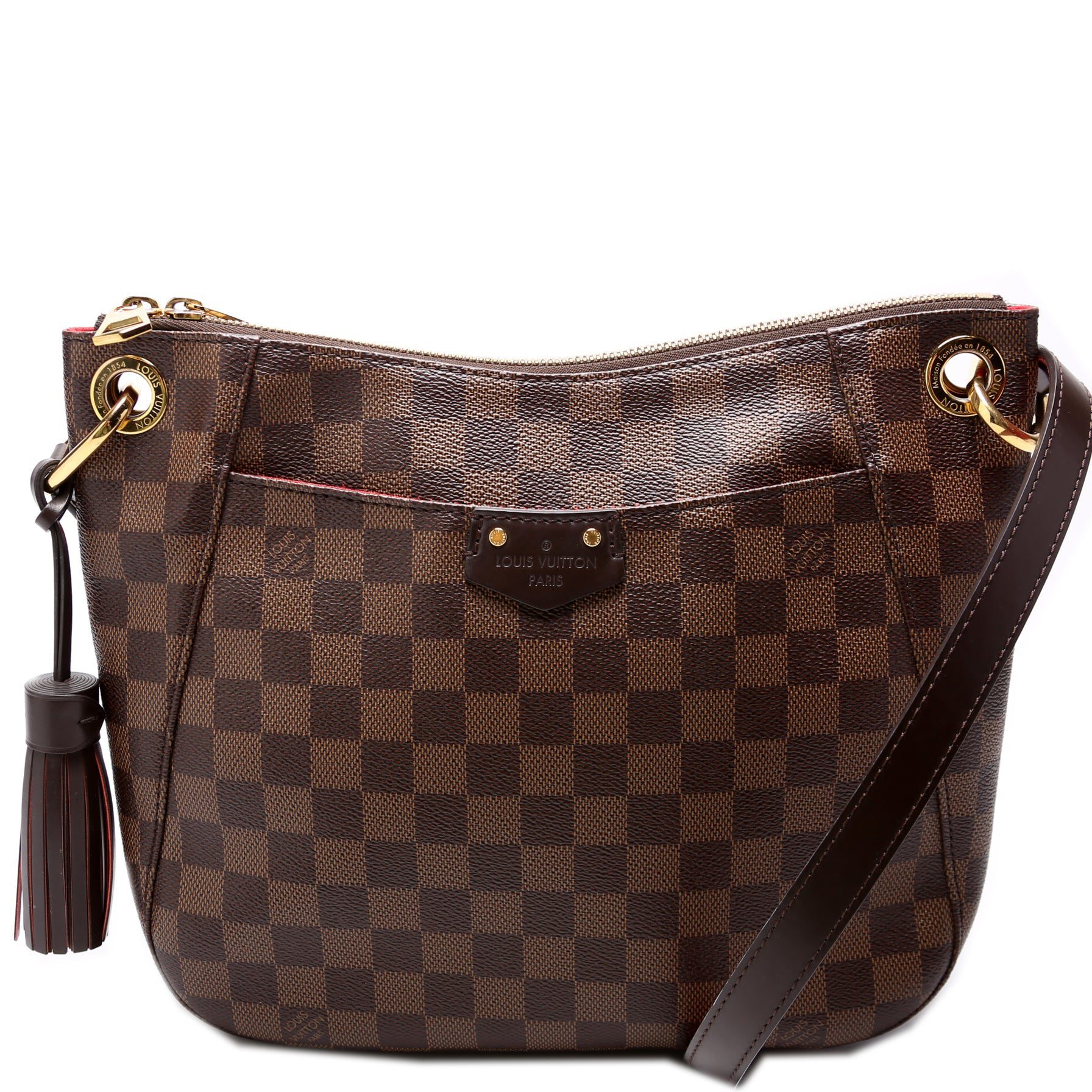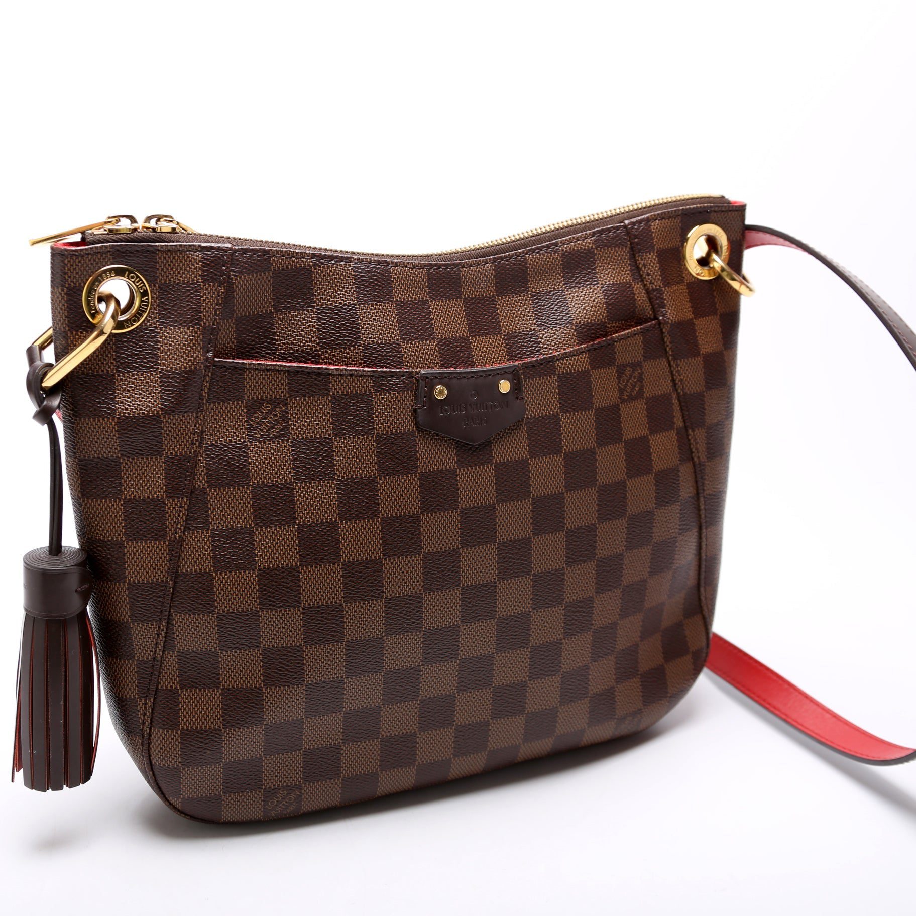 Louis Vuitton South Bank Besace. The exterior is in the classic Louis Vuitton Damier Ebene coated canvas.Â