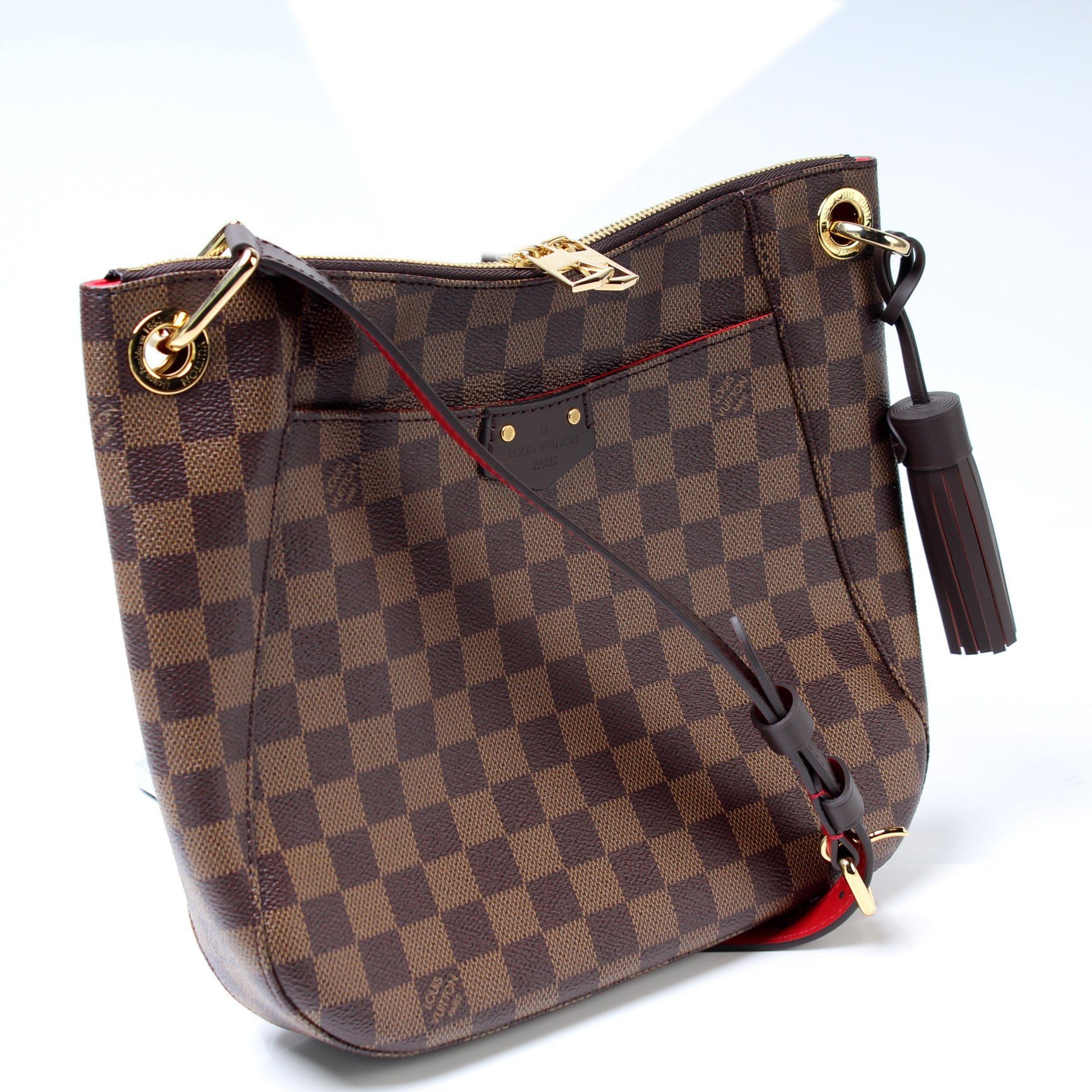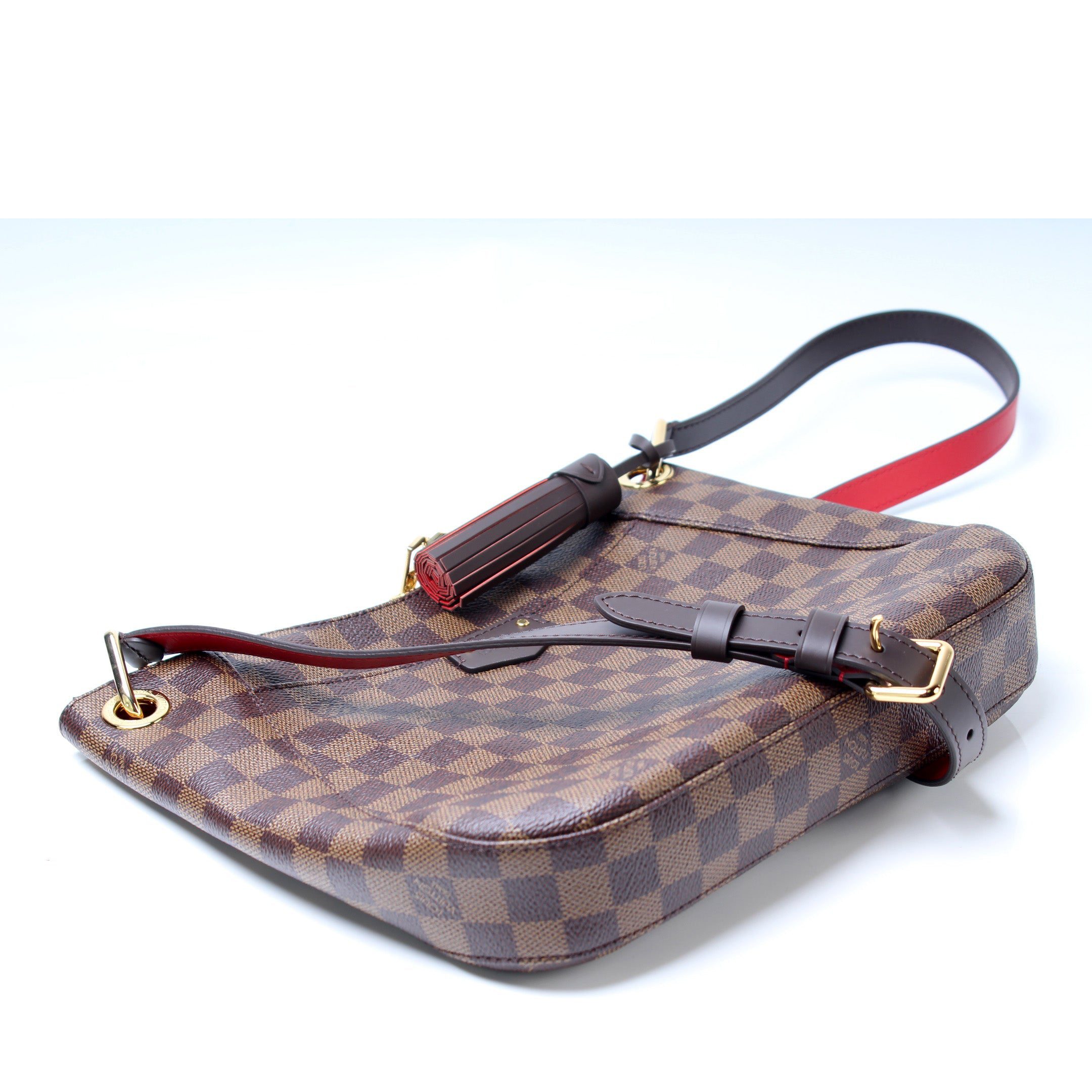 Louis Vuitton South Bank Besace. The exterior is in the classic Louis Vuitton damier ebene coated canvas.Â