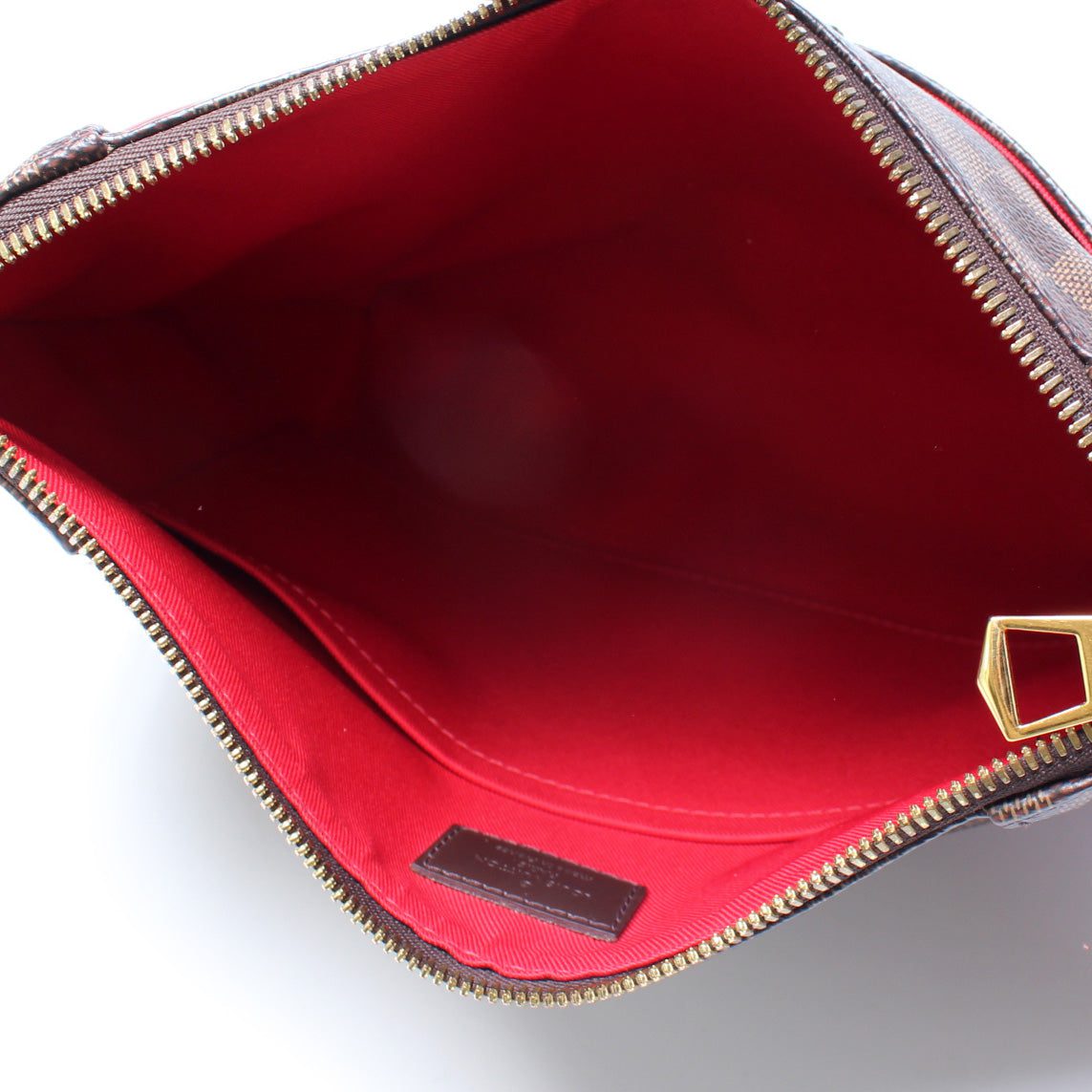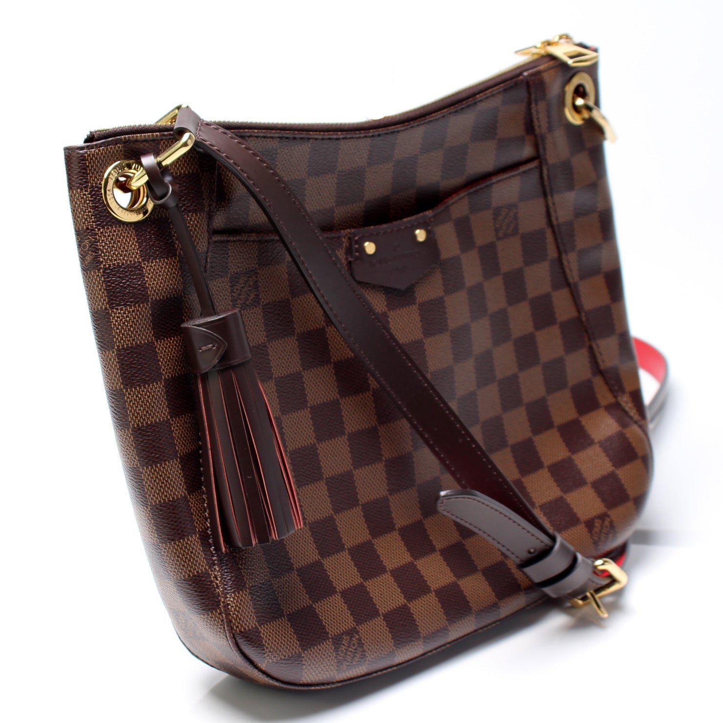 Louis Vuitton South Bank Besace. The exterior is in the classic Louis Vuitton Damier Ebene coated canvas.Â