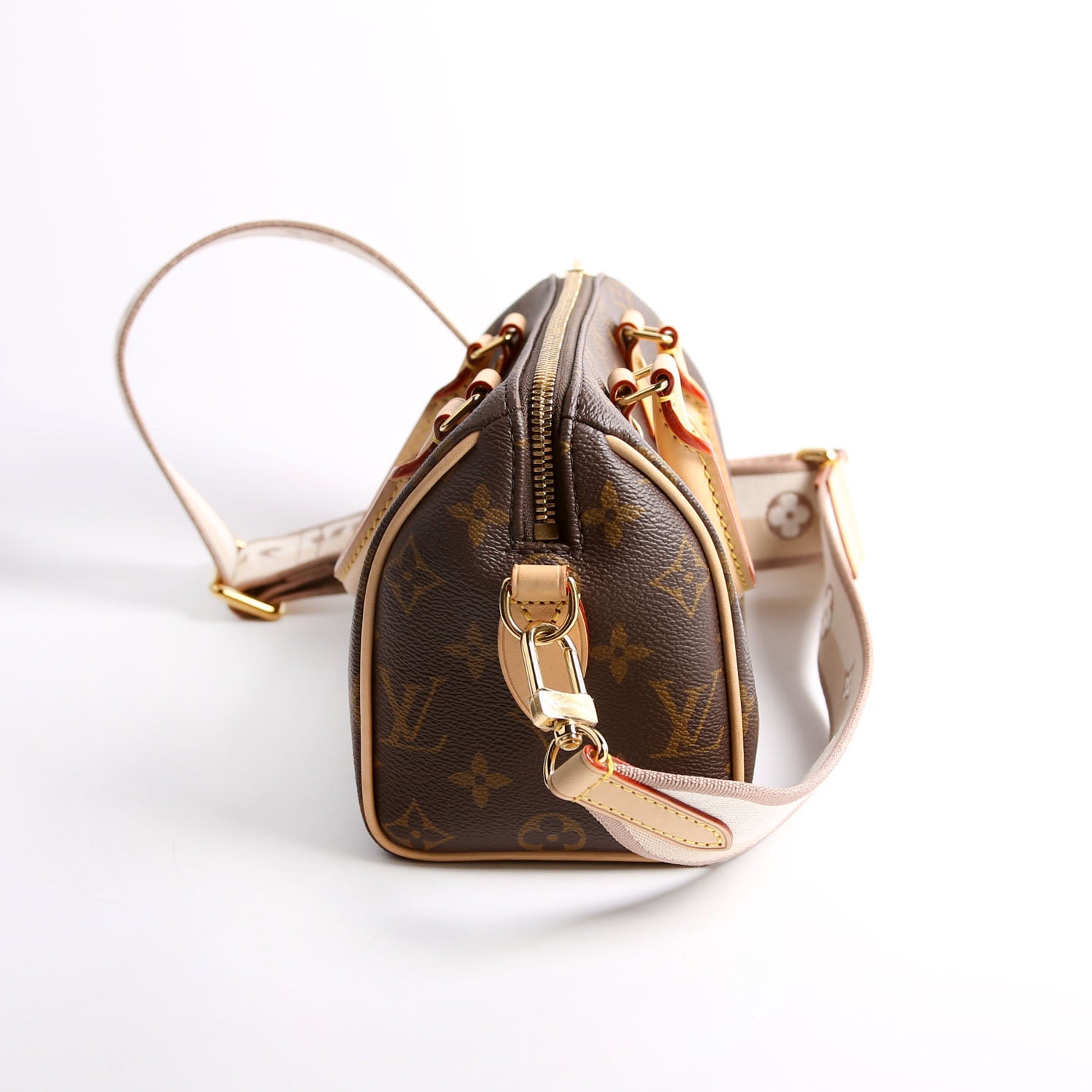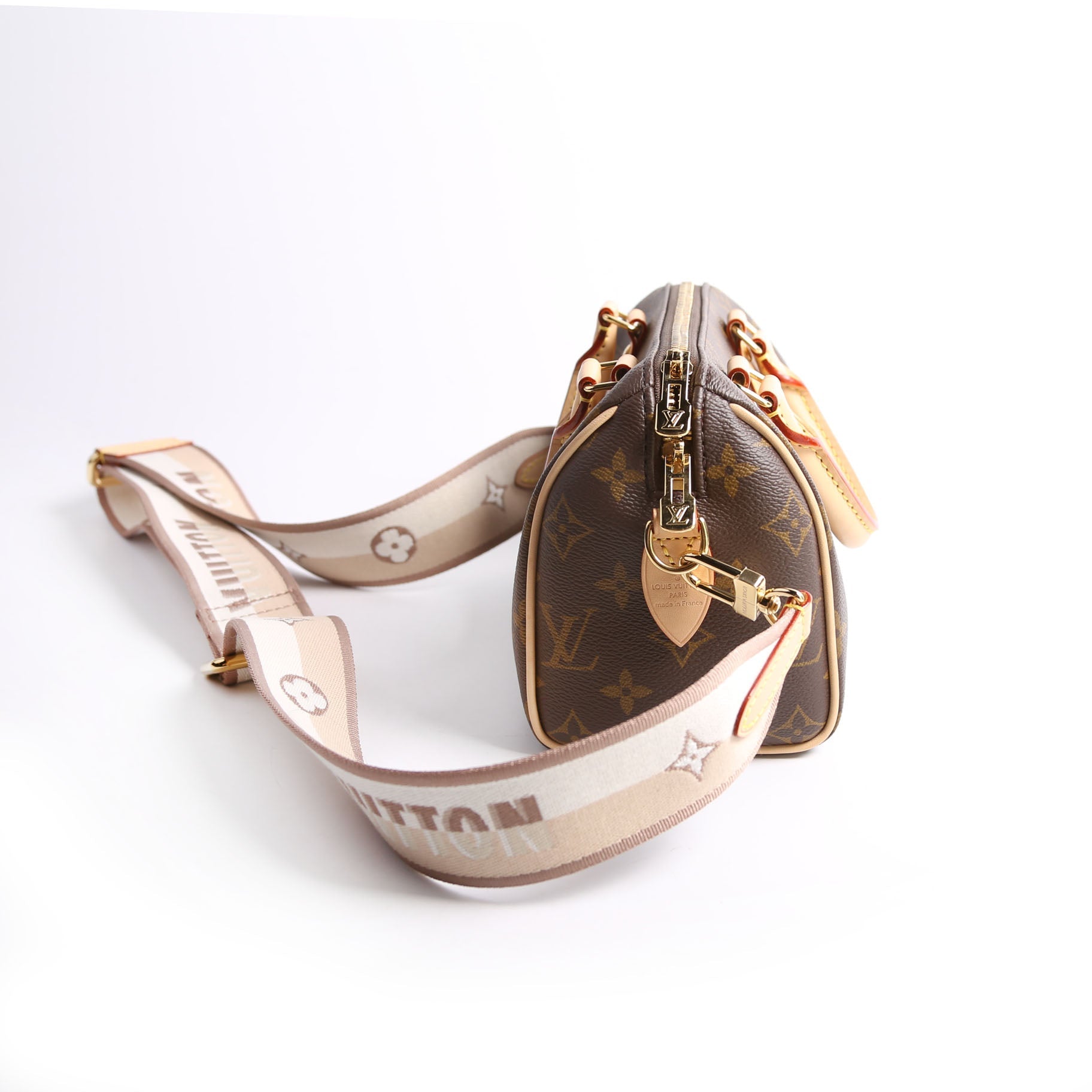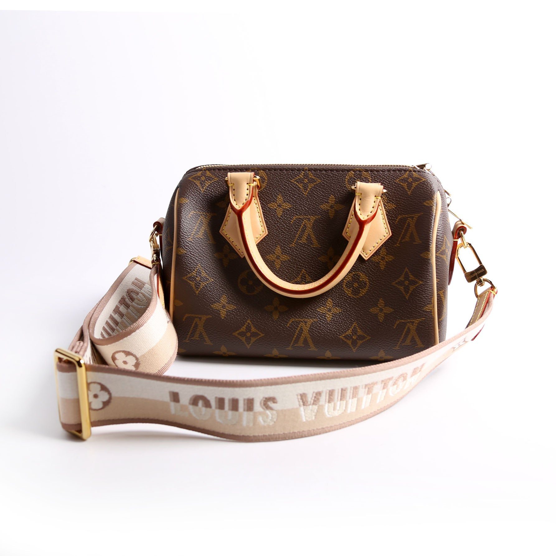 Louis Vuitton Speedy 20 Bandouliere . The exterior is in the classic Louis Vuitton Monogram coated canvas.Â