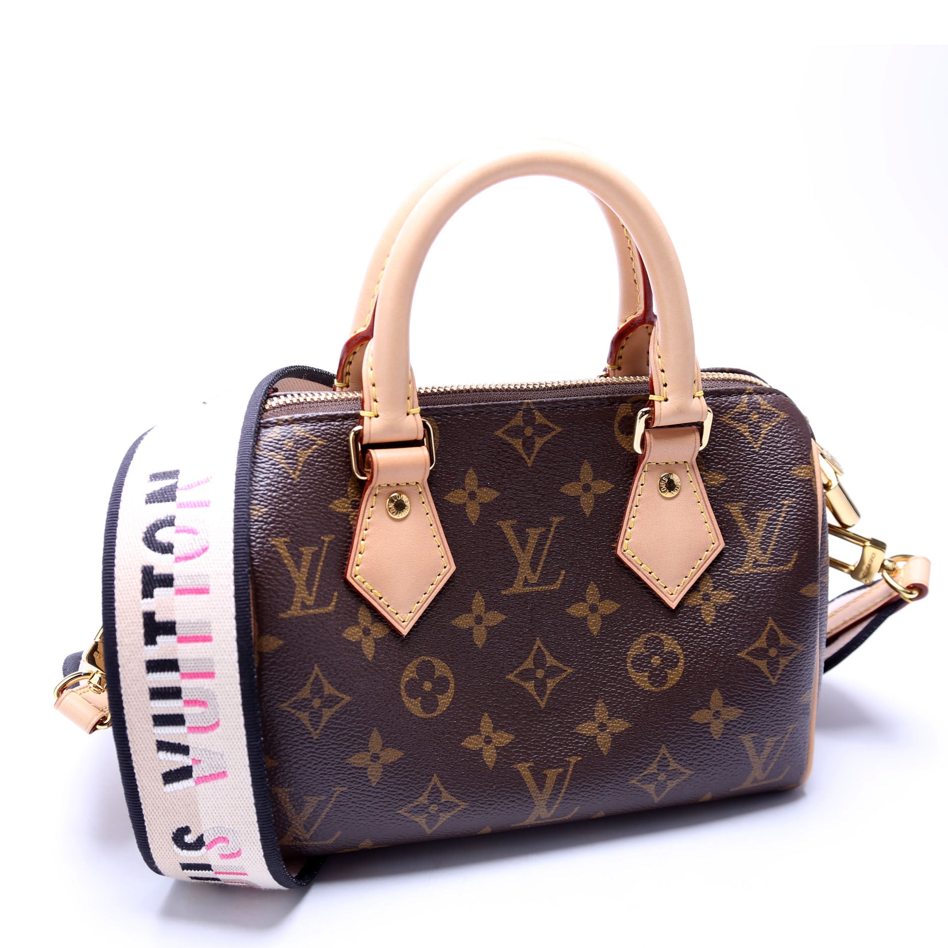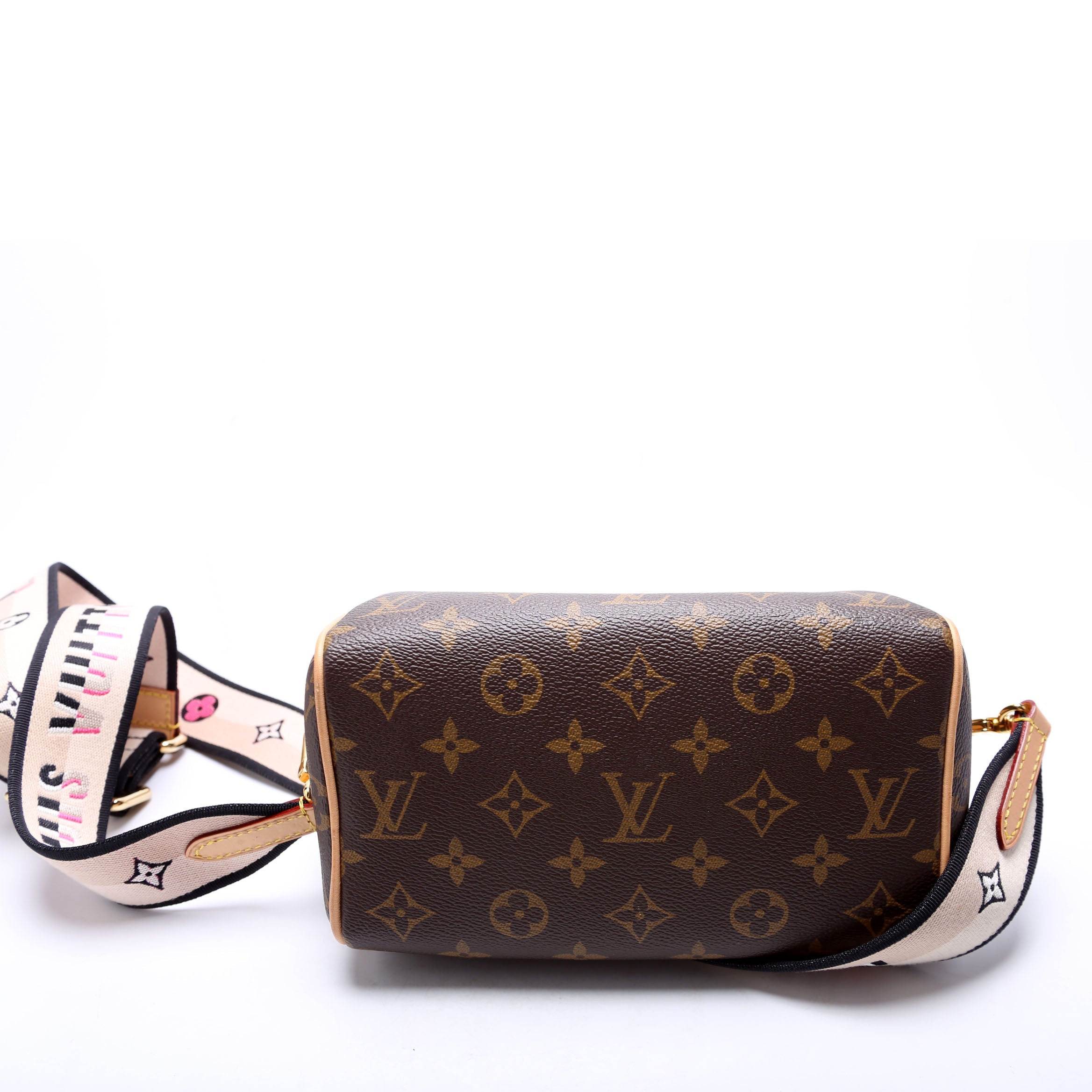 Louis Vuitton Speedy 20 Bandouliere With Canvas Strap . The exterior is in the Louis Vuitton Monogram coated canvas.Â