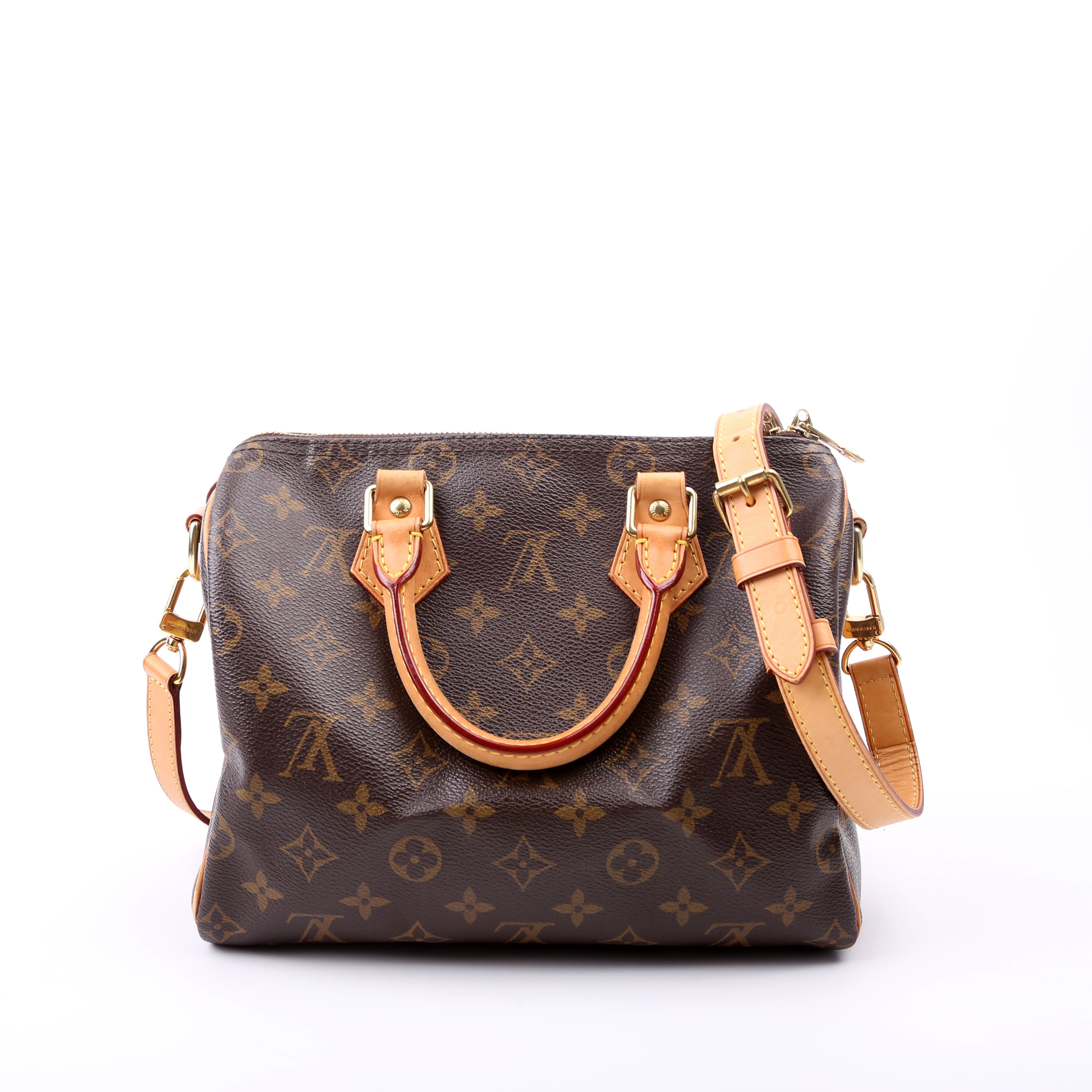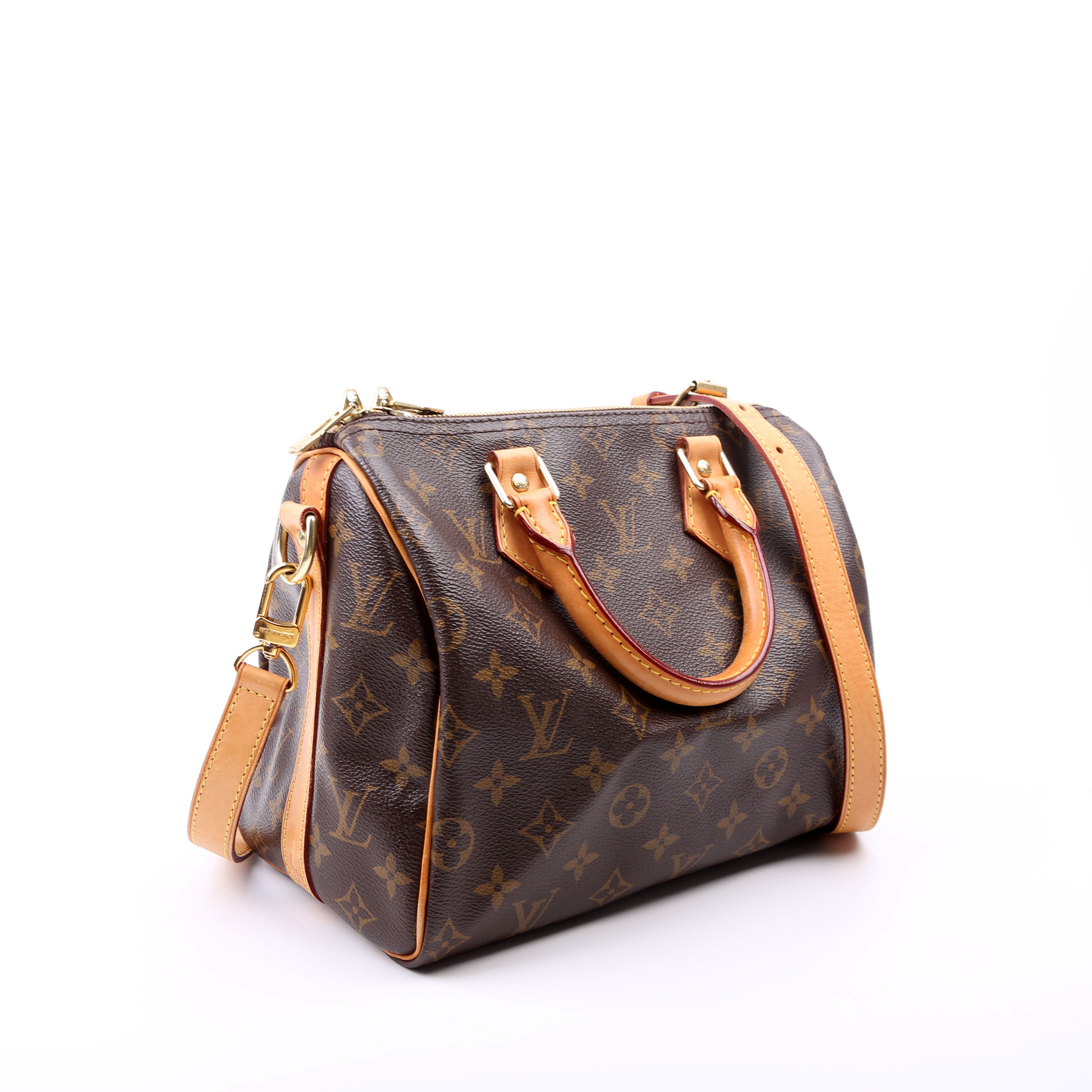 Louis Vuitton Speedy 25 Bandouliere . The exterior is in the classic Louis Vuitton Monogram coated canvas.Â