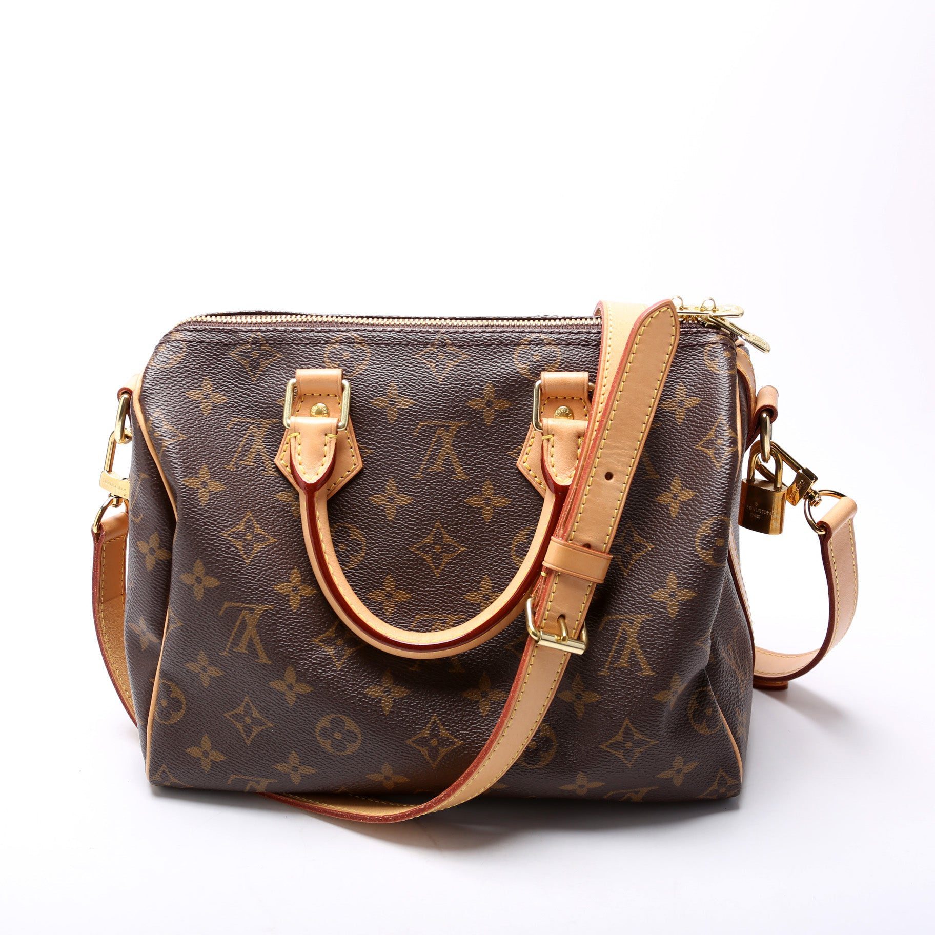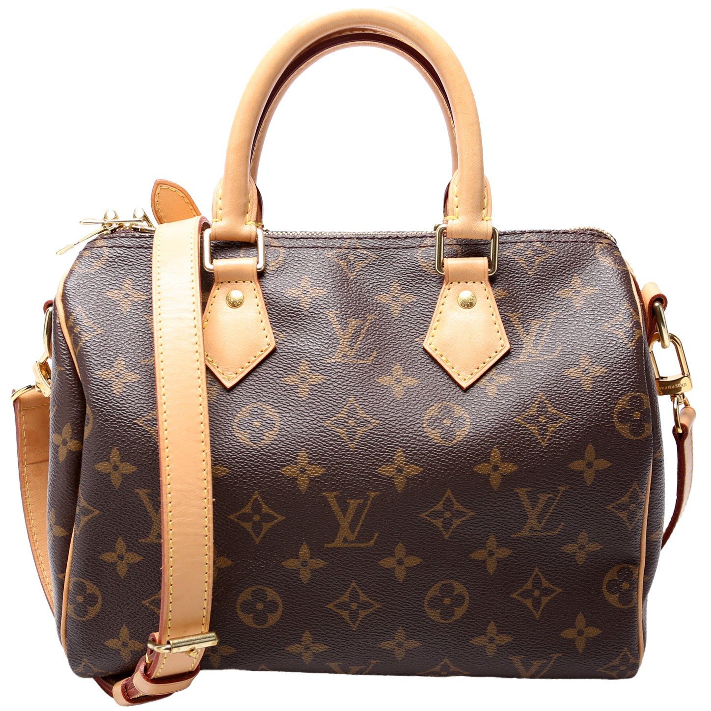 Louis Vuitton Speedy 25 Bandouliere. The exterior is in the classic Louis Vuitton Monogram coated canvas.Â