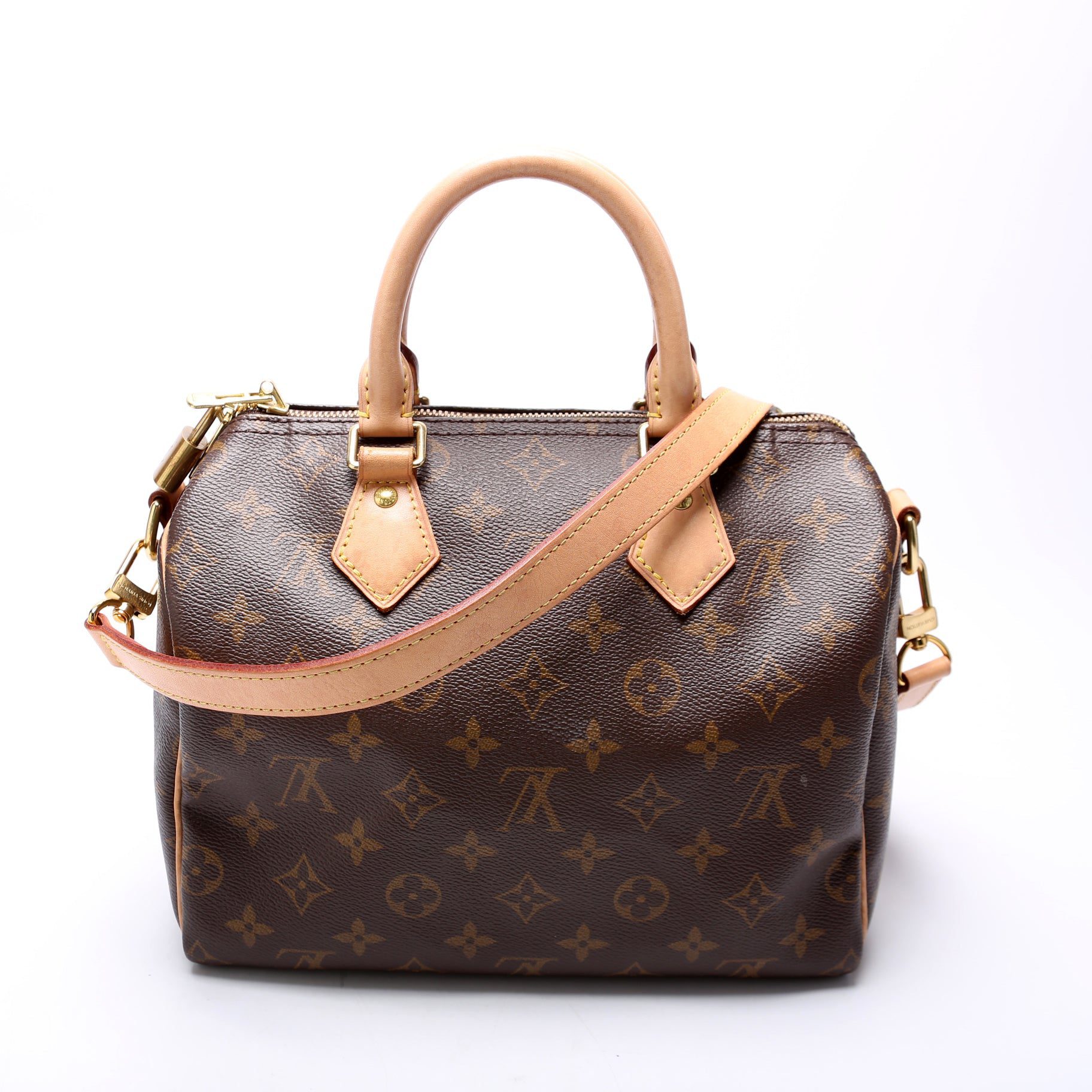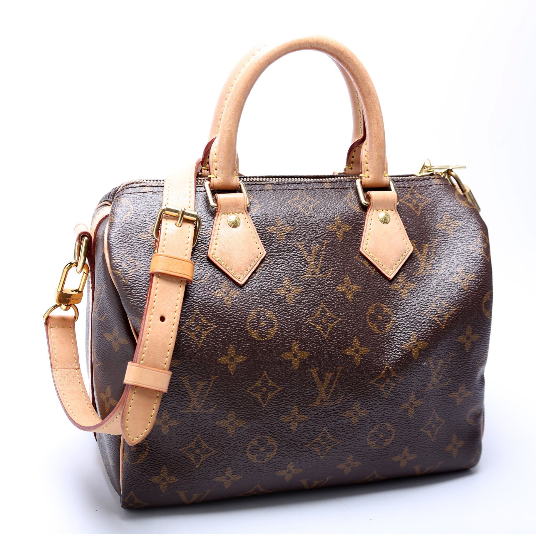 Louis Vuitton Speedy 25 Bandouliere. The exterior is in the classic Louis Vuitton Monogram coated canvas.Â