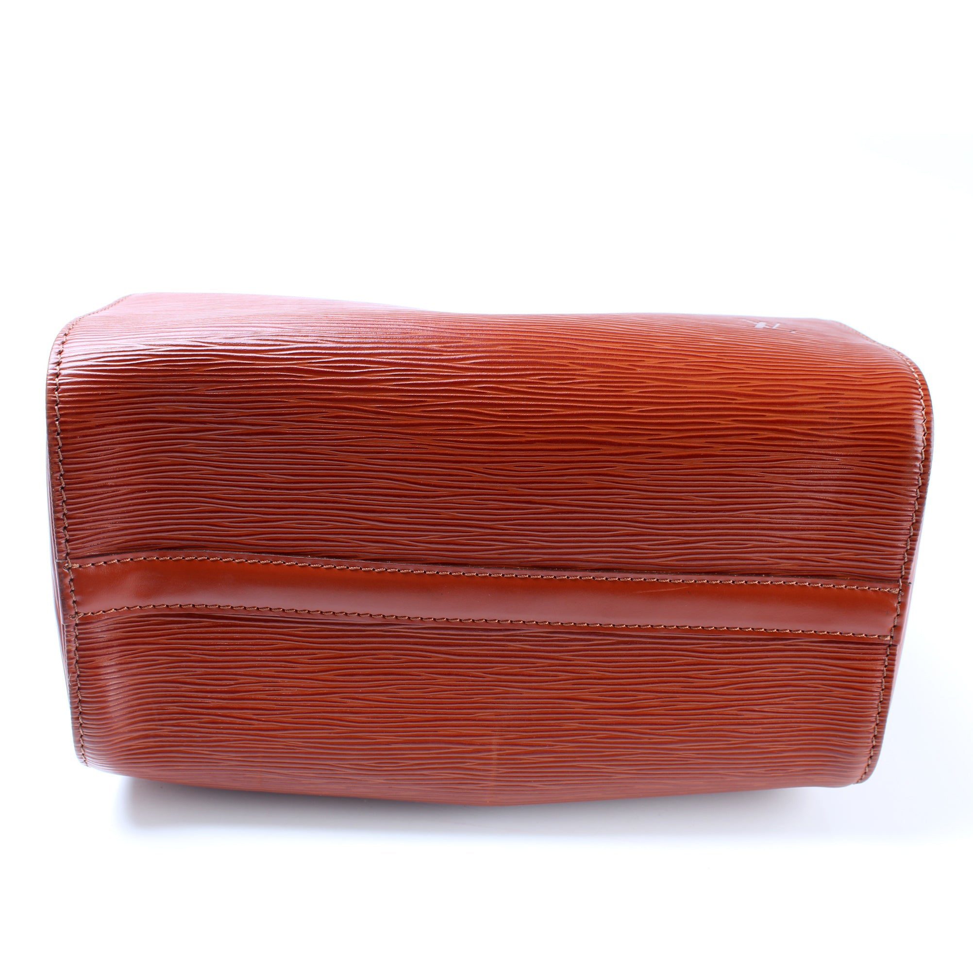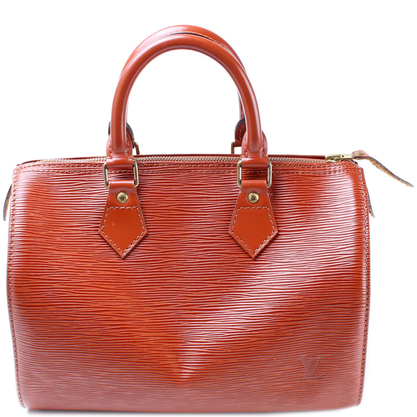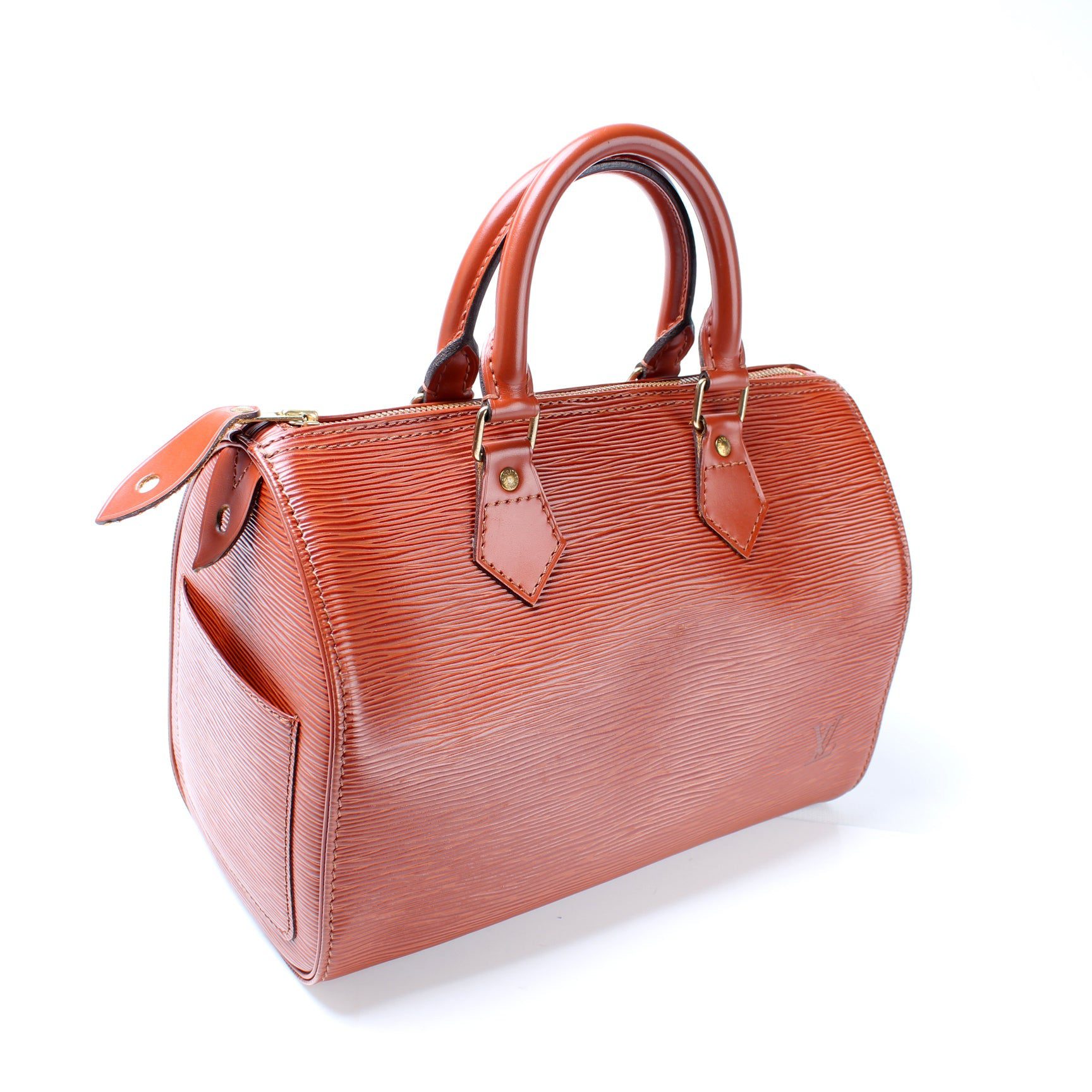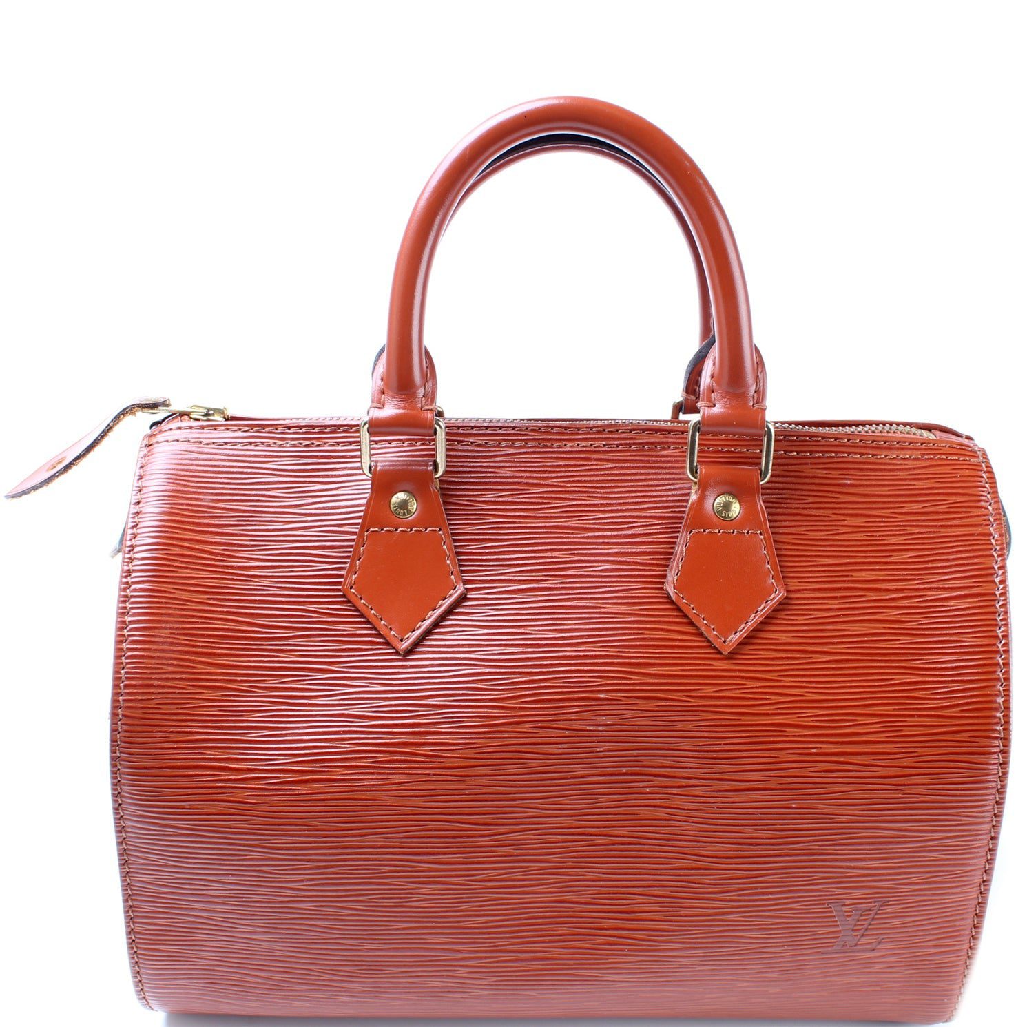 Louis Vuitton Speedy 25. The exterior is in the classic Louis Vuitton Epi Leather.Â