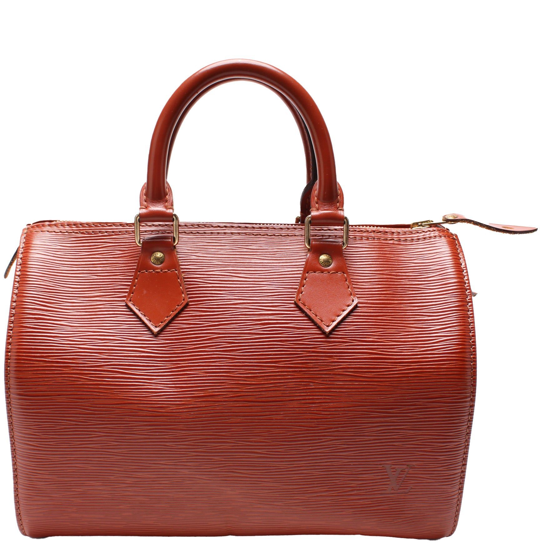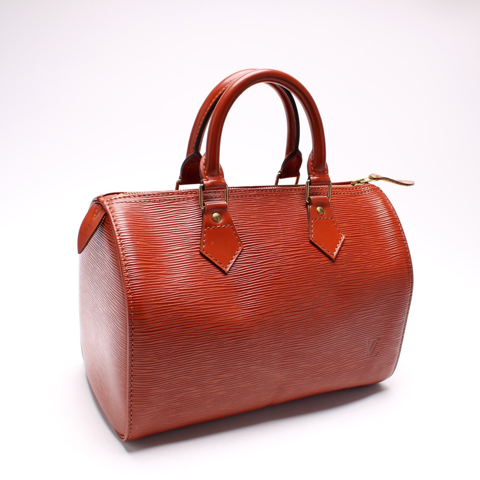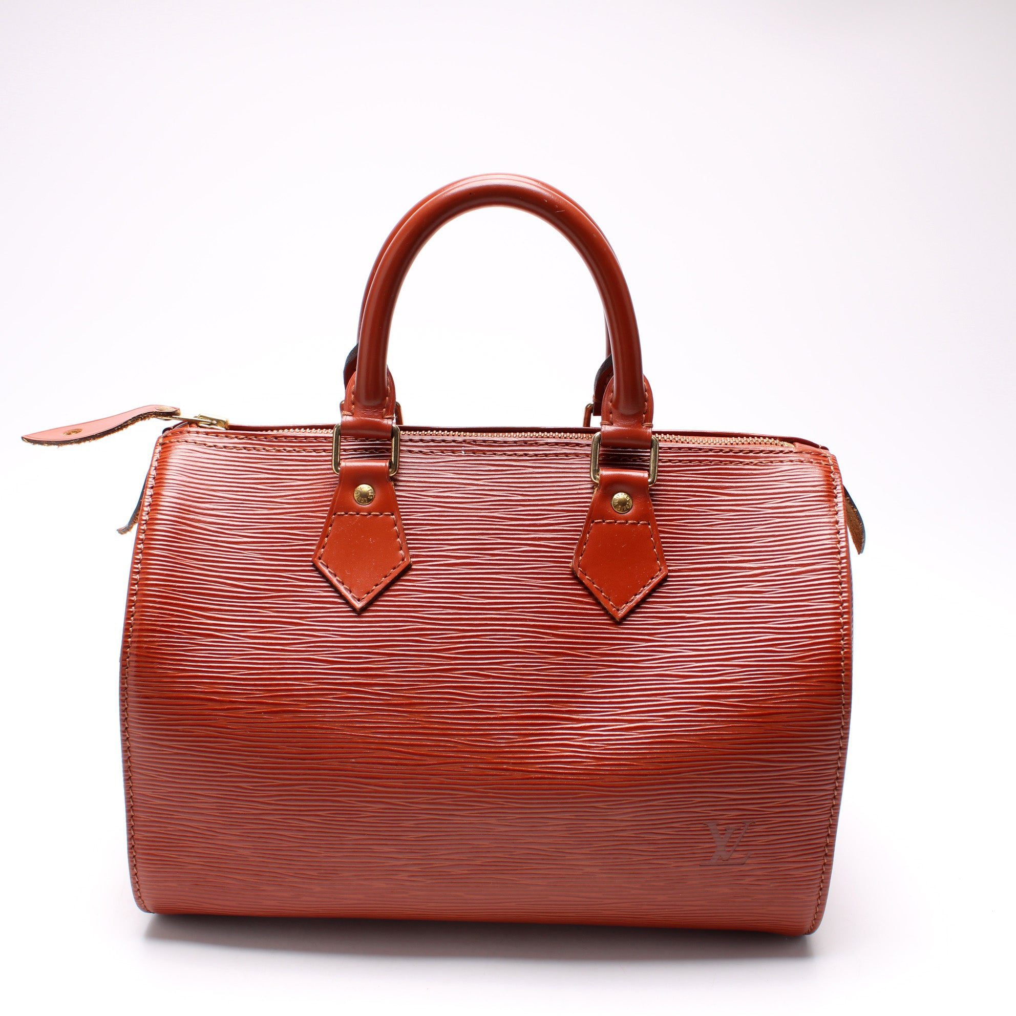 Louis Vuitton Speedy 25. The exterior is in the classic Louis Vuitton Epi Leather.