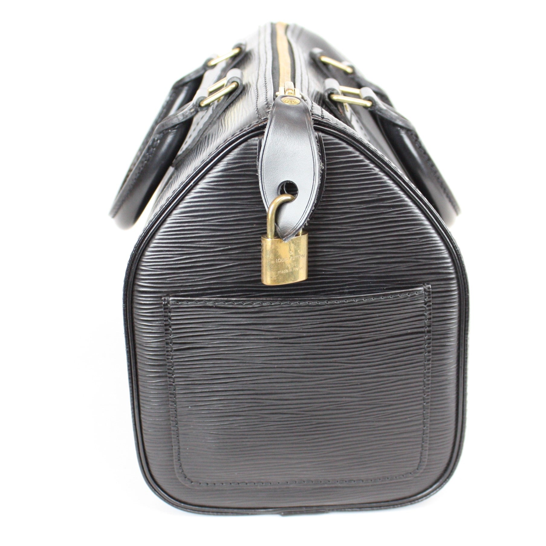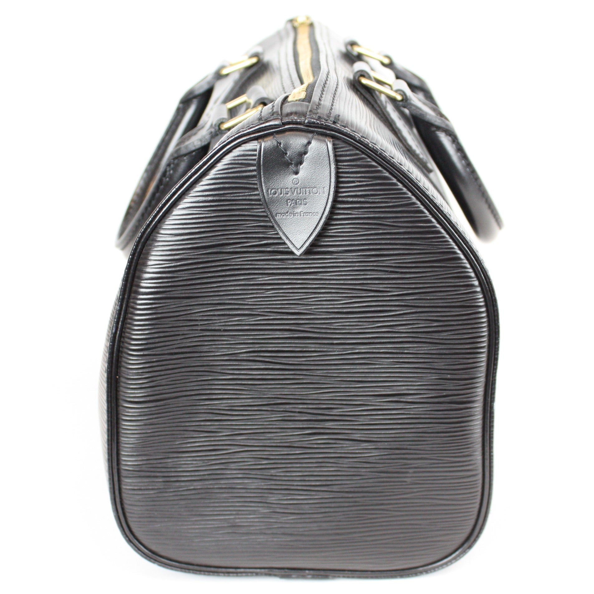 Louis Vuitton Speedy 25. The exterior is in the classic Louis Vuitton Epi Leather.Â