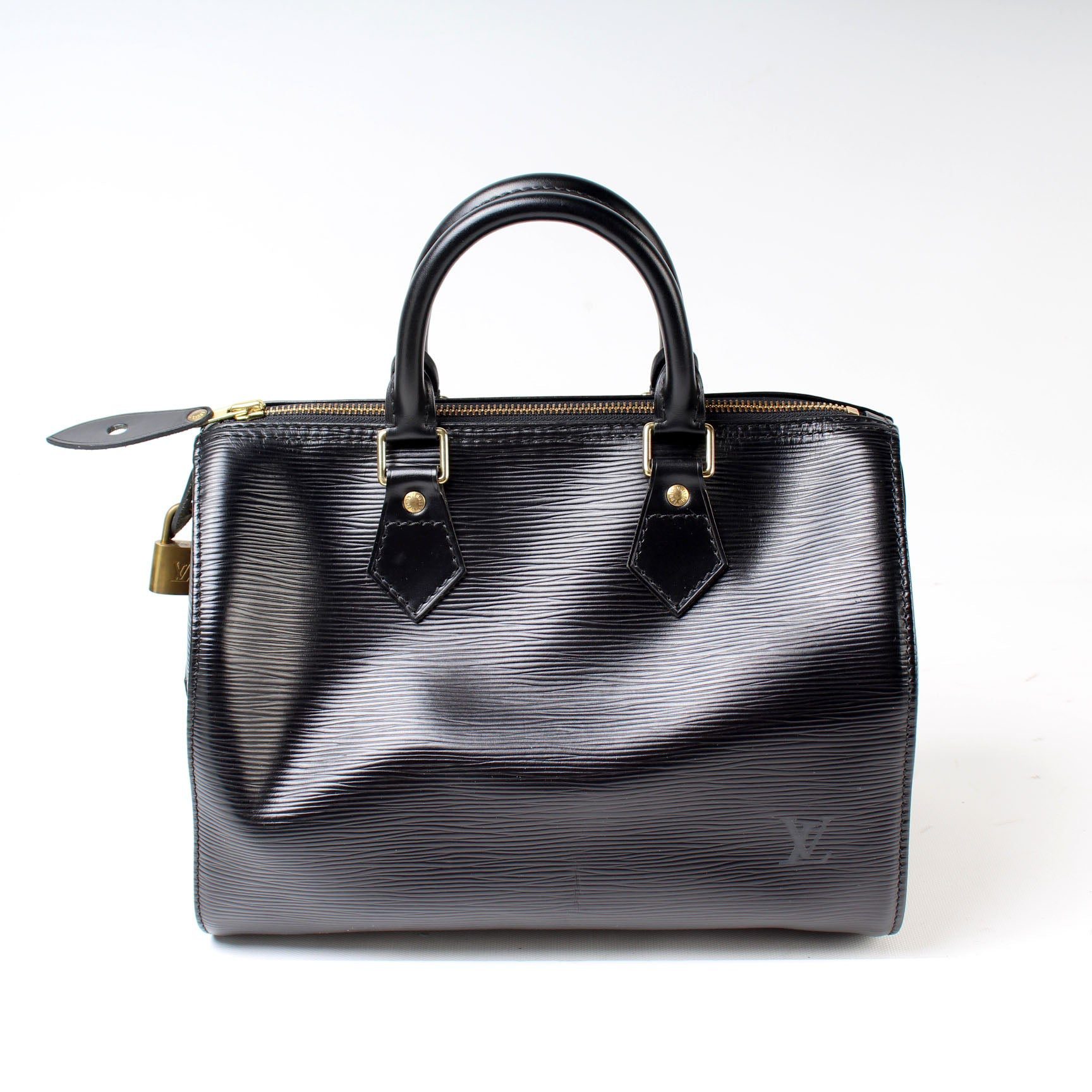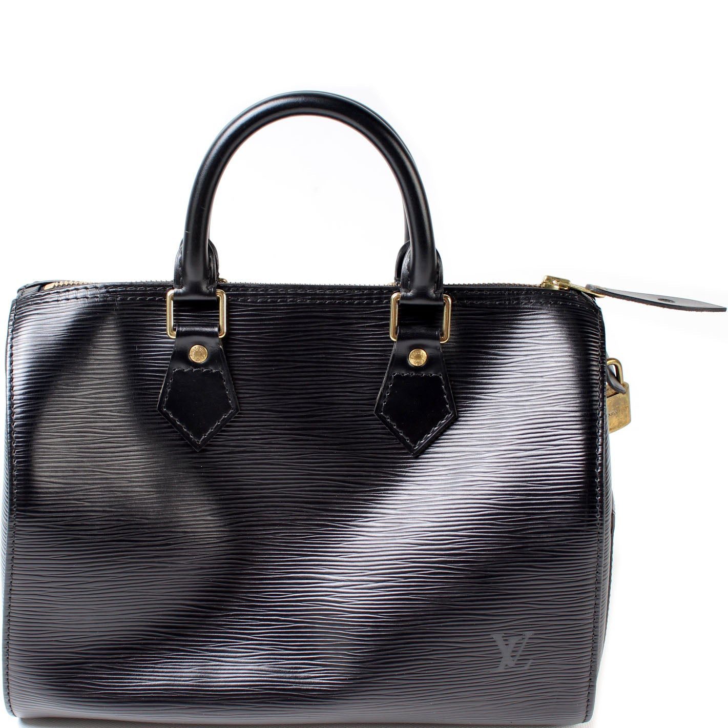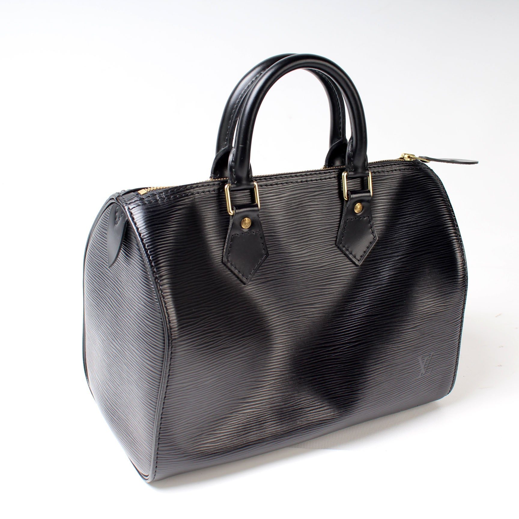 Louis Vuitton Speedy 25. The exterior is in the classic Louis Vuitton Epi Leather.Â