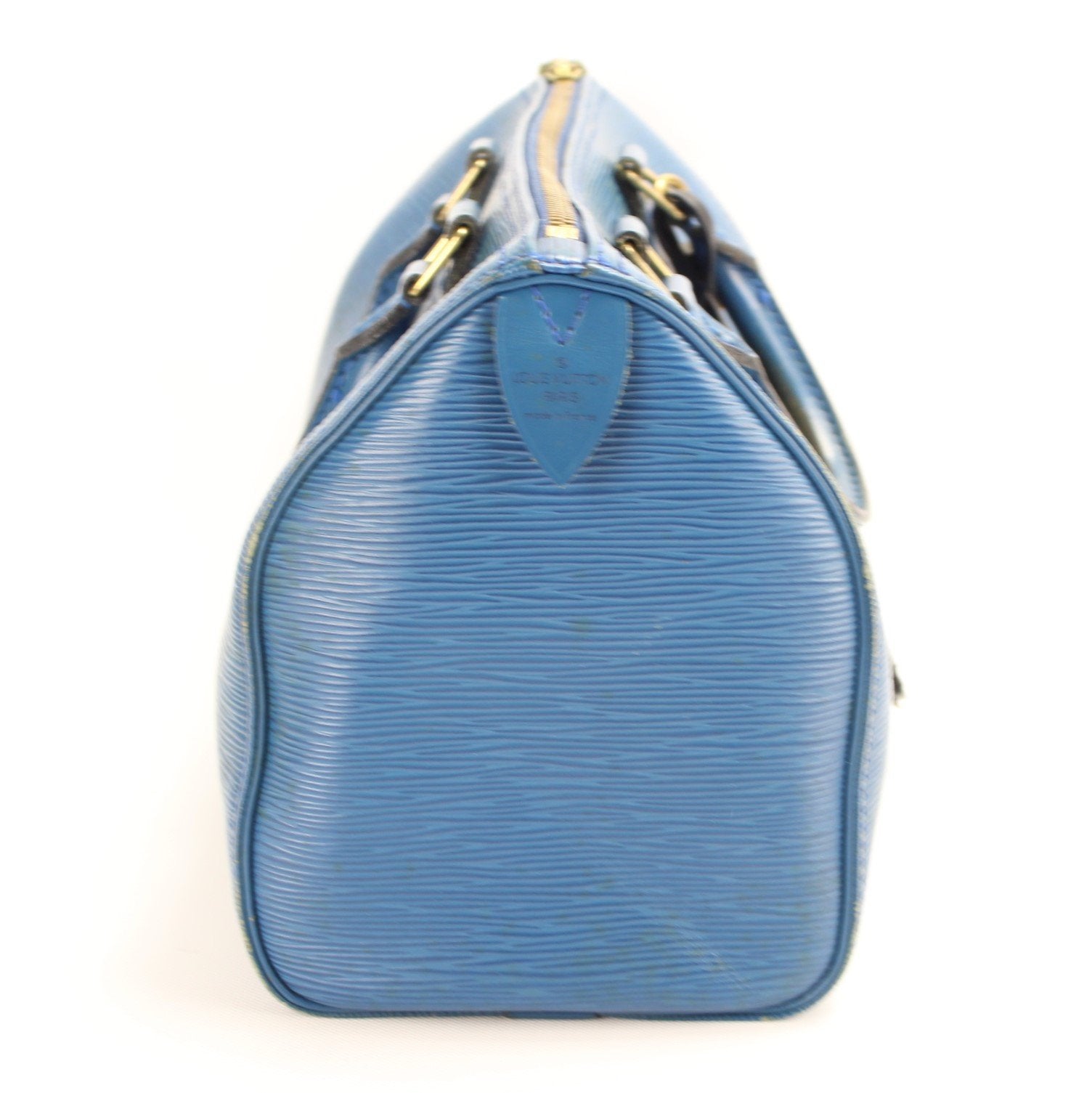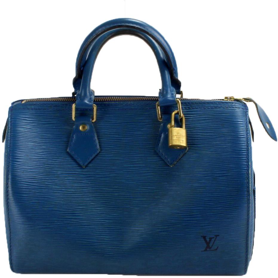 Louis Vuitton Speedy 25. The exterior is in the classic Louis Vuitton Epi Leather.Â