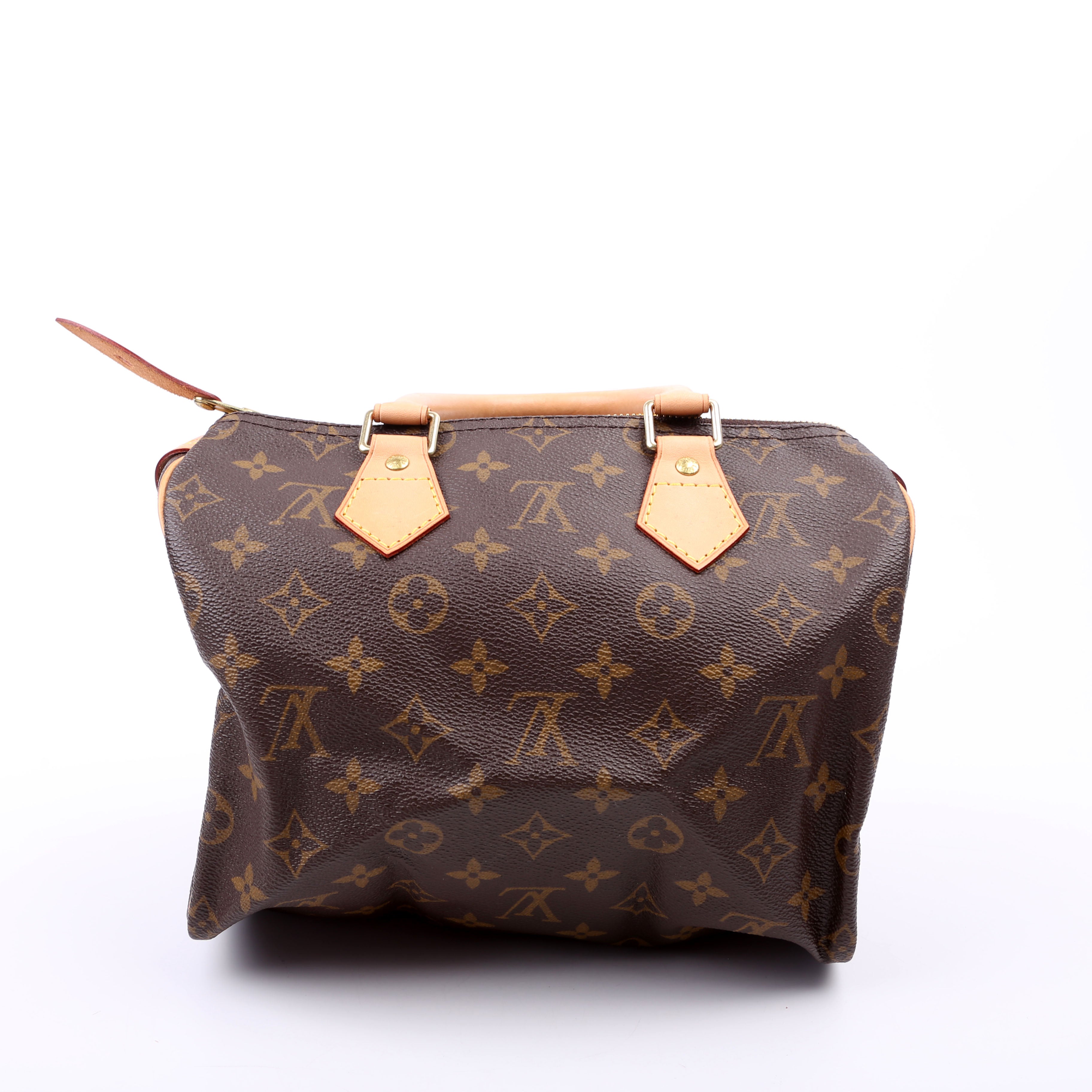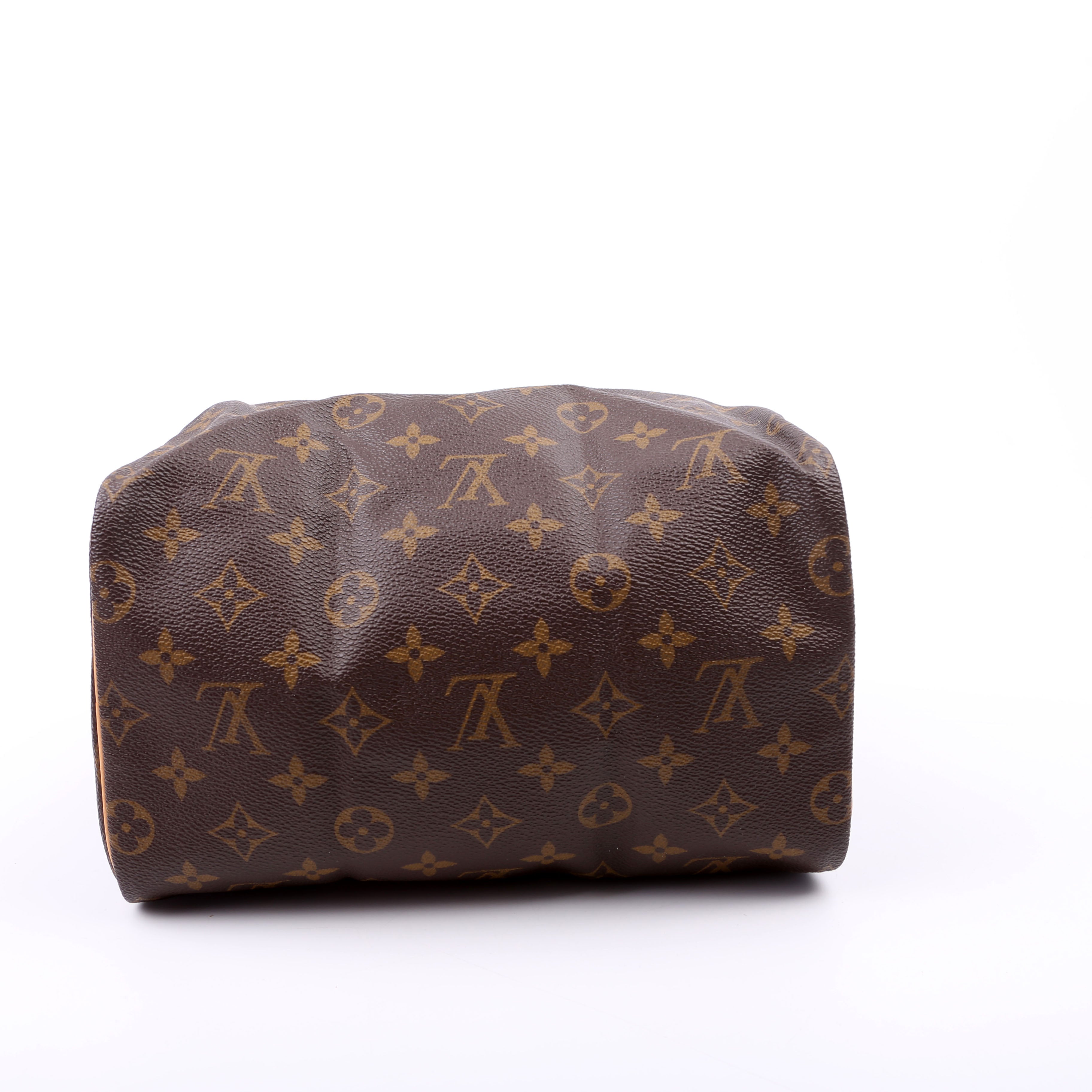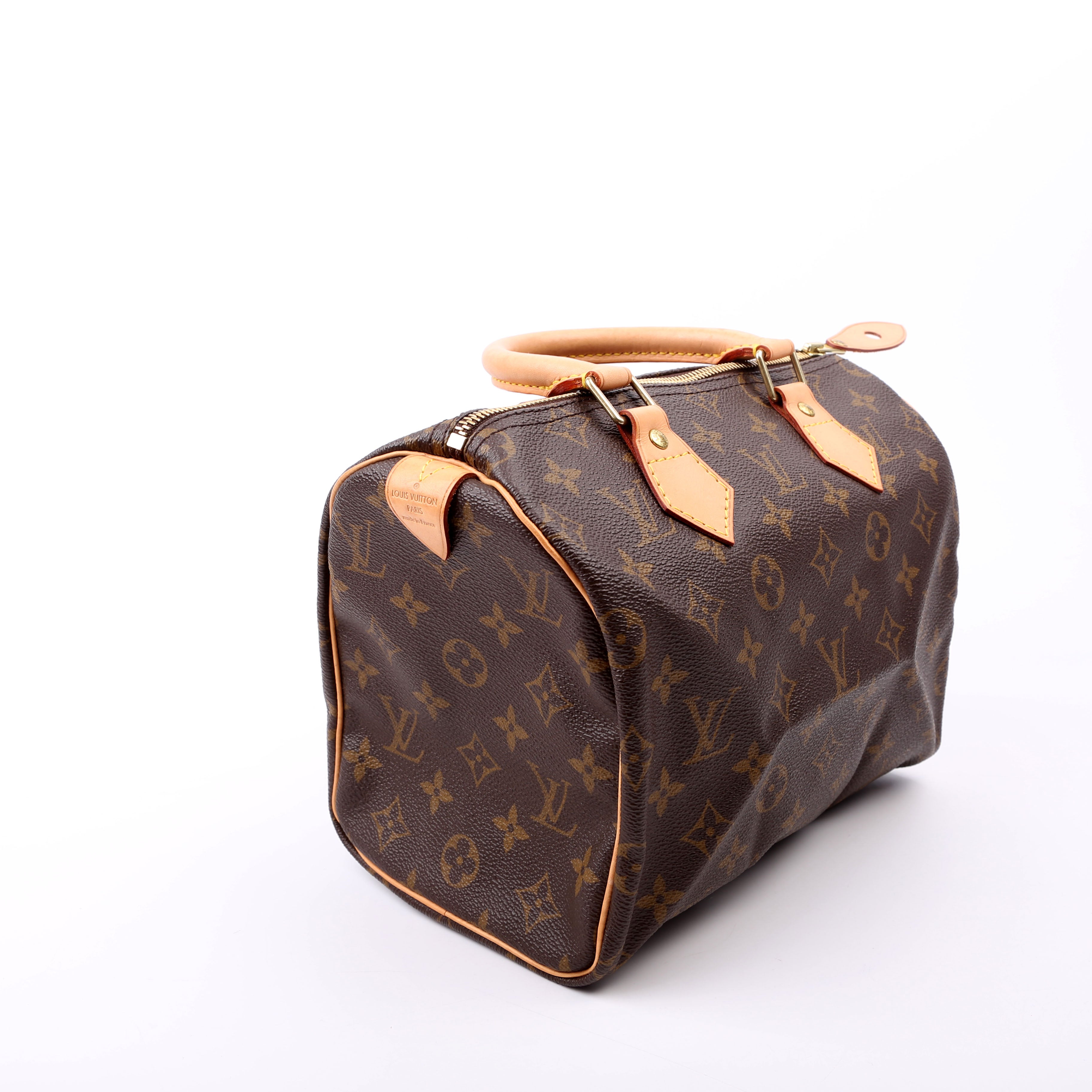 Louis Vuitton Speedy 25 . The exterior is in the classic Louis Vuitton Monogram coated canvas.Â