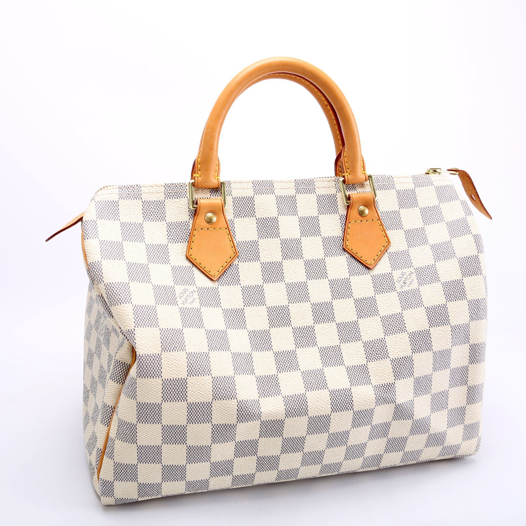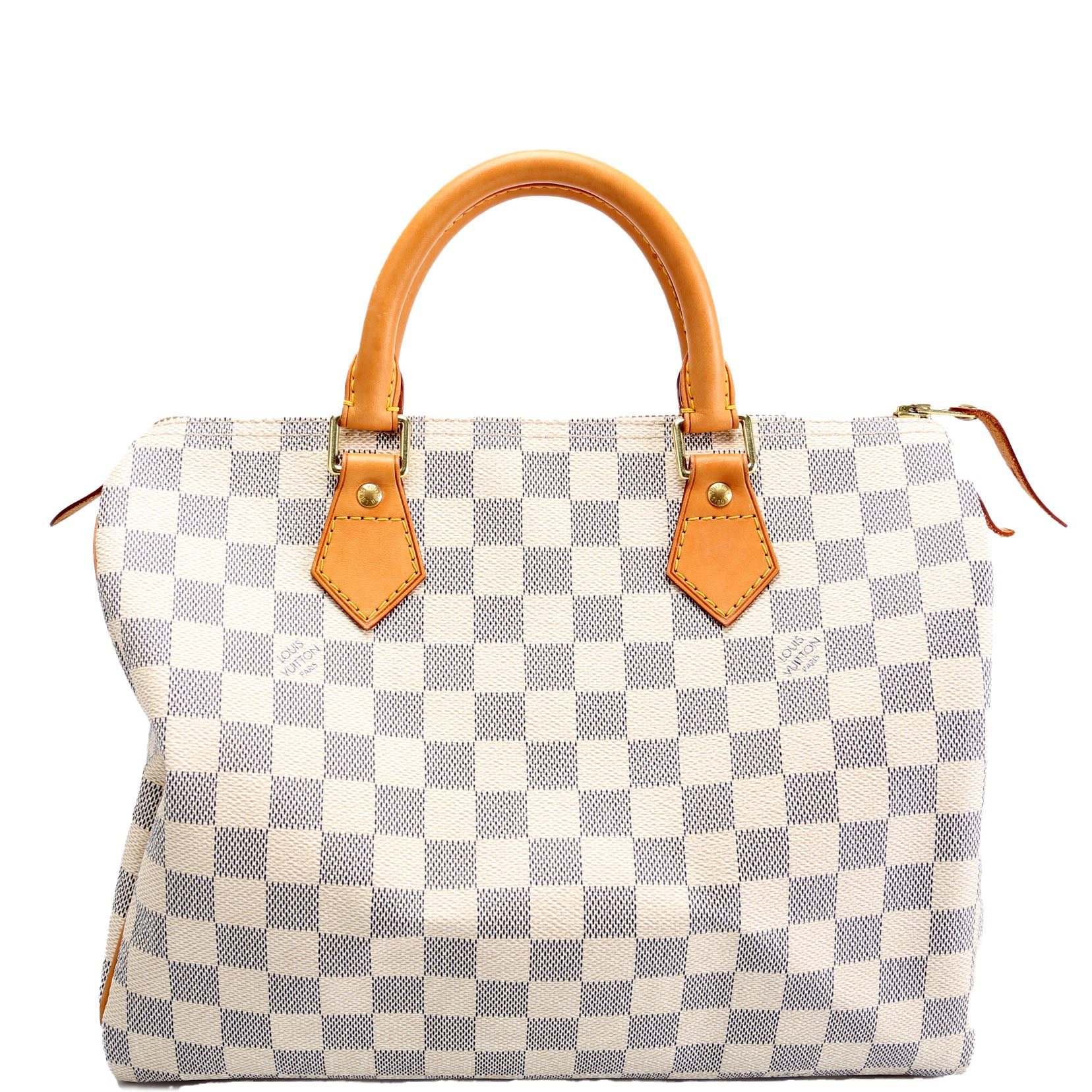 Louis Vuitton Speedy 30 . The exterior is in the classic Louis Vuitton Monogram coated canvas.Â
