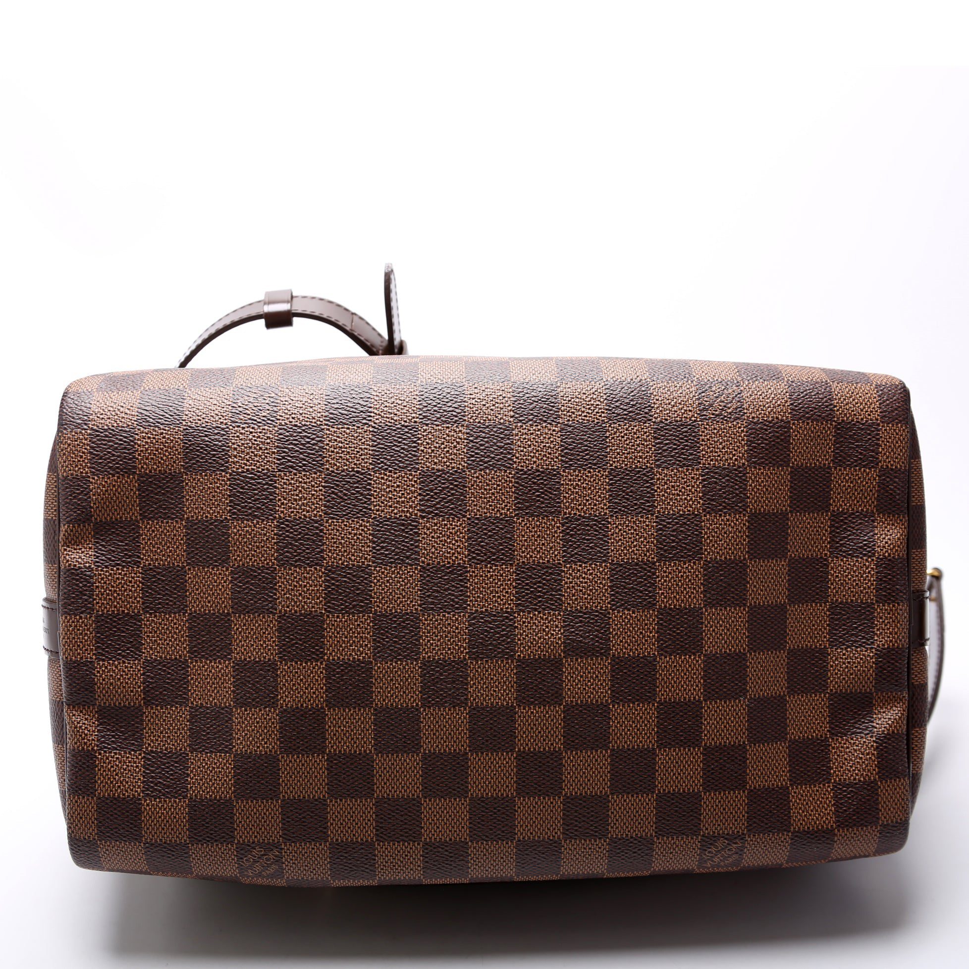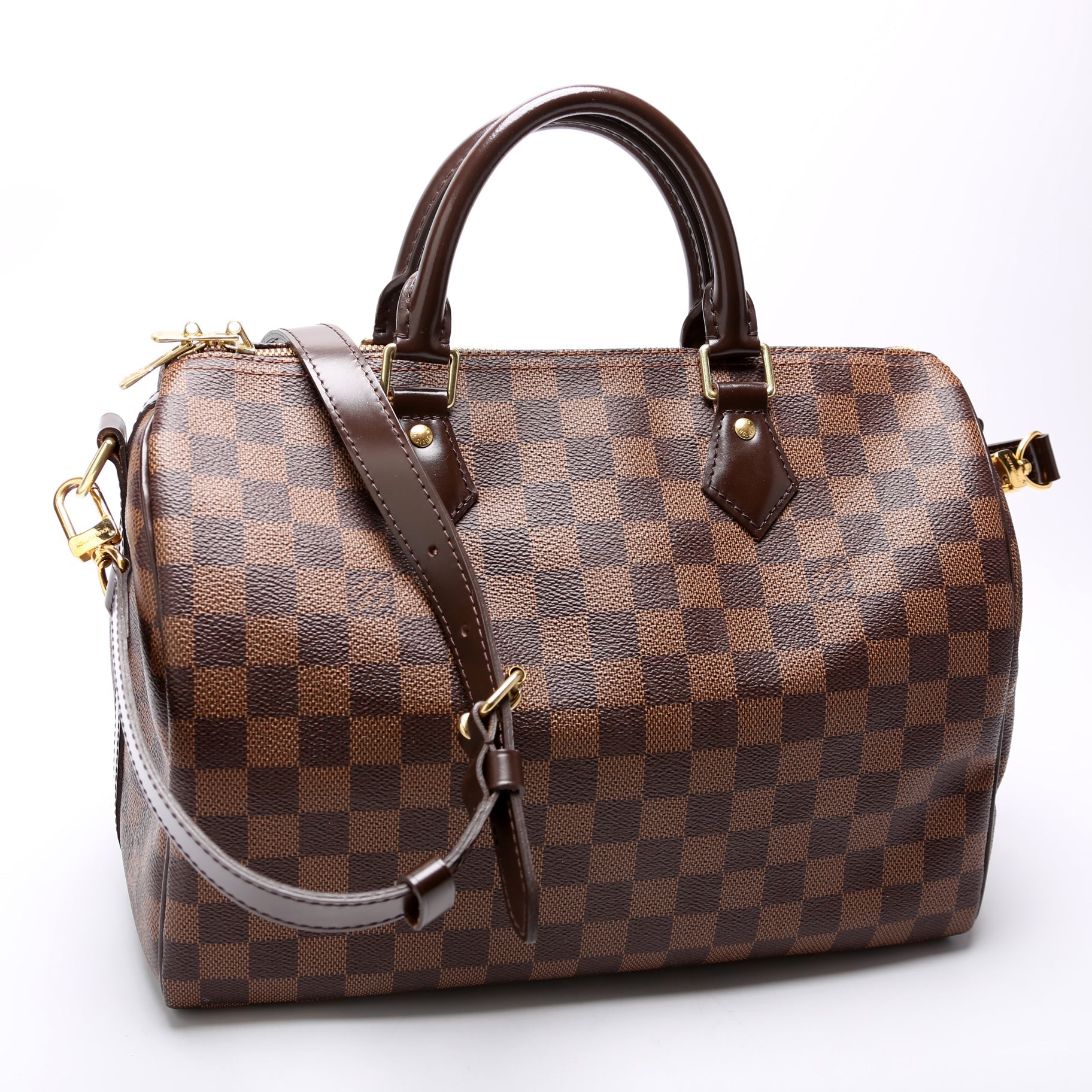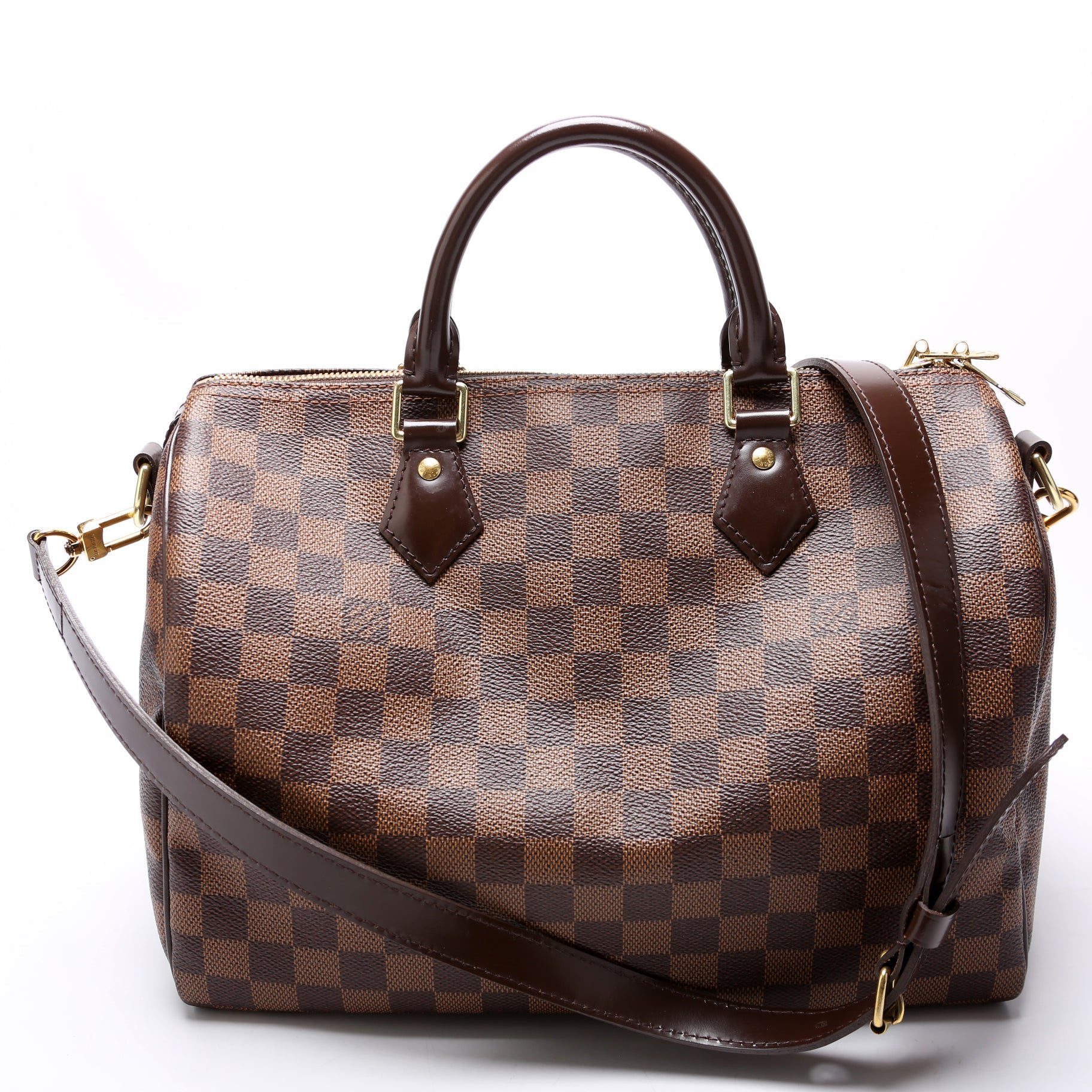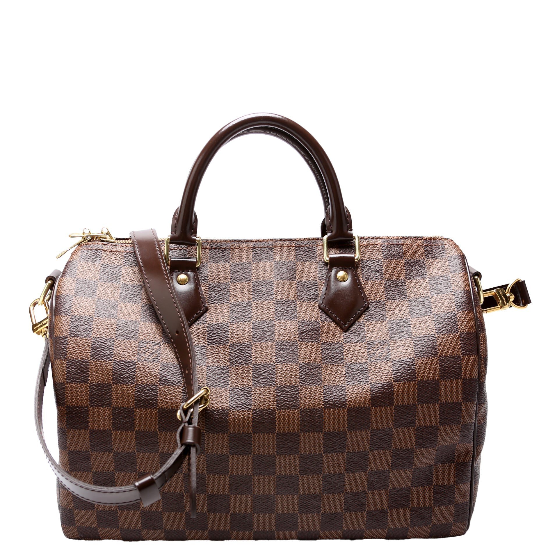 Louis Vuitton Speedy 30 Bandouliere. The exterior is in the classic Louis Vuitton Damier Ebene coated canvas. Â