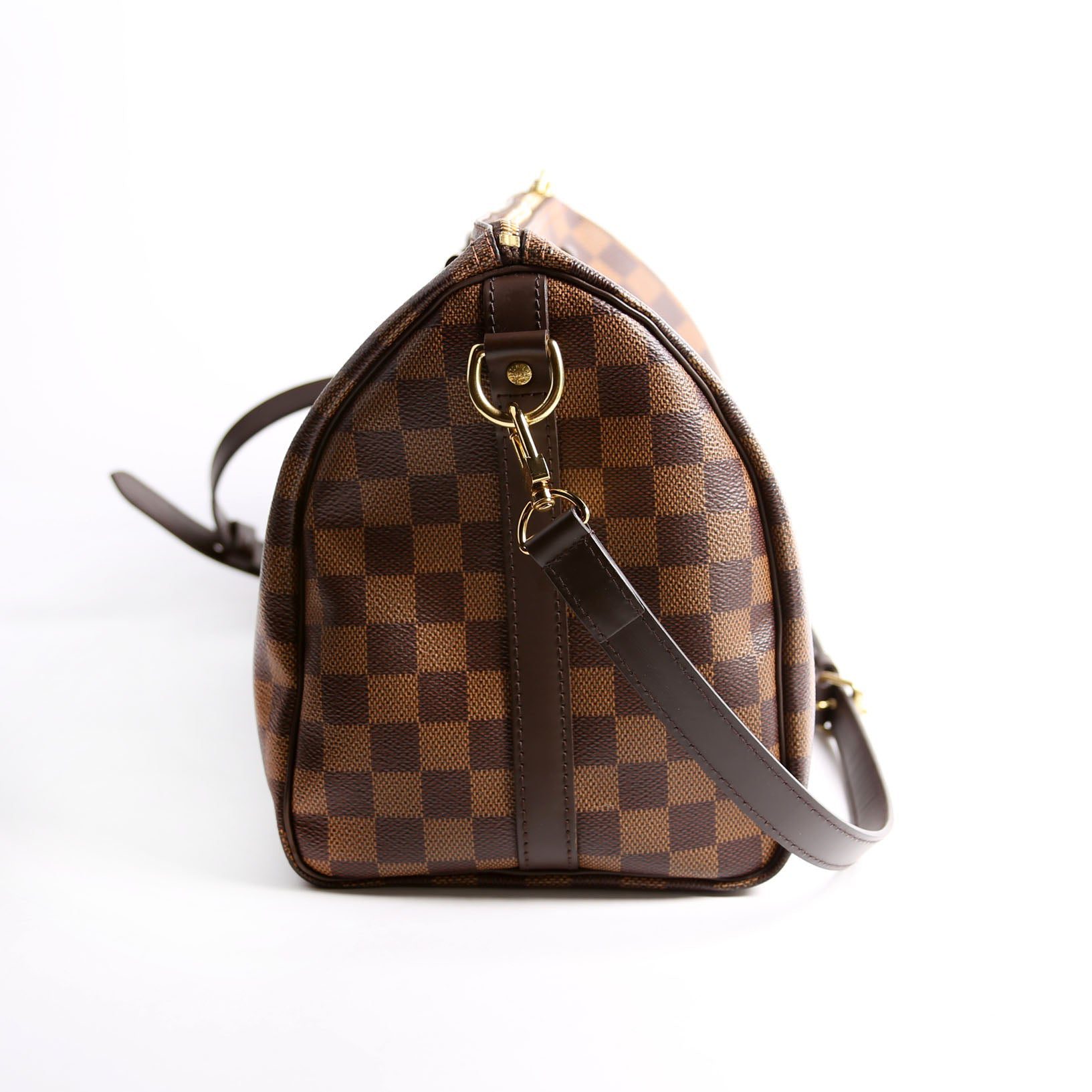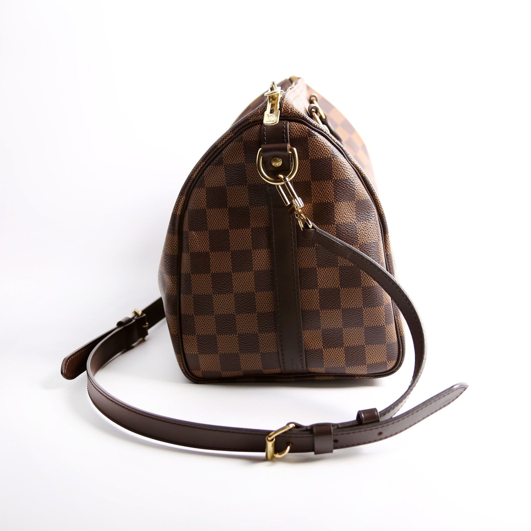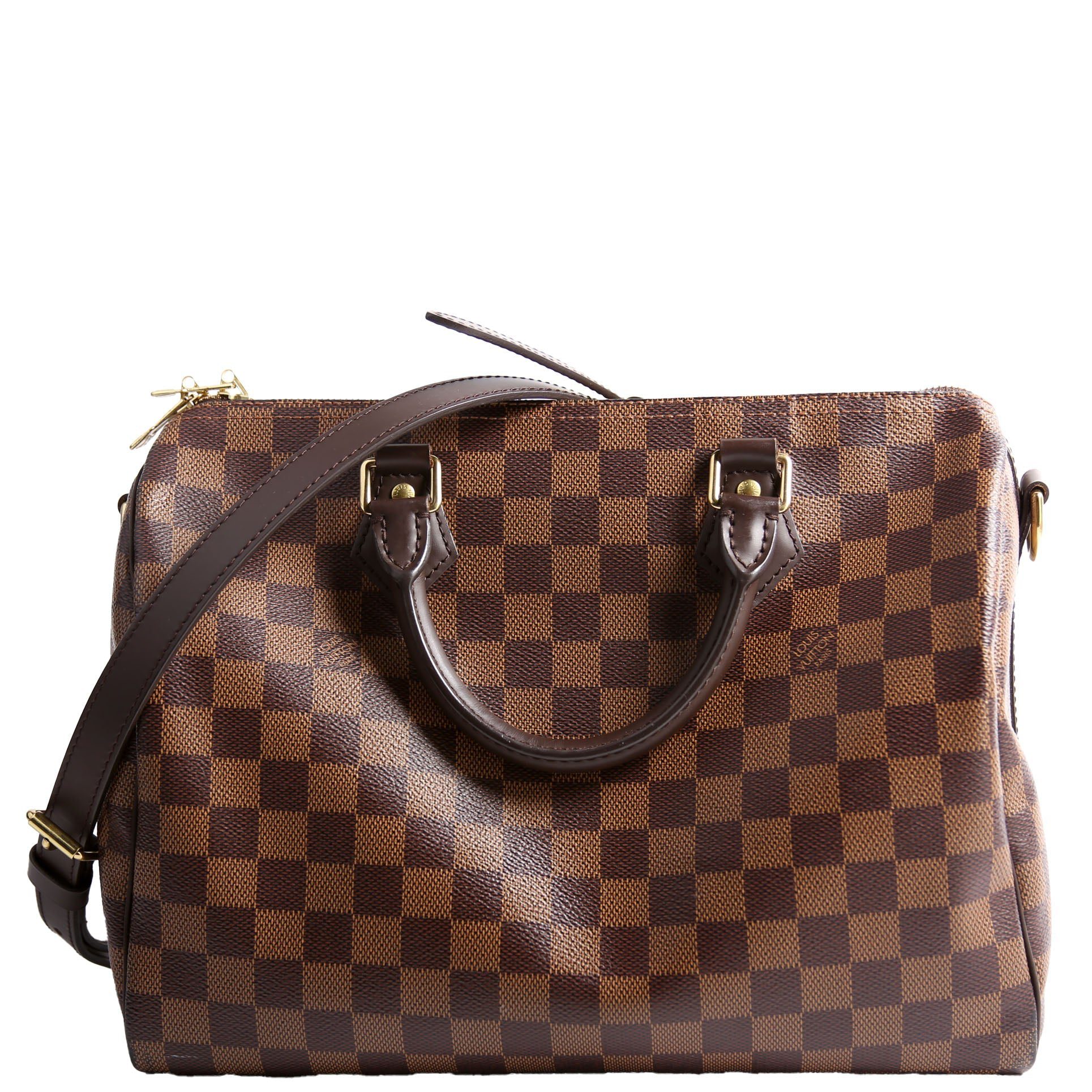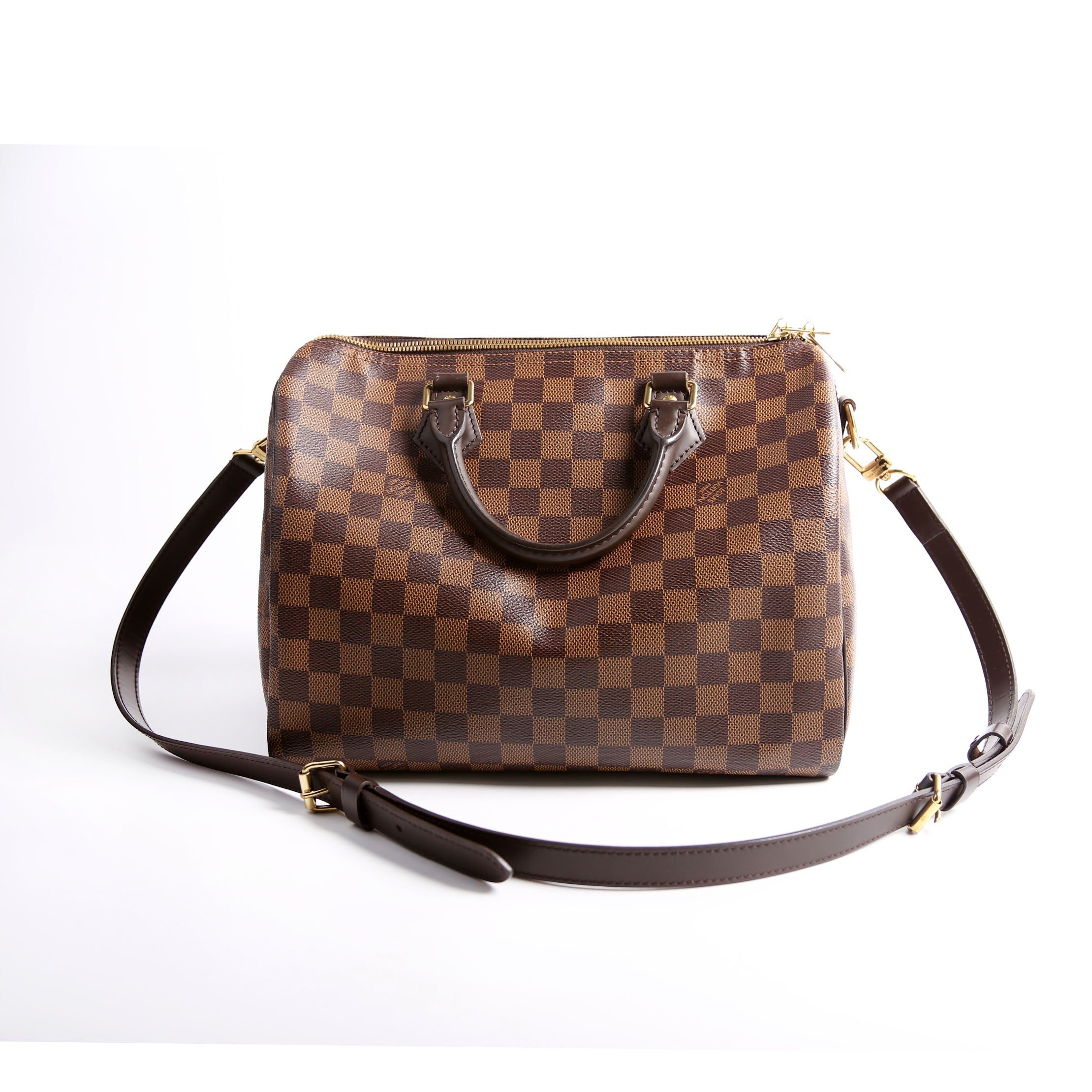 Louis Vuitton Speedy 30 Bandouliere . The exterior is in the classic Damier Ebene coated canvas. Â