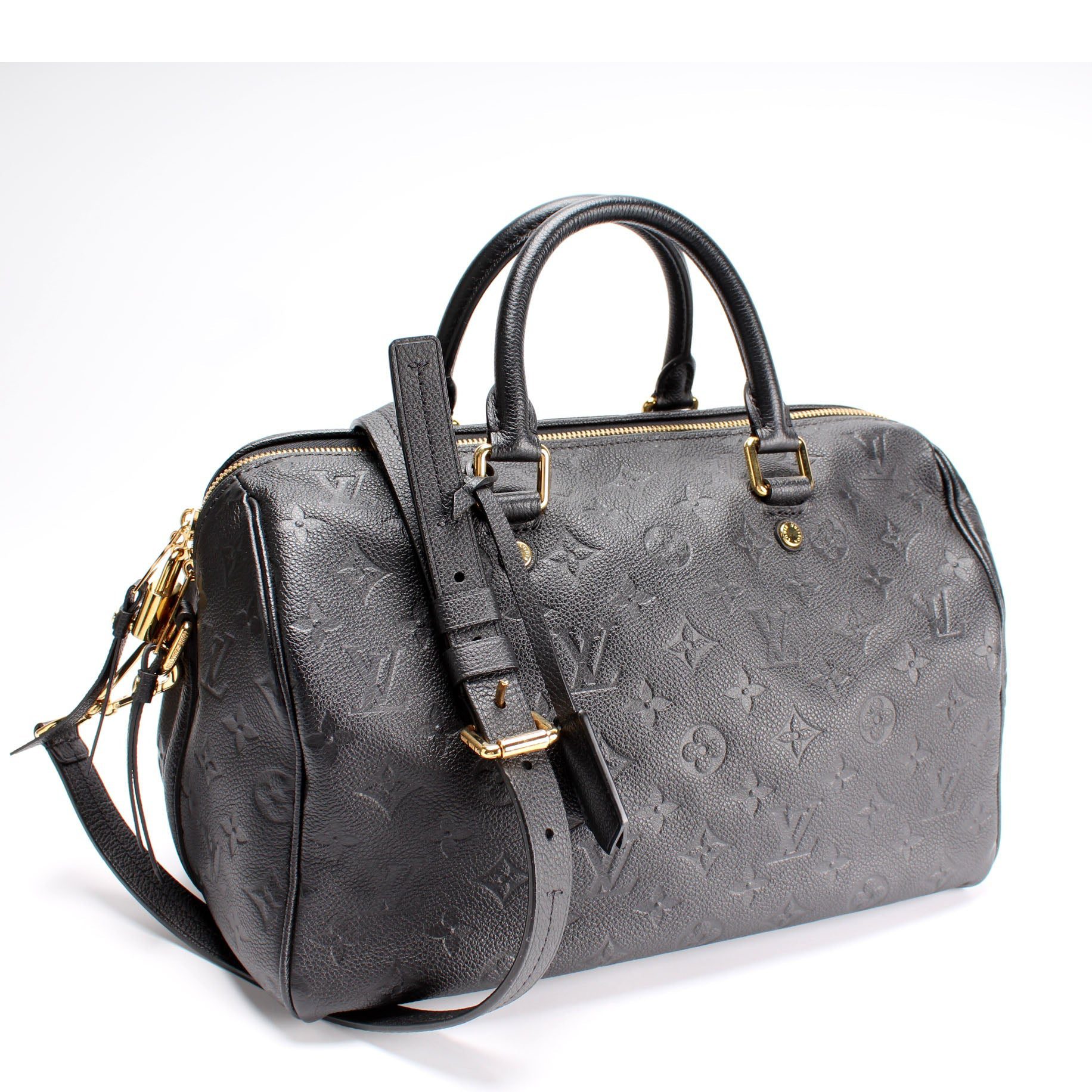 Louis Vuitton Speedy 30 Bandouliere. The exterior is in the classic Louis Vuitton Empreinte leather.Â