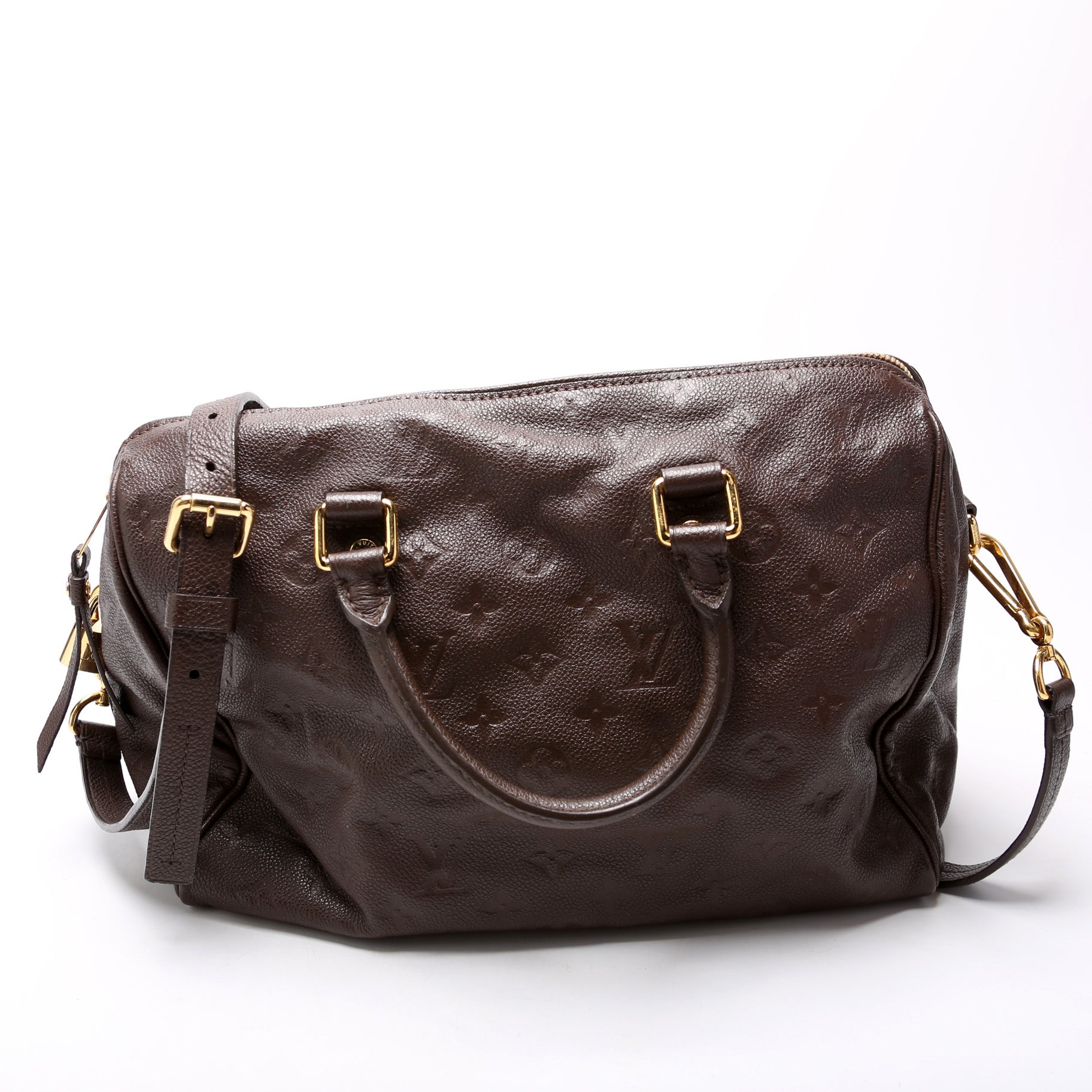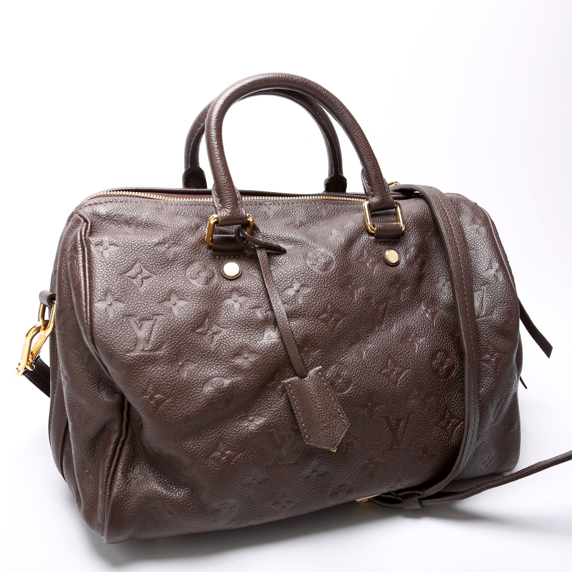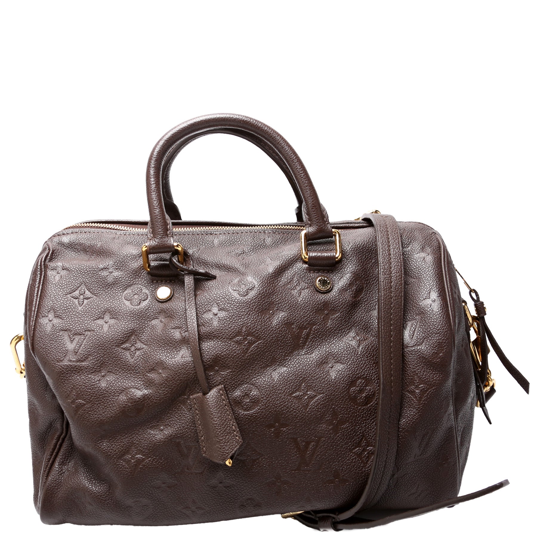 Louis Vuitton Speedy 30 Bandouliere. The exterior is in the classic Louis Vuitton Empreinte leather.Â