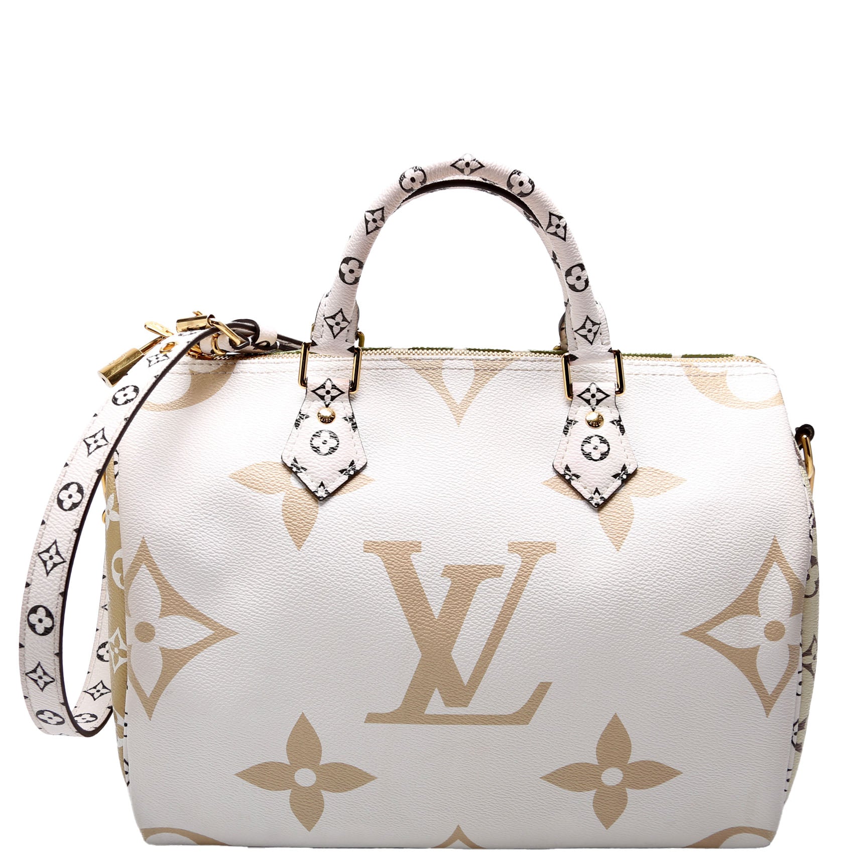 Louis Vuitton Speedy 30 Bandouliere. The exterior is in the classic Giant Reverse Monogram coated canvas. Â