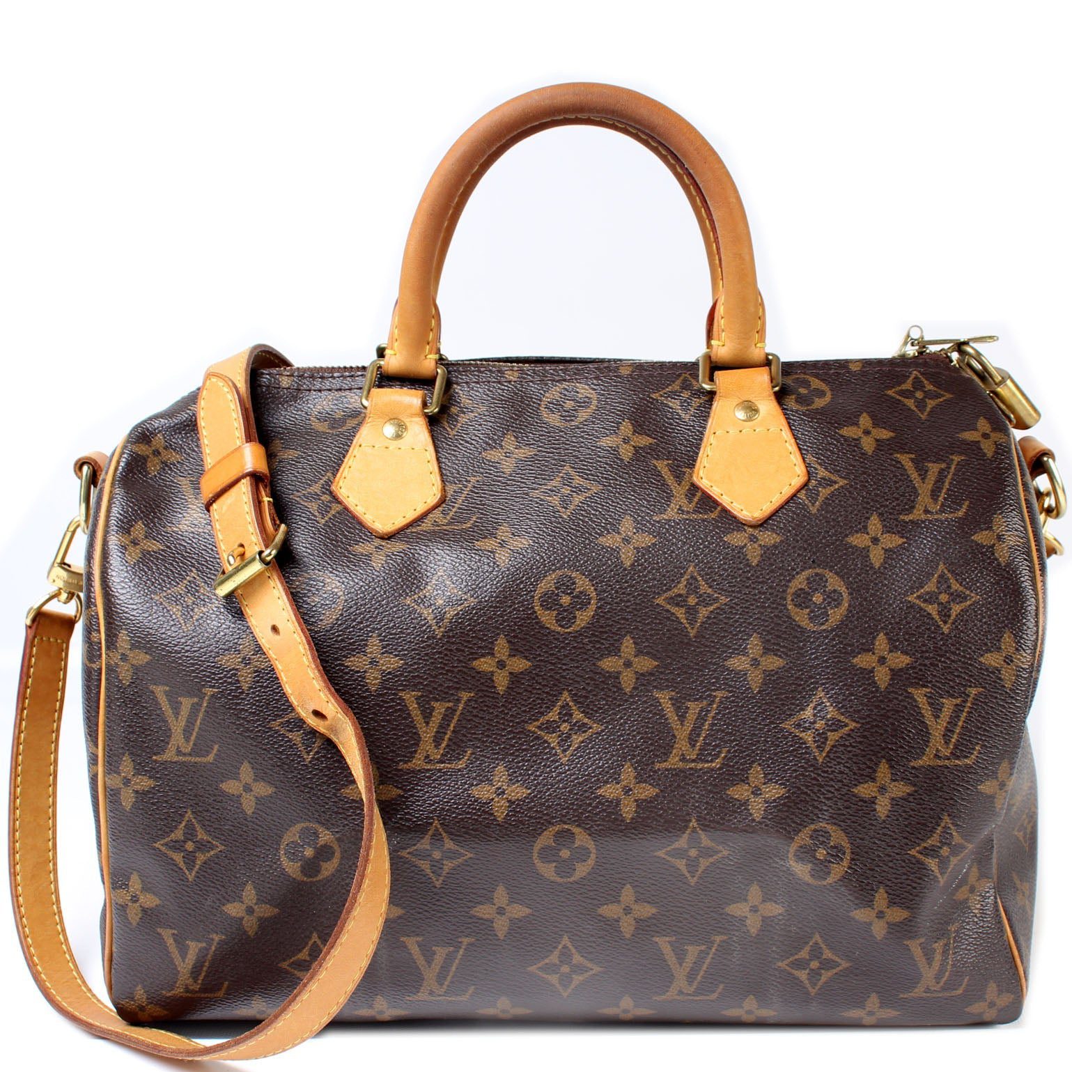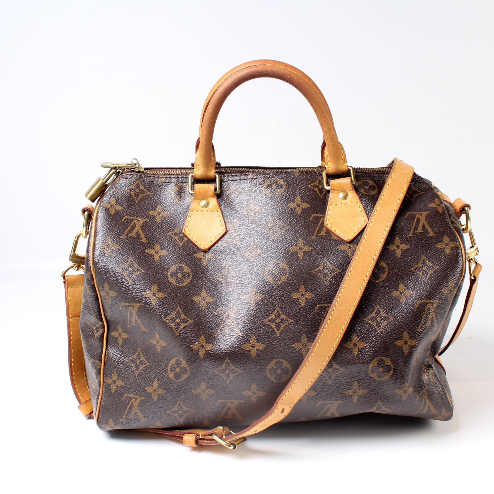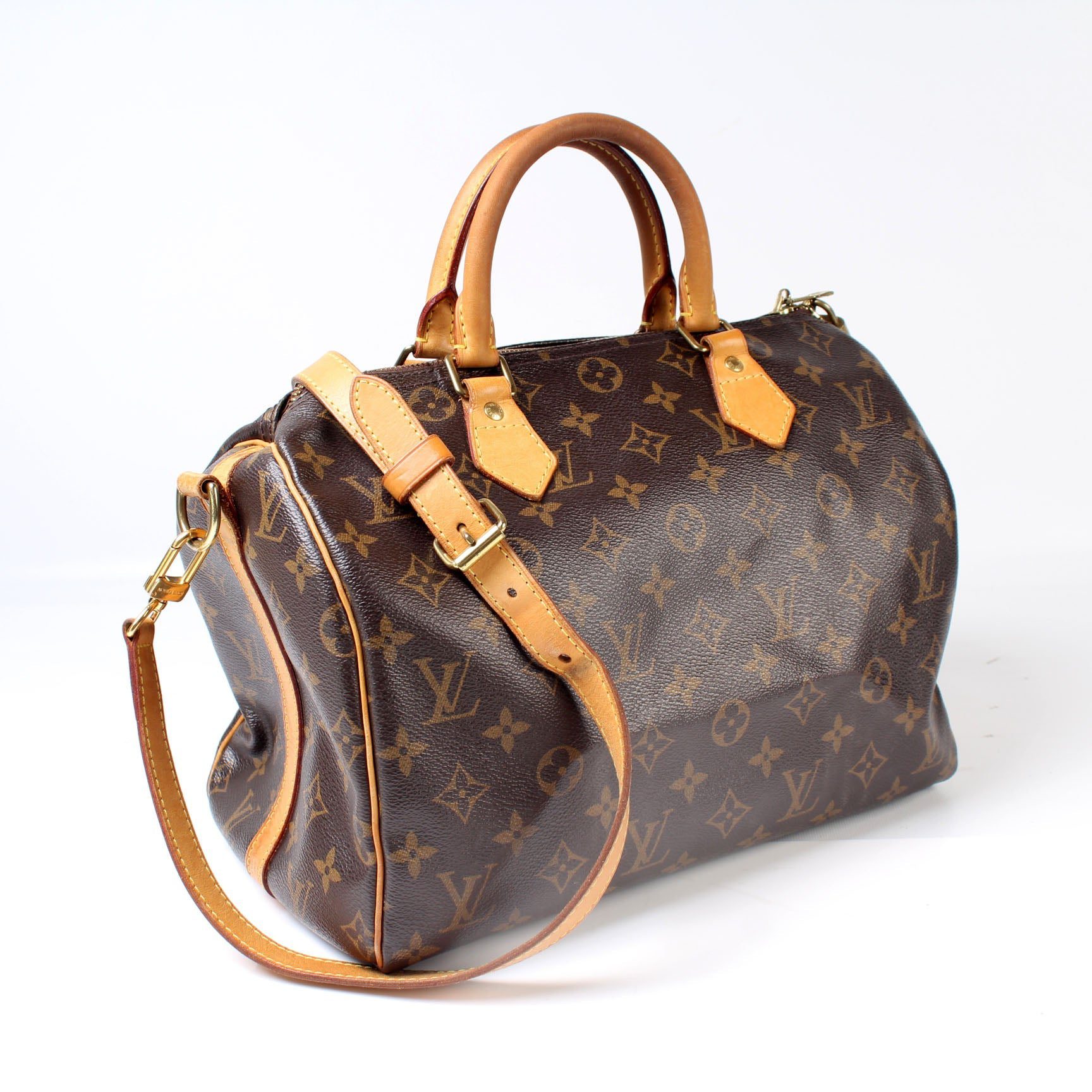Louis Vuitton Speedy 30. The exterior is in the classic Monogram coated canvas. Â